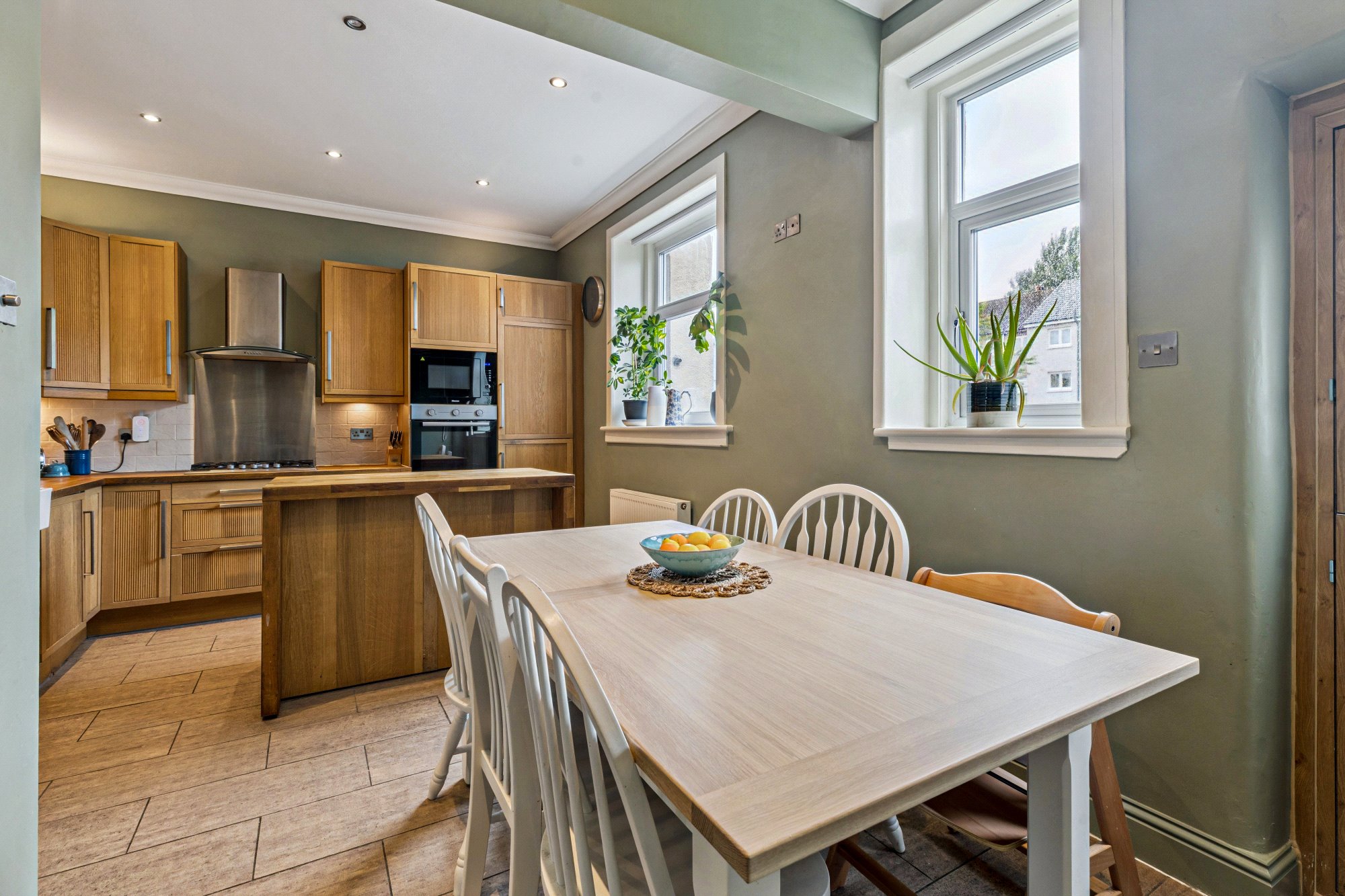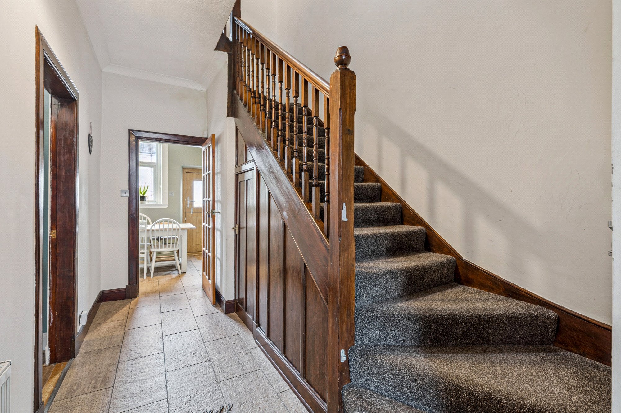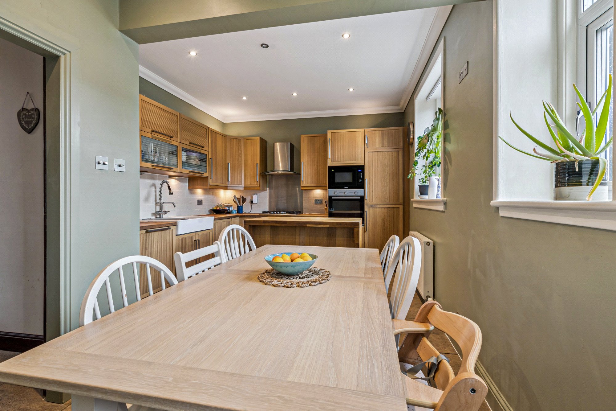 The house is approached via pathway flanked by front garden leading to the front double doors and entrance vestibule. The accommodation of the house itself comprises welcoming reception hallway with two cupboards off, bay windowed lounge with feature fireplace, dining sized kitchen with a range of integrated appliances, base and wall mounted units, ample space for dining table and chairs and access out to the rear garden.
