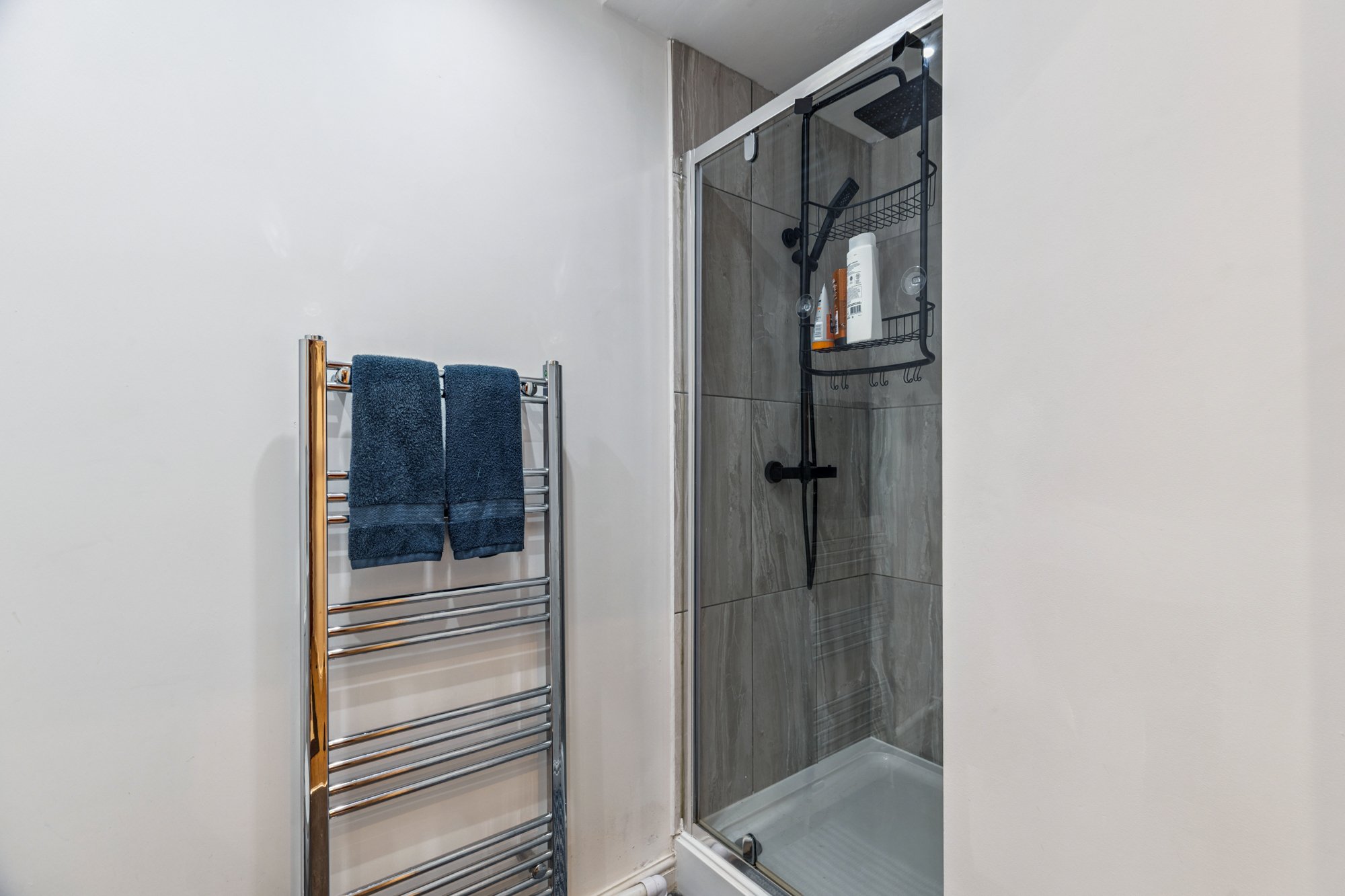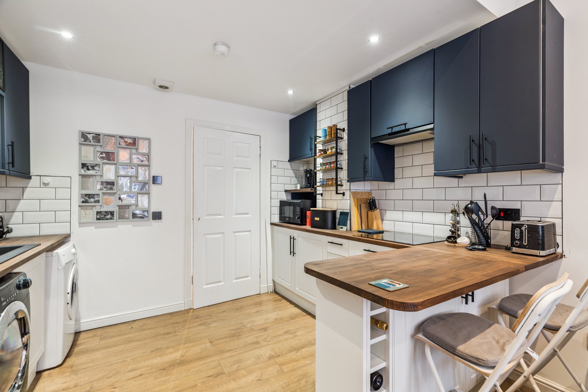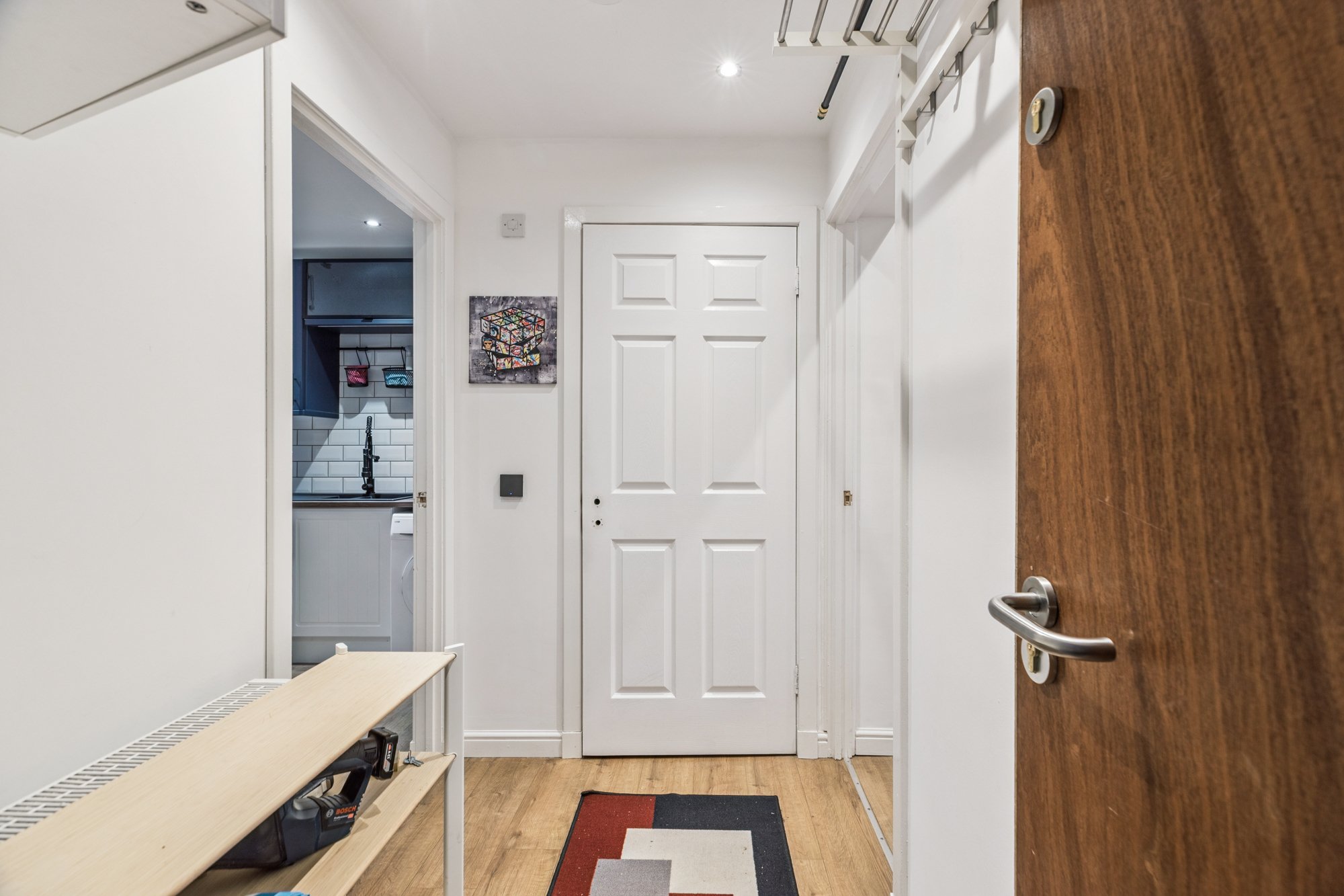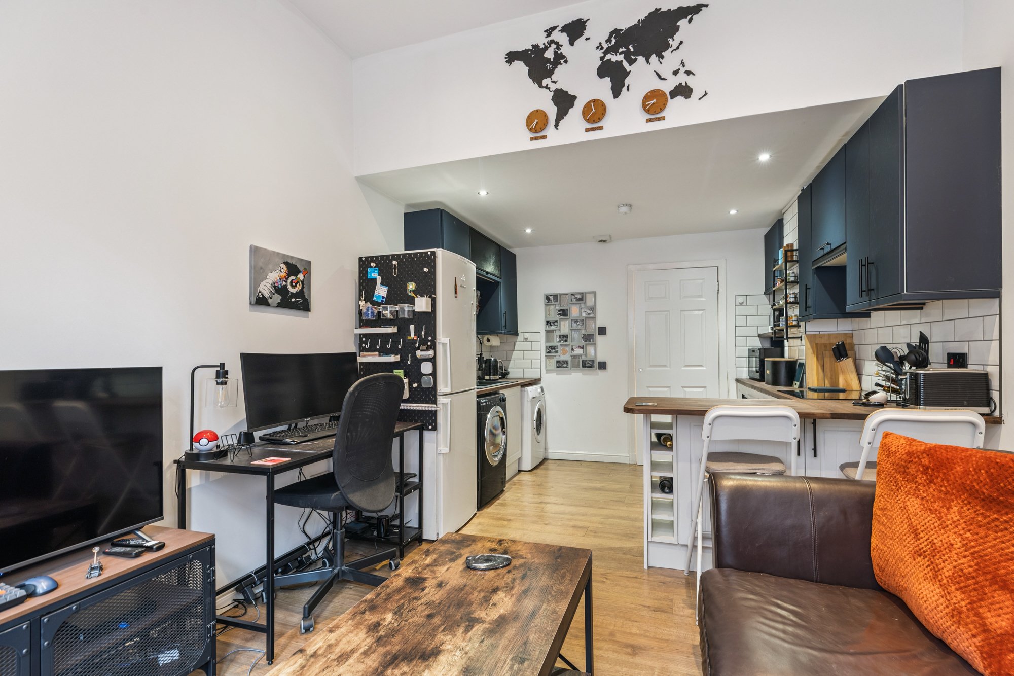 The accommodation of the flat itself comprises welcoming reception hallway, open plan kitchen lounge space with a range of base and wall mounted units, tiled splashback and breakfast bar, double sized bedroom with integrated wardrobe and separate walk-in wardrobes off and shower room with white two piece suite, vanity unit and separate shower enclosure.