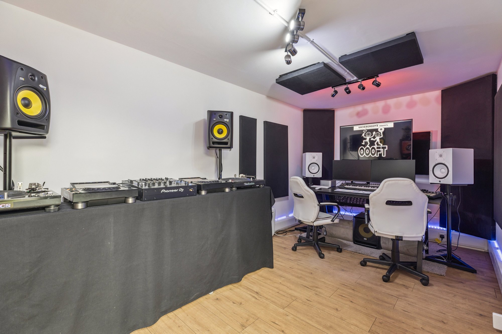 The property also benefits from double glazing, gas central heating, high quality floor coverings and a modern, contemporary decor throughout. Externally there is the aforementioned driveway and front garden, along with a landscaped rear garden with separate lawn and patio. Additionally there is also a sound proofed studio which can be utilised as such or as a home office space.