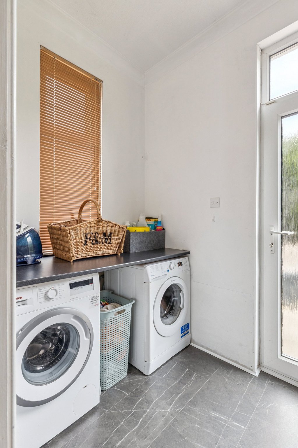The accommodation of the house itself comprises welcoming reception hallway with two cupboards off, spacious sitting room with dual aspects, feature wall and double door access out to the rear garden, kitchen with a range of integrated appliances, base and wall mounted units, tiled splashback and granite worktop, dining room, utility room with access out to the garden and bay windowed lounge with feature fireplace. There are two bedrooms, both of which can be utilised very flexibly as a home office or dressing room and gorgeous tiled shower room with two piece suite, heated towel rail and separate walk-in shower enclosure.