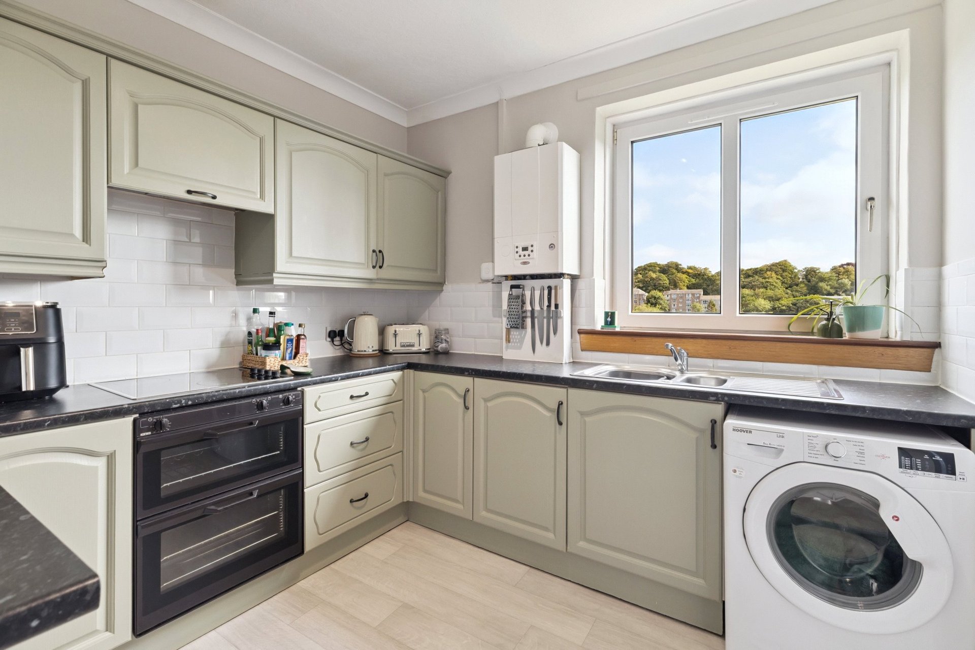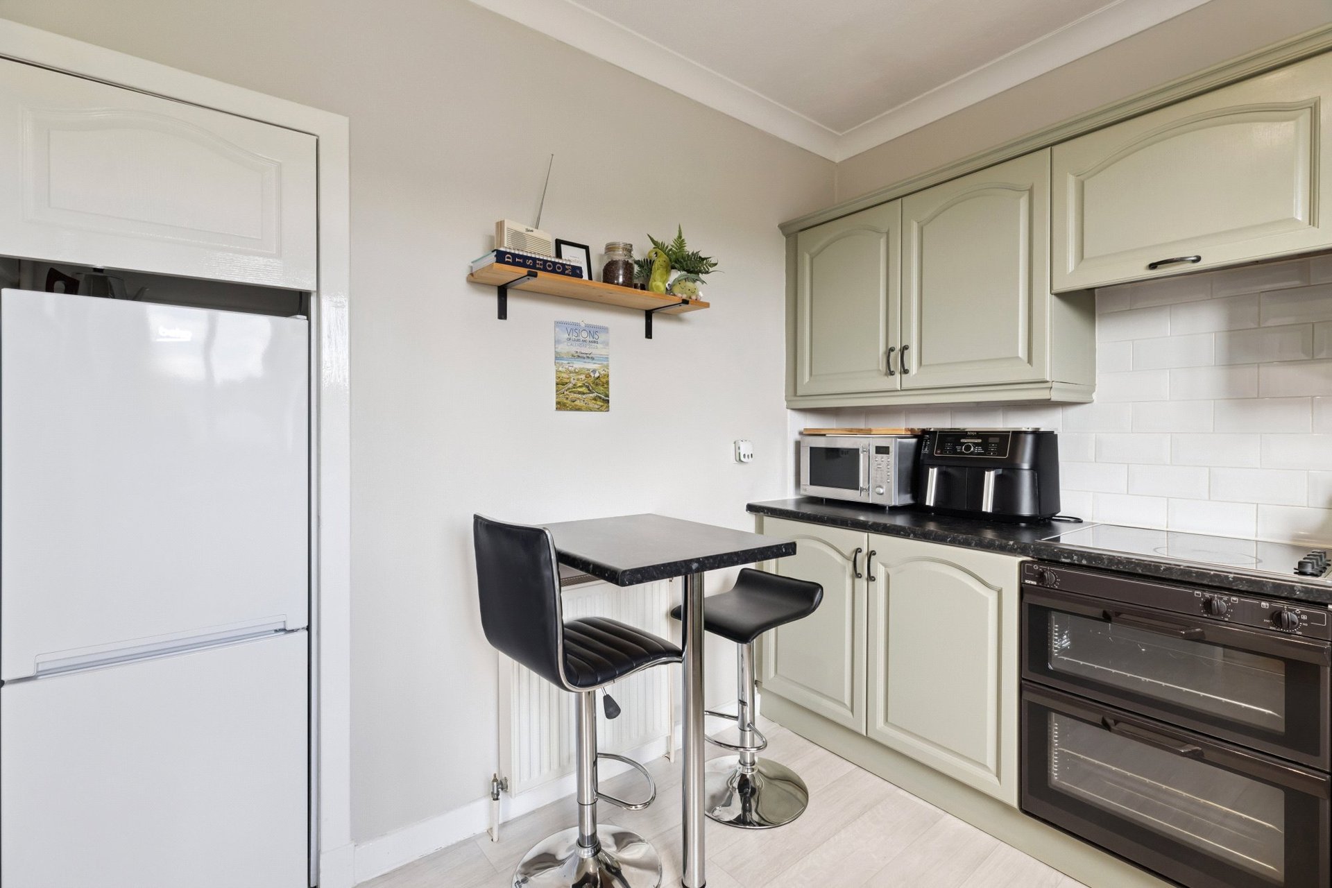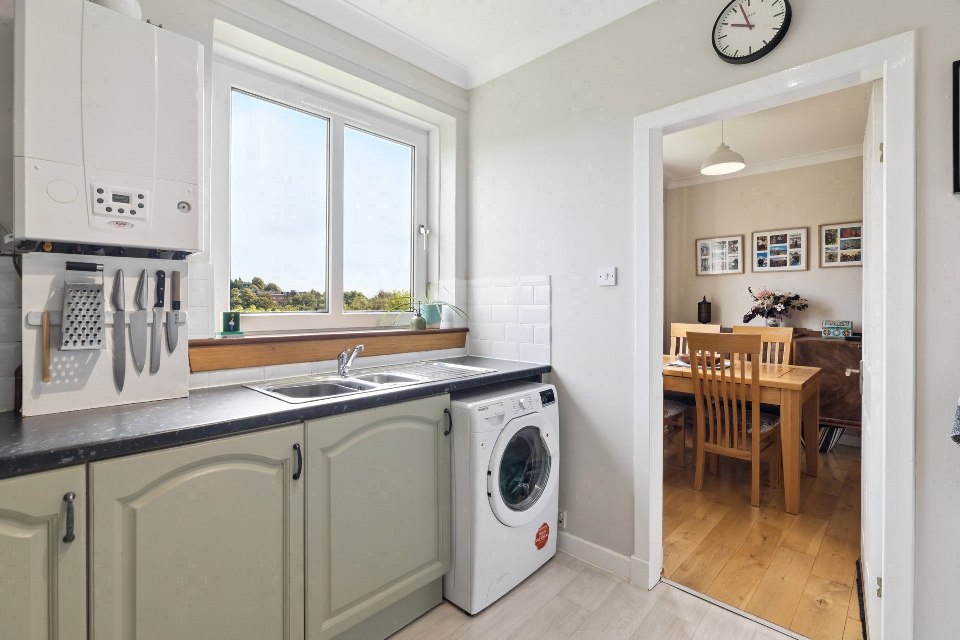The accommodation of the flat itself comprises spacious entrances vestibule with two cupboards off, generous lounge, open plan onto the dining room which enjoys a fantastic open aspect to the rear, kitchen with a range of base and wall mounted units, tiled splashback and open aspect, two double sized bedrooms, both of which could be utilised very flexibly and a tiled bathroom with three piece suite and over bath shower.