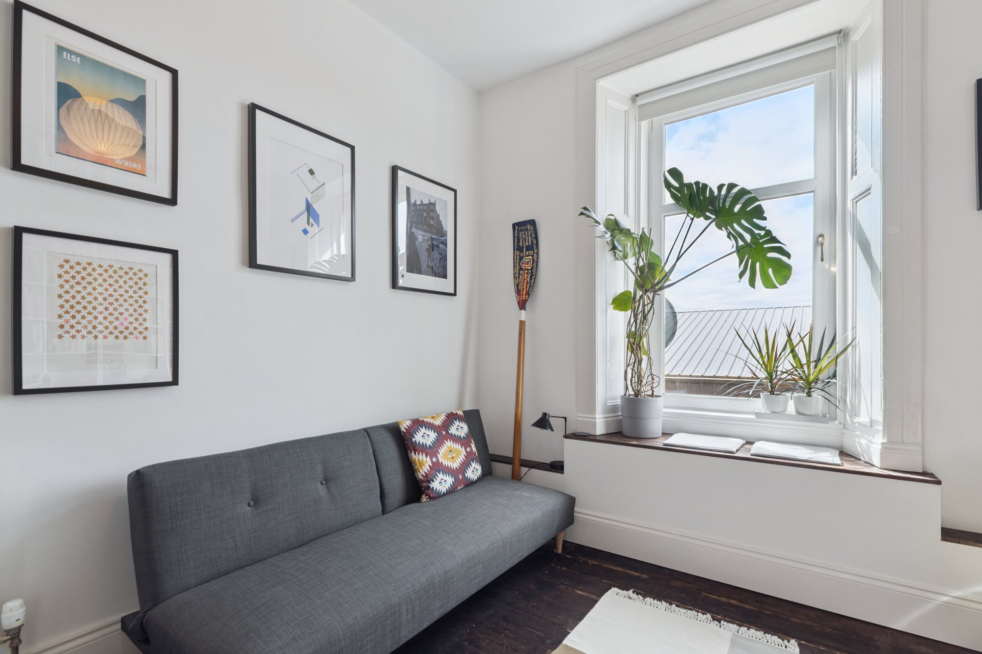 This red sandstone tenement building is accessed via secure door entry system into a well-kept communal close and stairwell, where the flat is on the second floor.