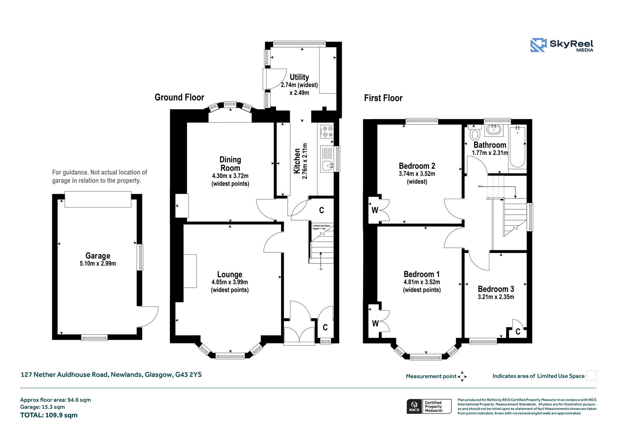 On the upper level, there are three bedrooms; bay-windowed principal bedroom looking on to Nether Auldhouse Road, two further bedrooms and a family bathroom complete the overall accommodation.