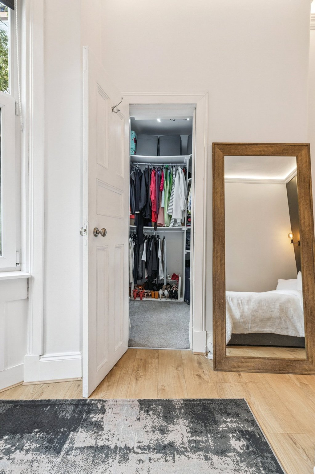 The bedroom is a generous double and enhanced by a lovely bay-style window and excellent storage, including a walk-in wardrobe providing practical space rarely found in properties of this type. The shower room is modern and well-presented, fitted with a contemporary suite and sleek finishes.