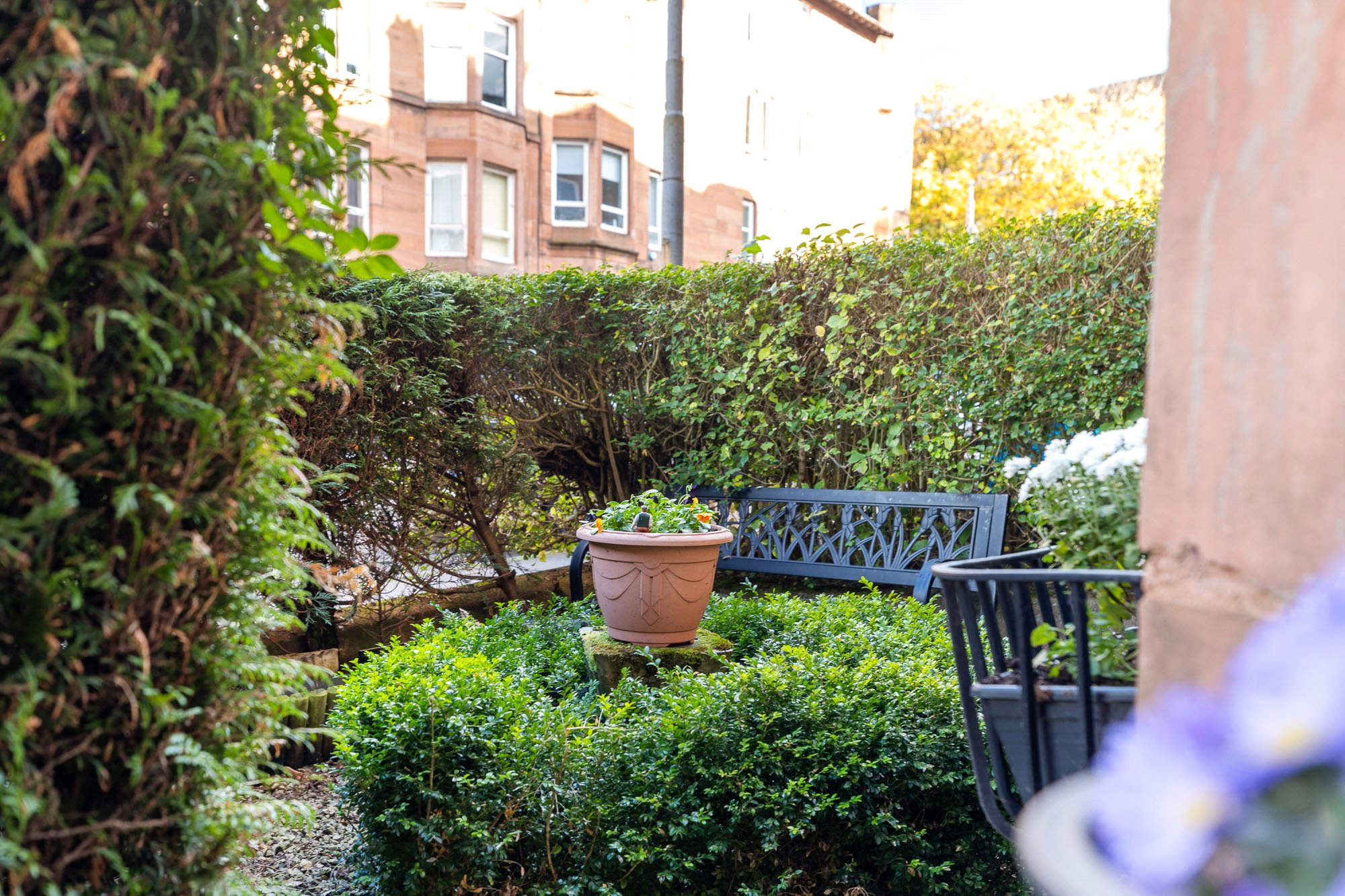 Enjoying a desirable ground-floor position within a traditional red sandstone tenement, this beautifully presented one-bedroom flat offers stylish accommodation with the added benefit of a private front garden.