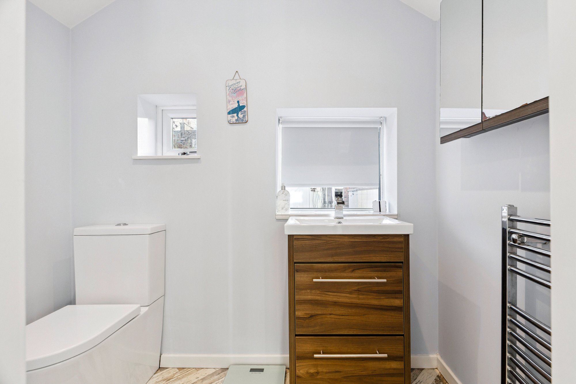 The upper level offers four well-sized bedrooms, each benefiting from excellent natural light. Bedroom 1 is a particularly impressive room, enhanced by lovely bay windows that add to the home’s traditional character. The family bathroom is fitted with a white suite and includes a shower-over-bath, offering both practicality and comfort.