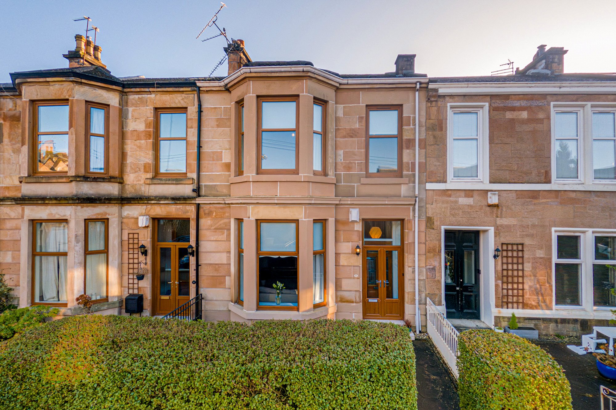 Located in the heart of Cathcart, this bright and spacious four-bedroom sandstone terraced villa offers generous family accommodation over two levels, combining impressive period features with a practical modern layout.