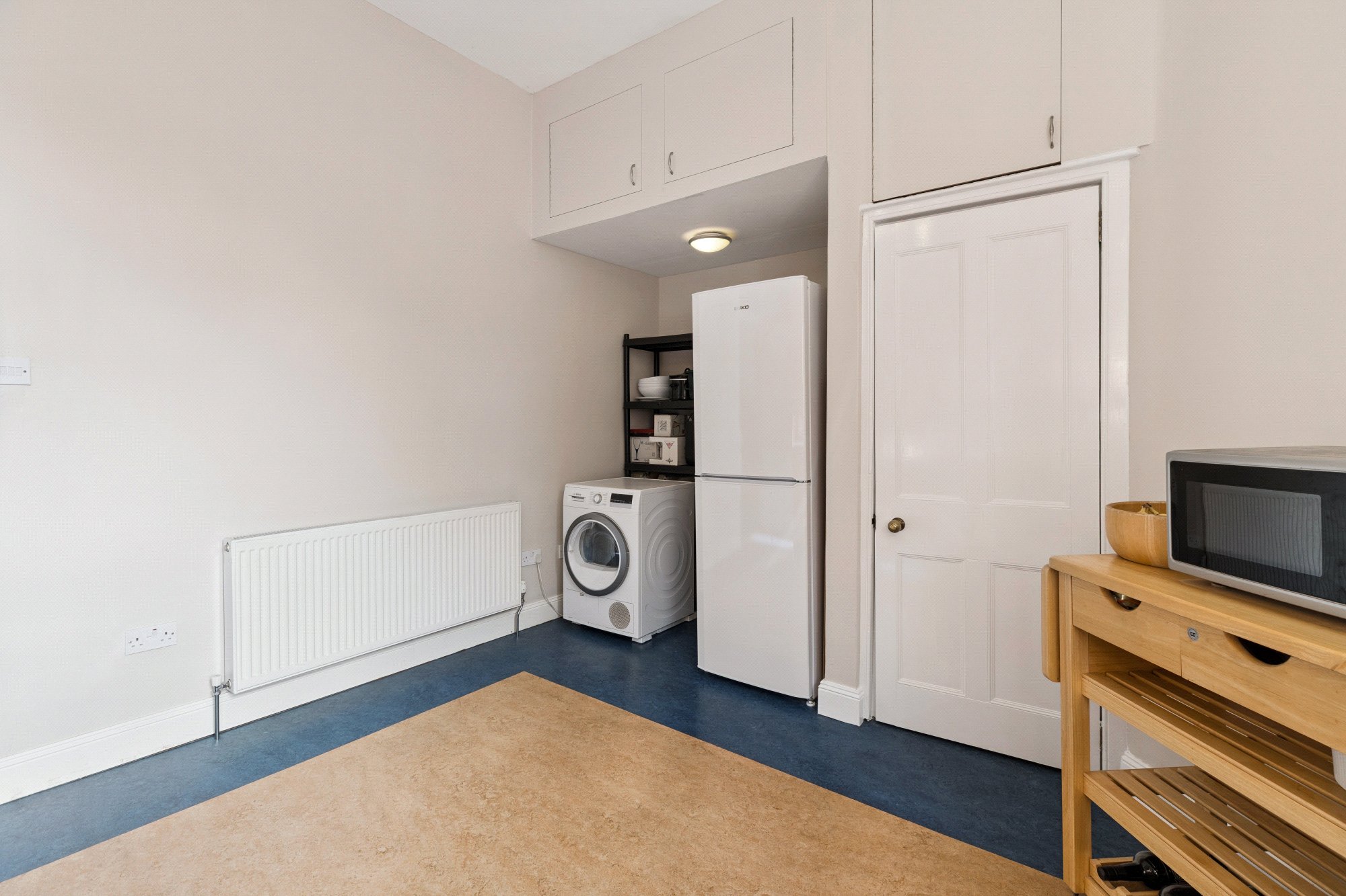 This red sandstone tenement building is accessed via secure door entry system into a well-kept communal close and stairwell.