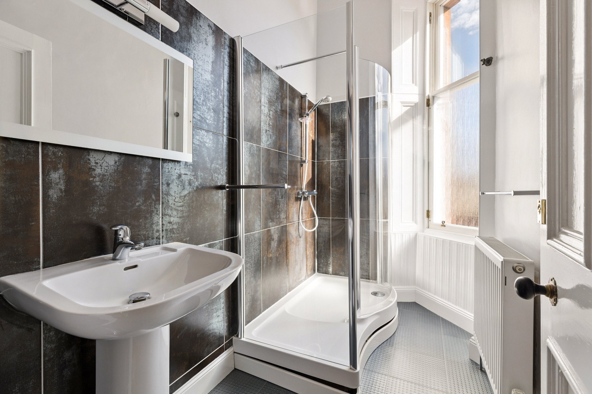 The accommodation of the flat itself comprises grand reception hallway, gorgeous bay windowed lounge with dual aspect, feature fireplace, refurbished floorboards and cornicing, dining sized kitchen with a range of base and wall mounted units, tiled splashback and ample space for dining table and chairs, impressive bay windowed bedroom with refurbished floorboards and cornicing that is currently utilised as an office space, dining room that could easily be a fourth bedroom, tiled shower room with wash hand basin and separate walk-in shower, two more double sized bedrooms, both of which can be utilised very flexibly and bathroom with traditionally styled three piece suite, heated towel rail and panelling.