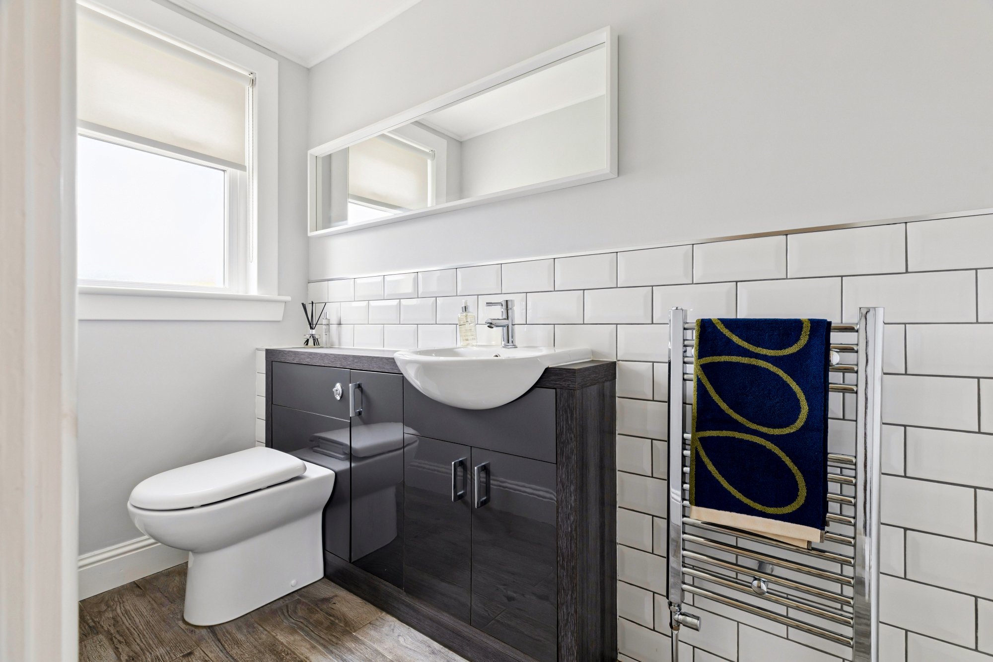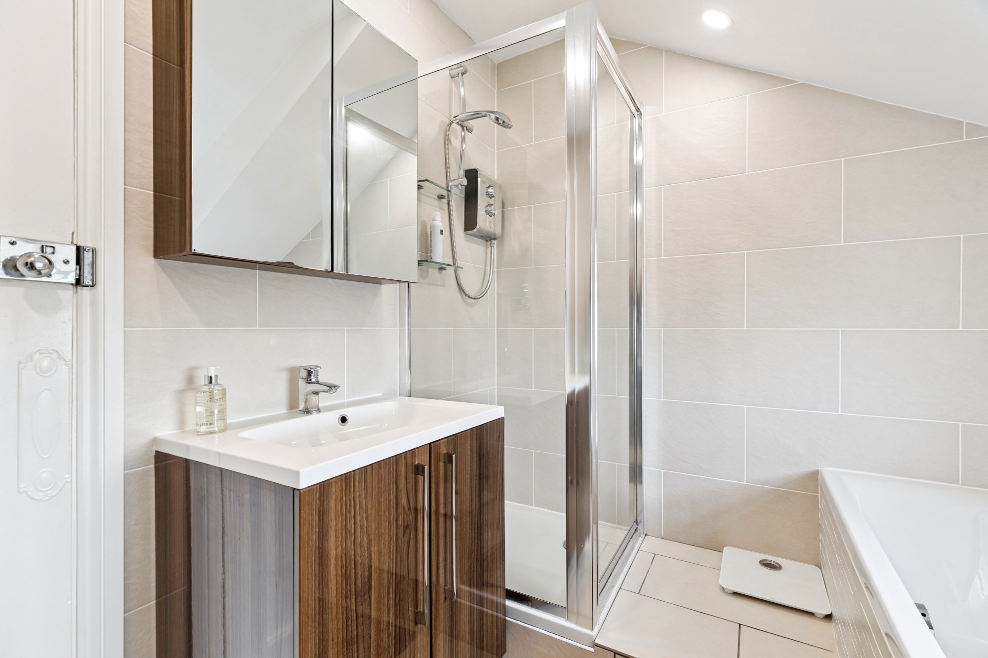 On to first floor, there is a bright half landing which could be utilised as a study area. The first floor hosts three generous bedrooms (two of which are particularly large doubles complete with built in storage). A further short staircase leads to the well appointed family modern 4 piece bathroom, complete with separate bath, shower and vanity unit.