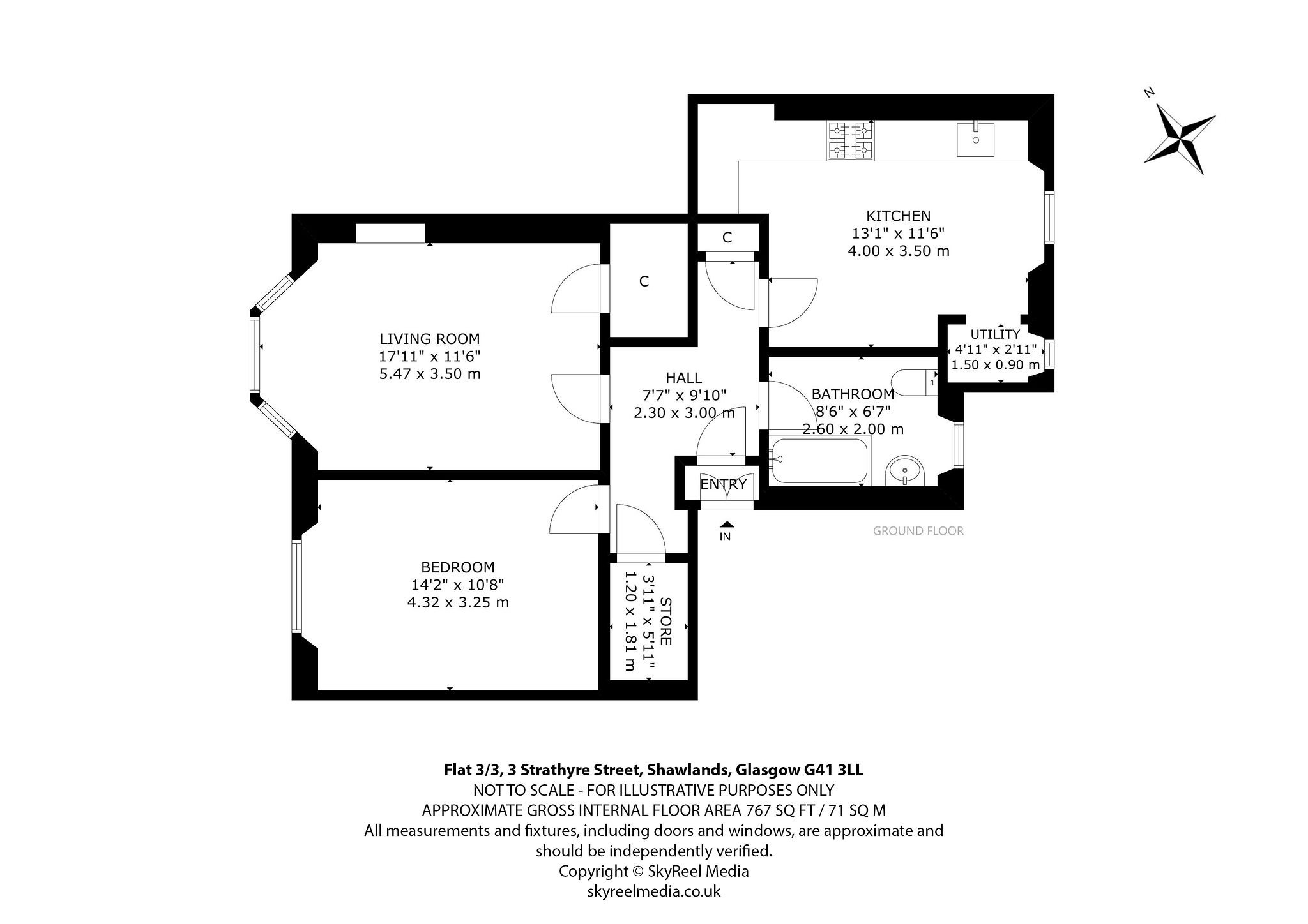 The accommodation comprises a welcoming reception hallway with excellent storage, a generous bay-windowed lounge, a modern fitted kitchen with utility room, a large double bedroom, and a well-appointed bathroom.