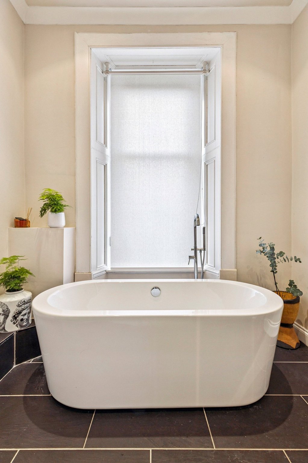 The accommodation of the flat itself comprises private stairwell, leading to the first floor landing, stunning bay windowed with cornicing and feature fireplace, expansive dining kitchen with a range of integrated appliances, base and wall mounted units, breakfast bar and ample space for dining table and chairs, sitting room that could easily be utilised as a home office or an additional bedroom and fabulous tiled bathroom with twin wash hand basin, standalone bath and separate walk-in shower.