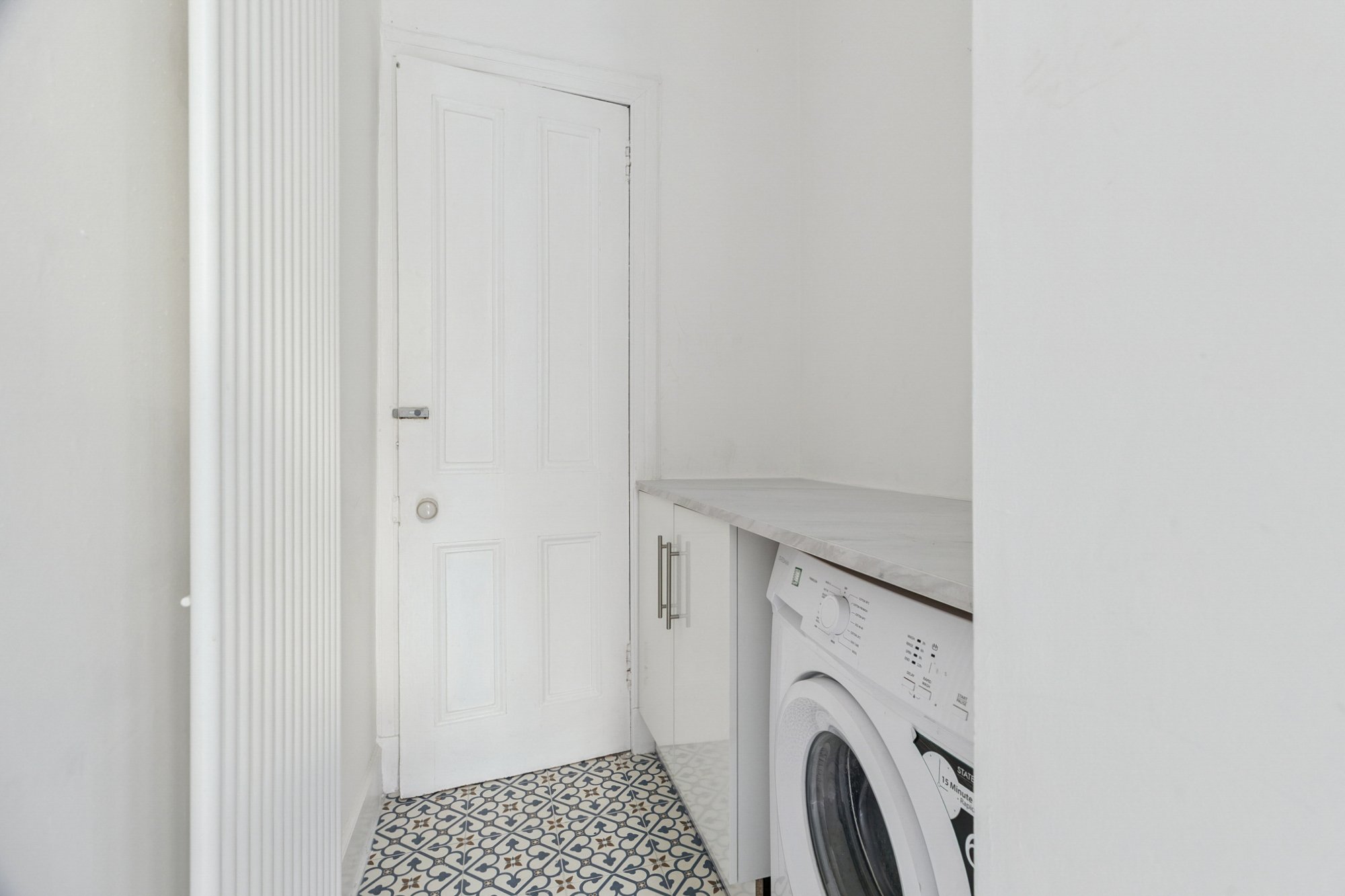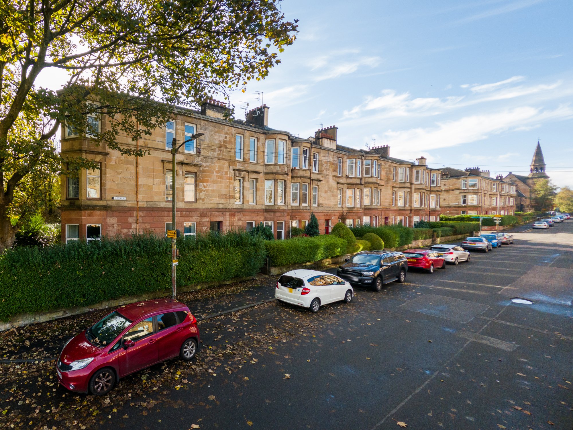 This blonde sandstone tenement building is accessed via secure door entry system into a communal close and stairwell, where the flat is accessed on the first floor.