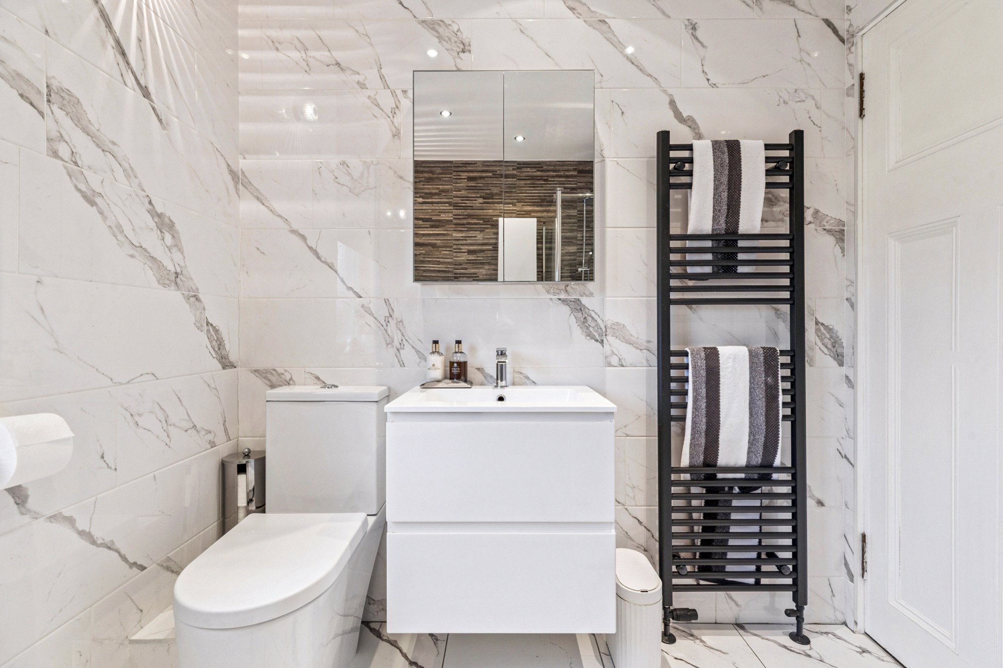 On the first floor there is bay windowed bedroom one with feature fireplace, second double sized bedroom with tiled en-suite shower room off with white two piece suite, vanity unit and separate walk-in shower, incredible tiled bathroom with two piece suite, vanity unit, heated towel rail, standalone bath, separate walk-in shower and under floor heating and fourth bedroom.