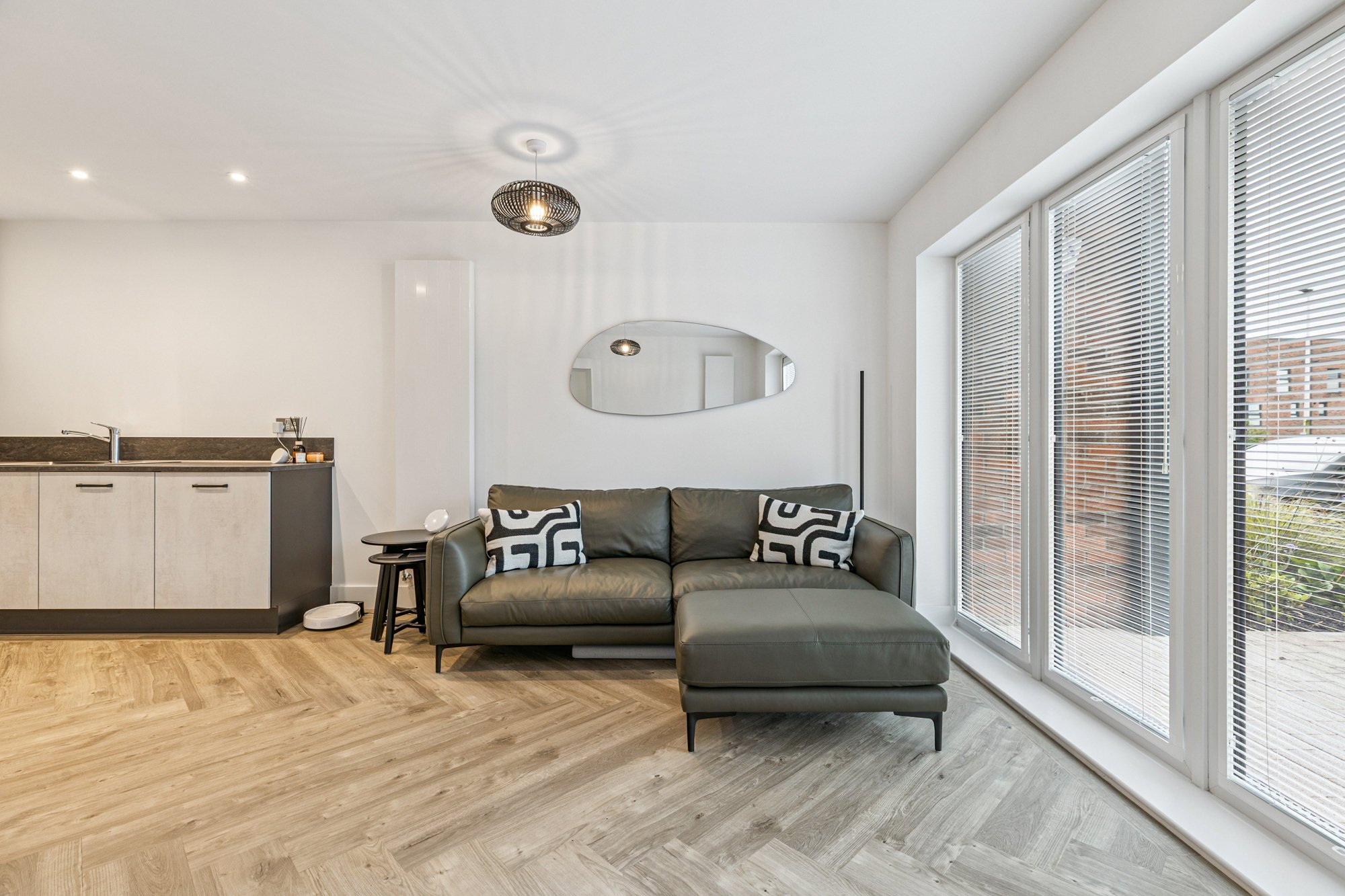 The accommodation is entered via a shared, security-controlled entrance leading into a welcoming reception hallway with useful storage cupboards. To the rear of the property is a stunning open-plan lounge, dining area and kitchen, forming a bright and free-flowing living space ideal for modern living. This impressive room benefits from large windows and patio doors which open directly out, allowing an abundance of natural light and enhancing the connection with the surrounding gardens. The kitchen is fitted with a quality range of base and wall-mounted units, complementary work surfaces, coordinated splashback tiling and integrated appliances, with ample space for both dining and relaxing.