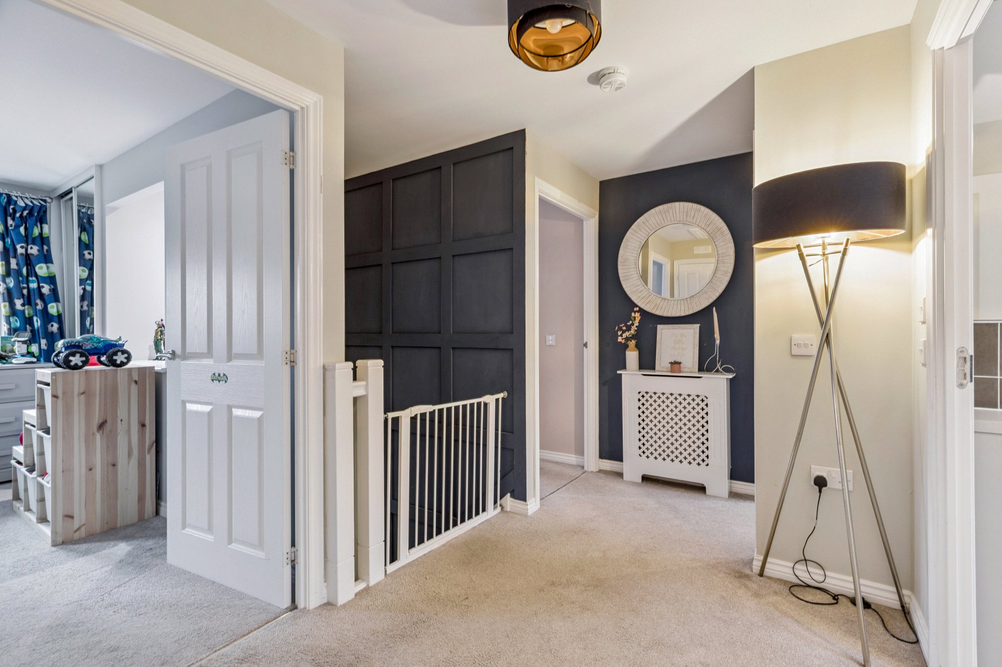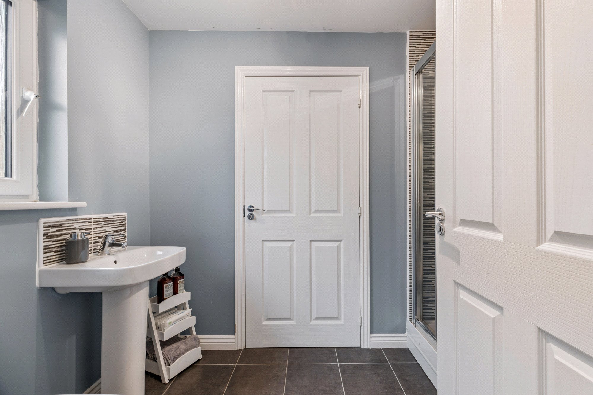 Upstairs the accommodation comprises double sized bedroom one with integrated wardrobes and tiled en-suite shower room off, second and third double sized bedrooms that share a Jack & Jill en-suite, fourth bedroom that could easily be utilised as a home office or study and a tiled bathroom with white three piece suite.