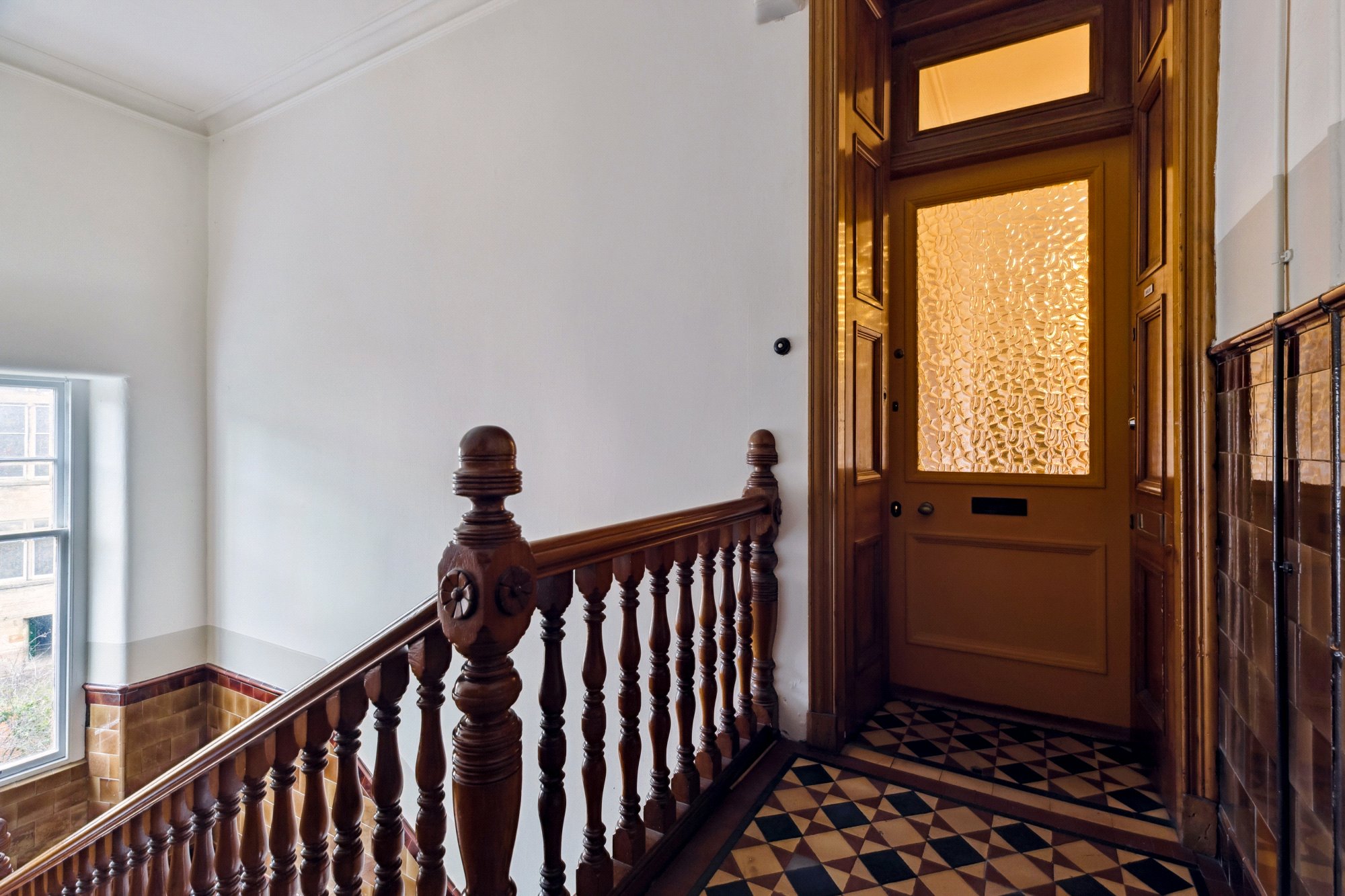 This red sandstone tenement building is accessed via secure door entry system into a pristinely kept communal close and stairwell, where the flat is entered on the top (second) floor.