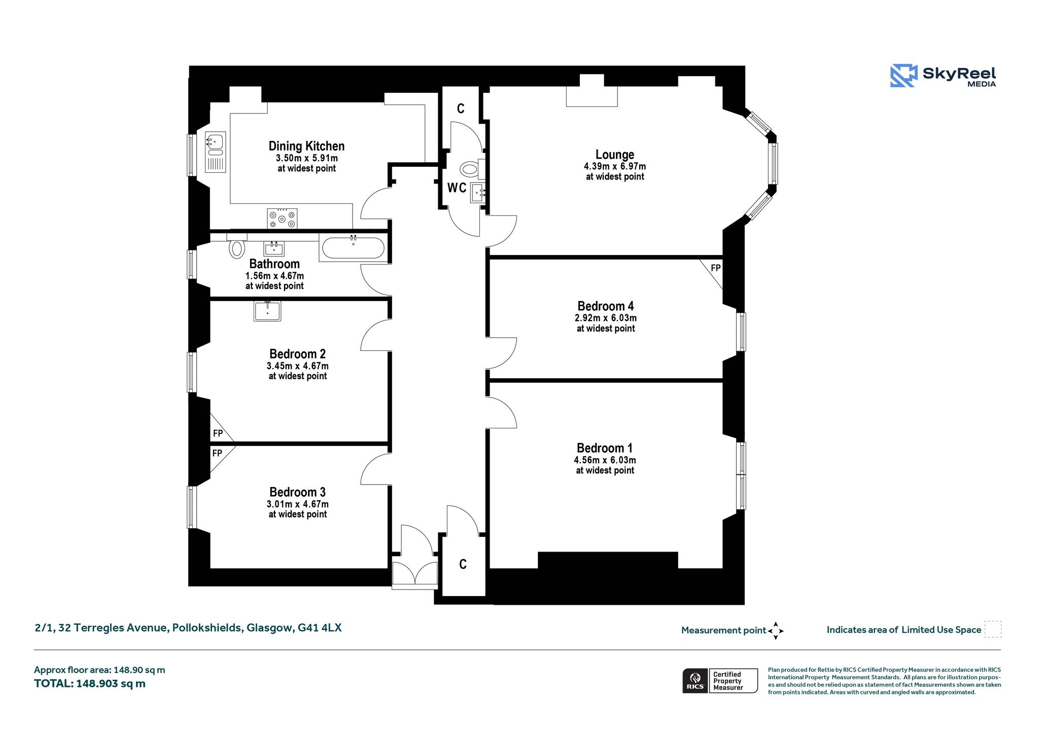 The accommodation of the flat itself comprises expansive reception hallway with cupboard and W.C. off with two piece suite, fabulous bay windowed lounge with cornicing, feature surround with wood burning stove and spectacular view, bespoke dining sized kitchen with a range of base mounted units and in-built seating in the dining recess. There are four double sized bedrooms, all of which can be utilised very flexibly with bedrooms two and 3 enjoying feature fireplaces.