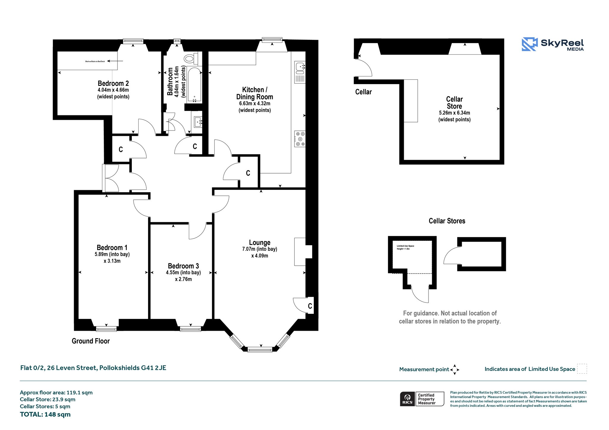 The blonde sandstone tenement building is accessed via secure door entry system into a well-kept communal close. The elevated flat has a spacious reception hallway with three storage cupboards, leading to a stunning bay windowed lounge with intricate cornice detailing, feature fireplace and refurbished floorboards.