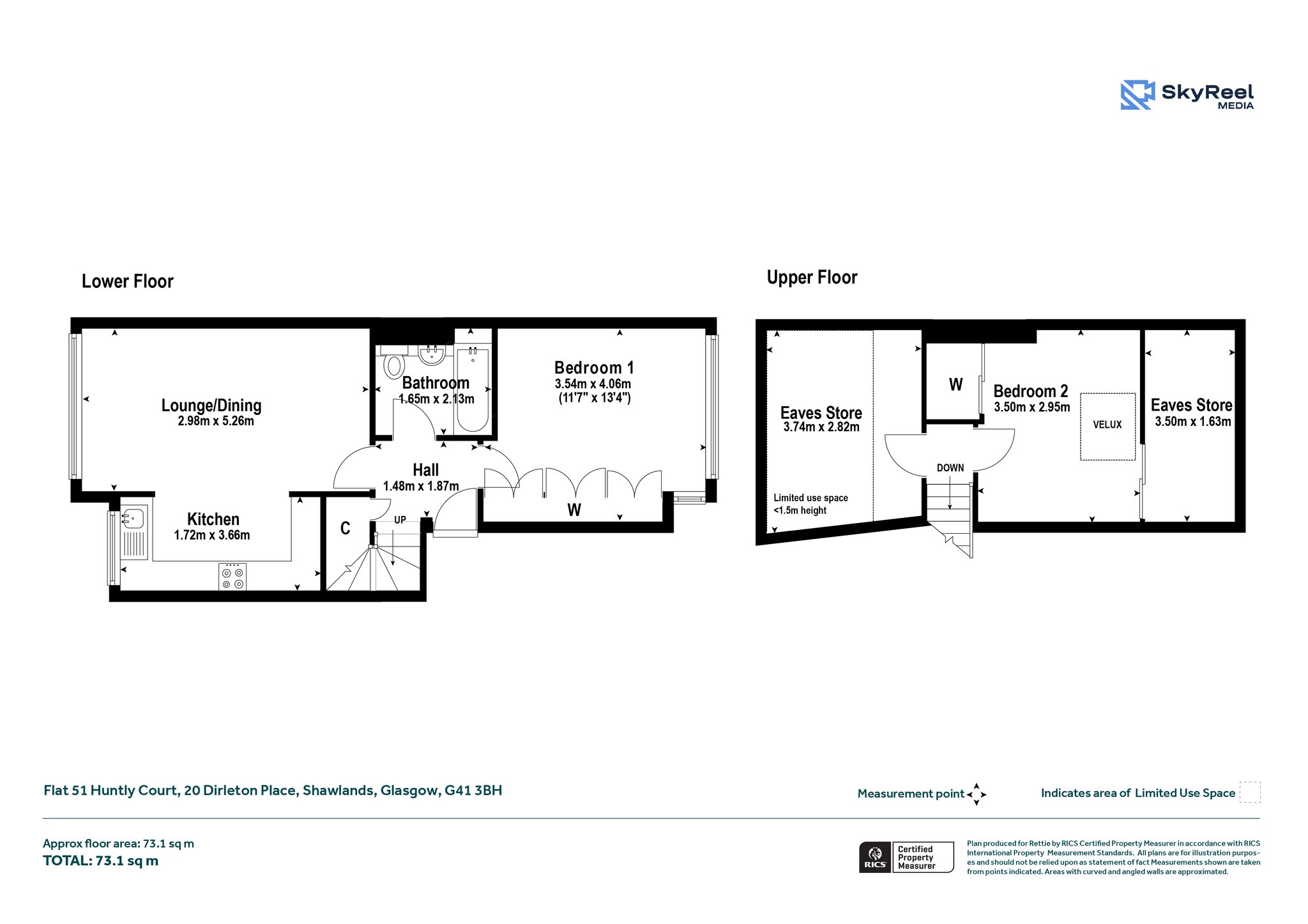 Upstairs the accommodation comprises bedroom two with integrated wardrobes and separate eaves storage.