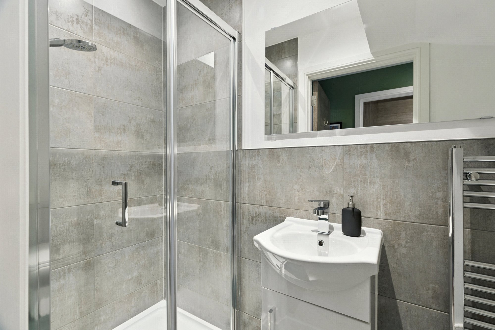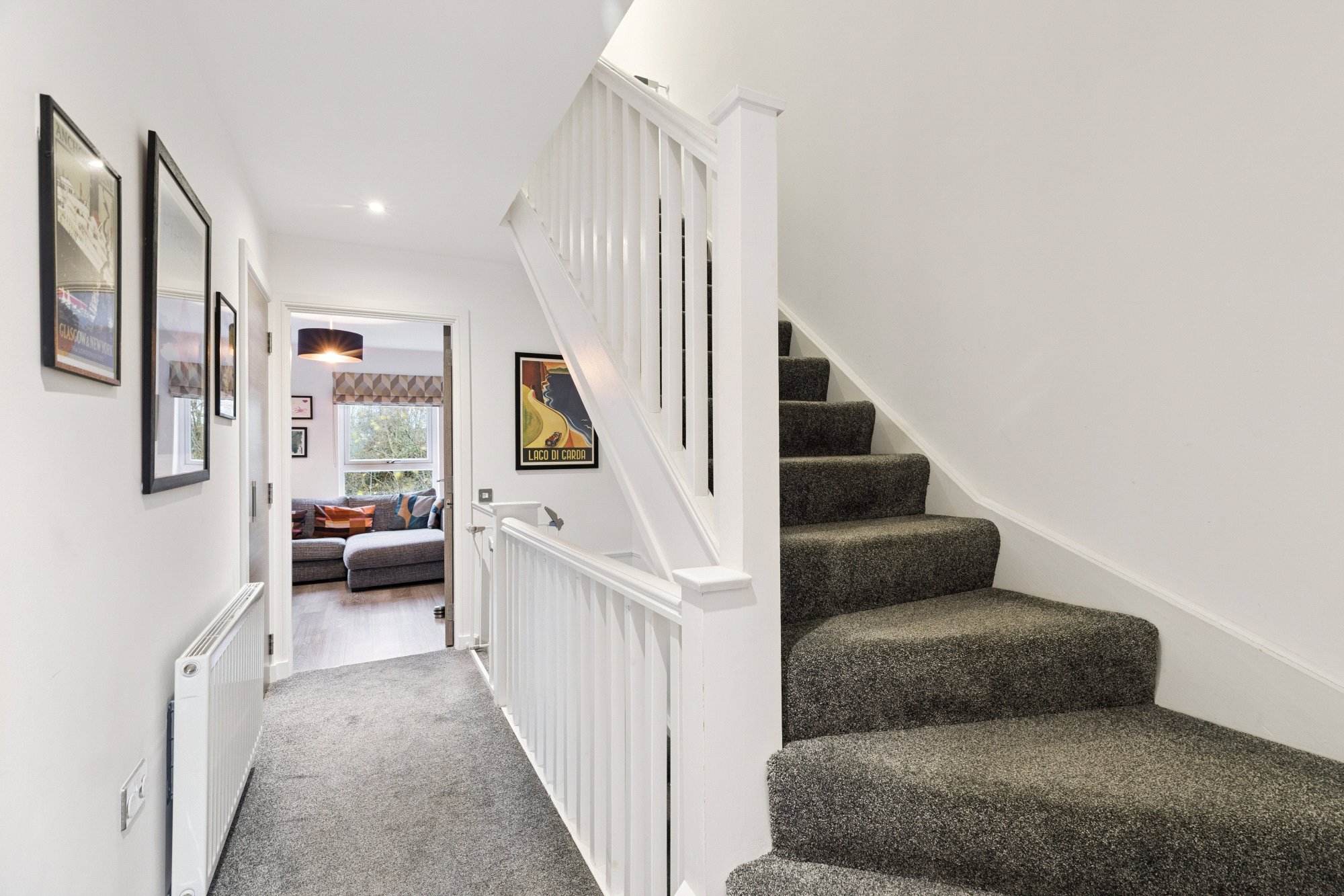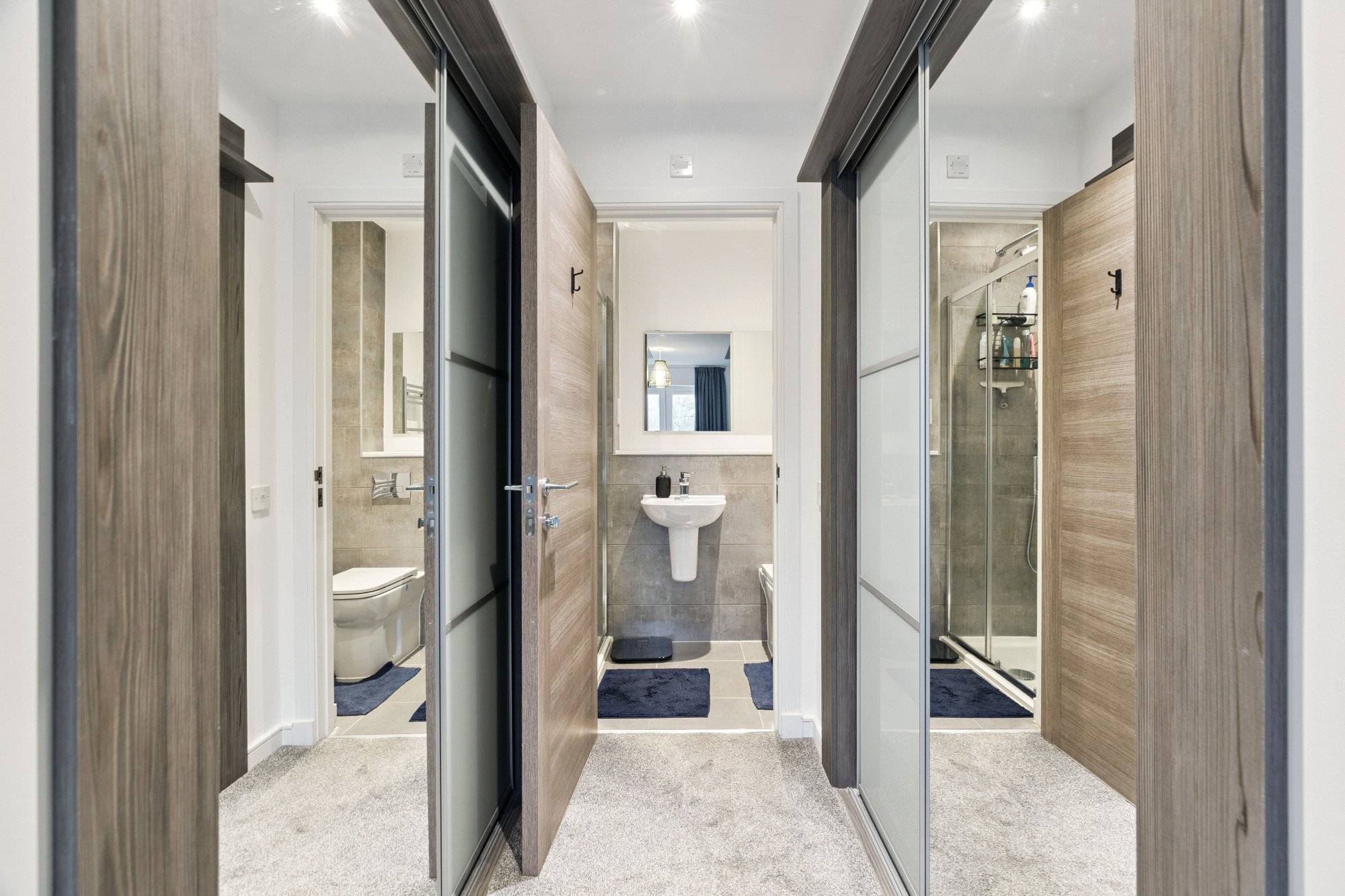 The second floor hosts three well-laid-out bedrooms and a modern fitted family bathroom. The principal suite further benefits from a dedicated dressing area with inbuilt wardrobes leading through to a beautifully finished en-suite shower room.