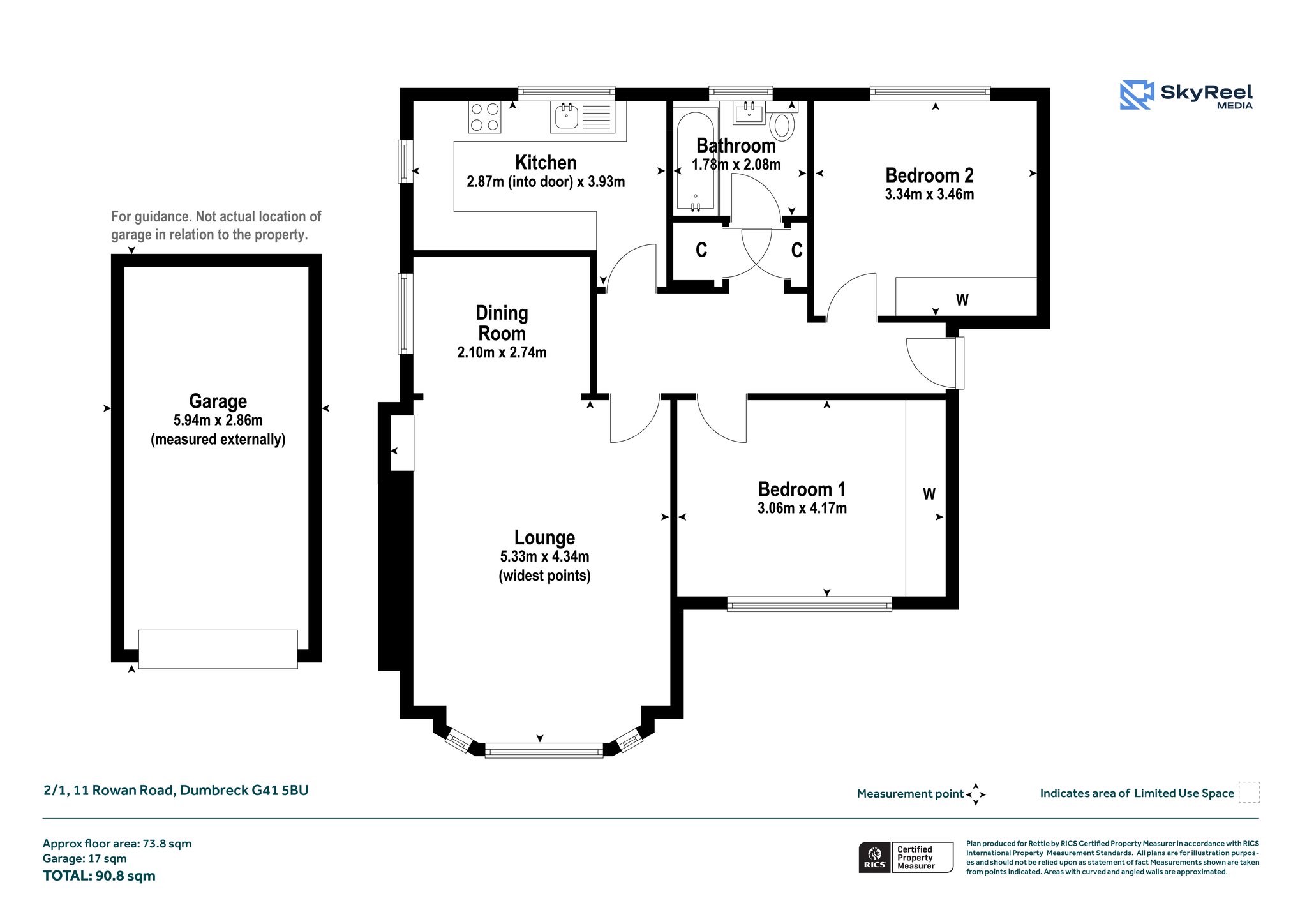 There are two well-proportioned double sized bedrooms, with the generous principal bedroom benefiting from an inbuilt wardrobe. Finally, a freshly presented, modern three-piece bathroom complete with bath, completes the overall accommodation.