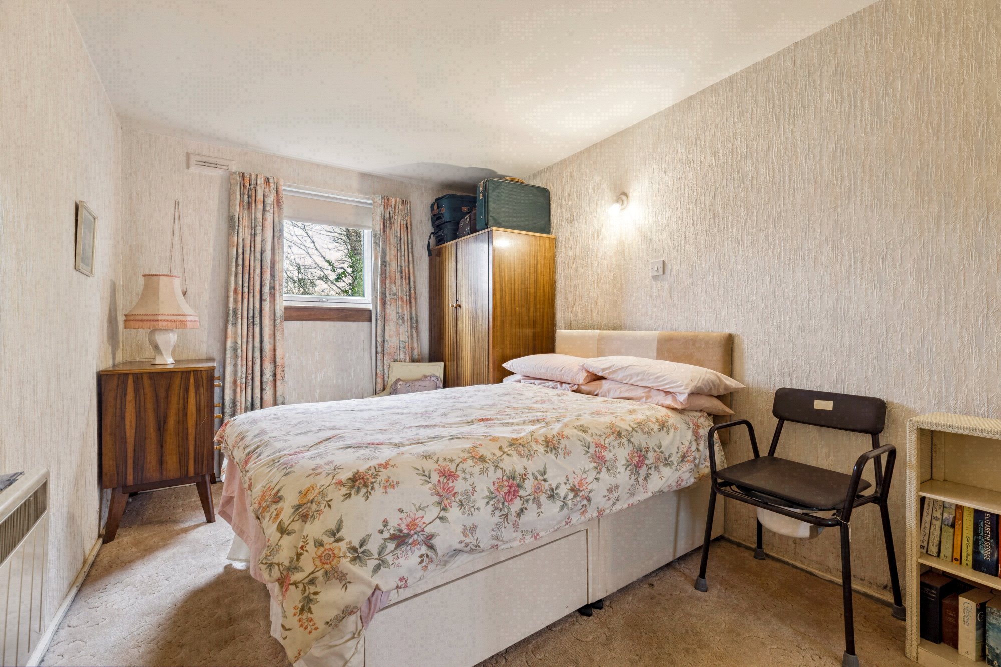 The accommodation of the flat itself comprises welcoming reception hallway with two cupboards off, spacious lounge with dining area, kitchen with a range of base and wall mounted units and tiled splashback, double sized bedroom and bathroom with three piece suite.