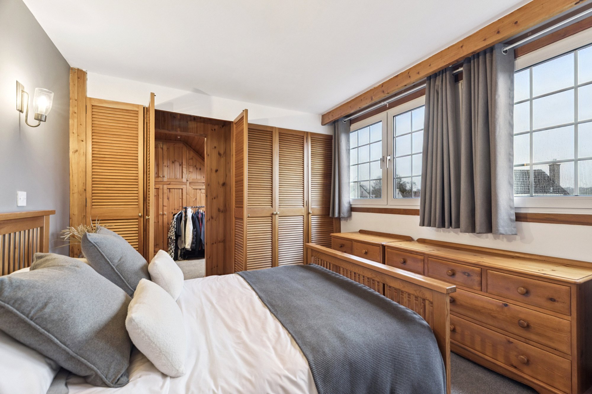 Upstairs, the landing leads to an impressive main bedroom accompanied by a generous walk-in wardrobe, creating a private and luxurious retreat. A further well-proportioned bedroom sits adjacent, and the upper-floor shower room offers contemporary convenience. Thoughtful built-in storage throughout the home ensures every inch of space is utilised effectively. The property also includes an attached garage, providing excellent additional storage or workshop potential.