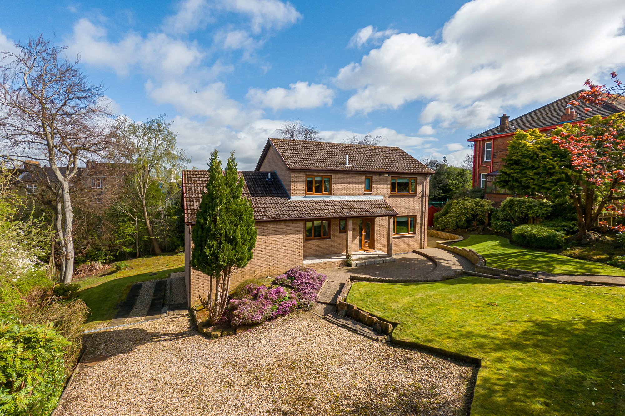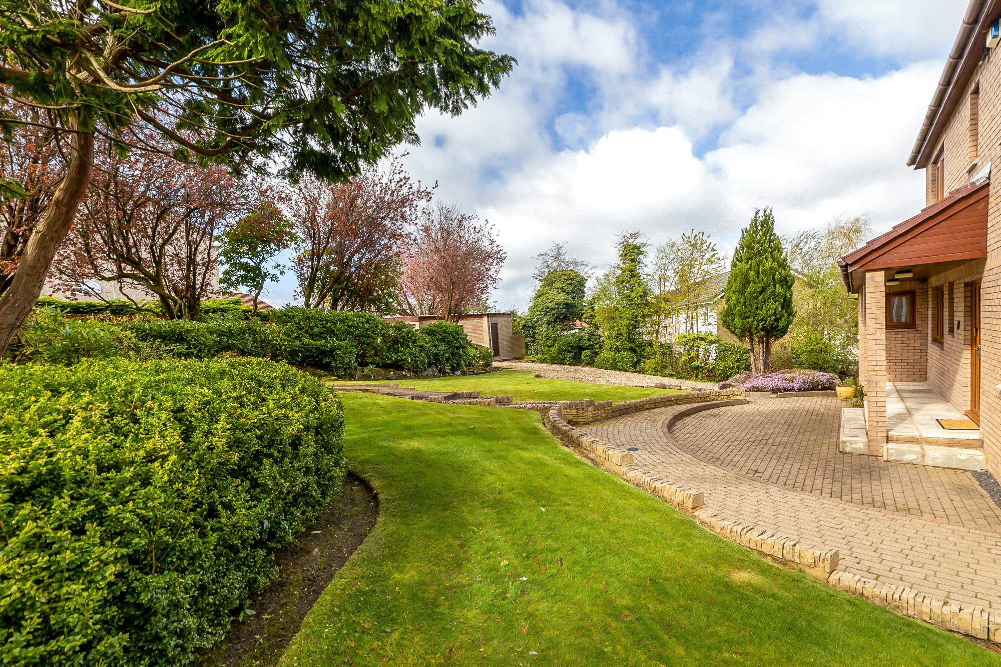 Externally there is the aforementioned sweeping driveway, along with extensive mature garden grounds to the front, side and rear with separate lawns and patio. There is also a detached garage.