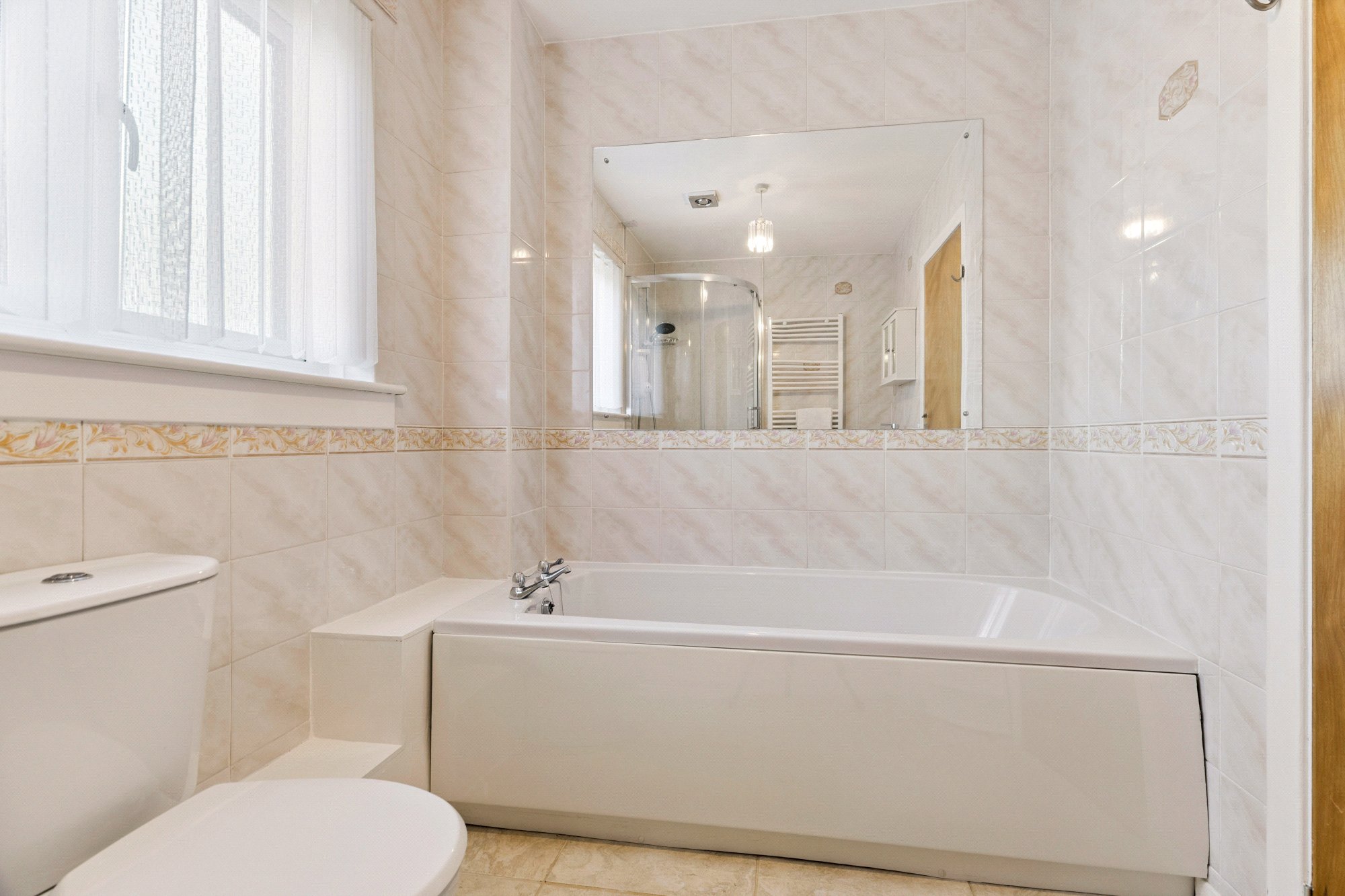 From the kitchen there is access through to the utility room, two more bedrooms, both of which can be utilised very flexibly and tiled bathroom with three piece suite. There is access here down to the lower level where there is a useful family room with access out to the rear garden.