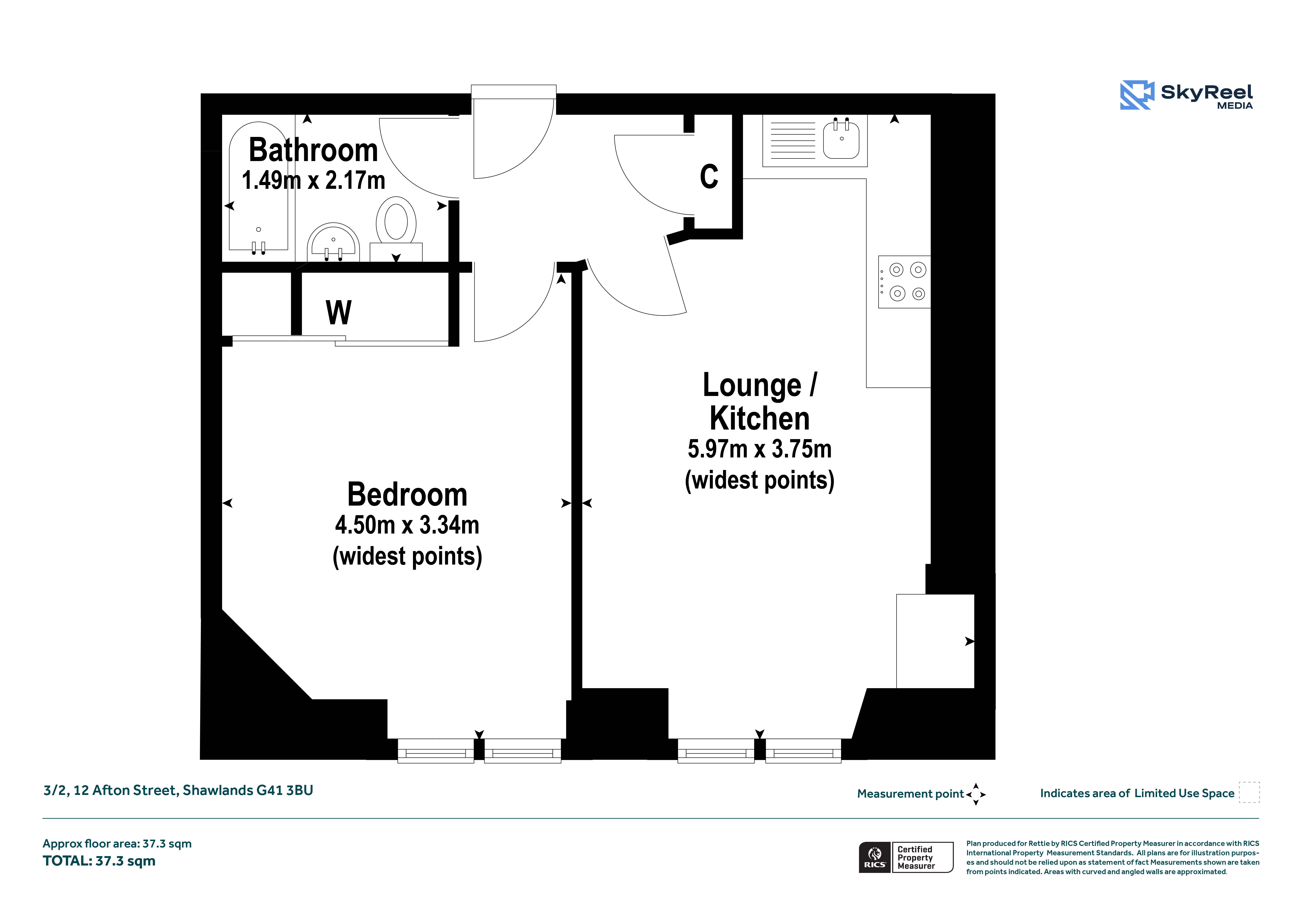 The accommodation of the flat itself comprises reception hallway with cupboard off, lounge open plan onto the kitchen area with a range of base and wall mounted units and tiled splashback, double sized bedroom with integrated wardrobes and tiled bathroom with three piece suite and electric shower.