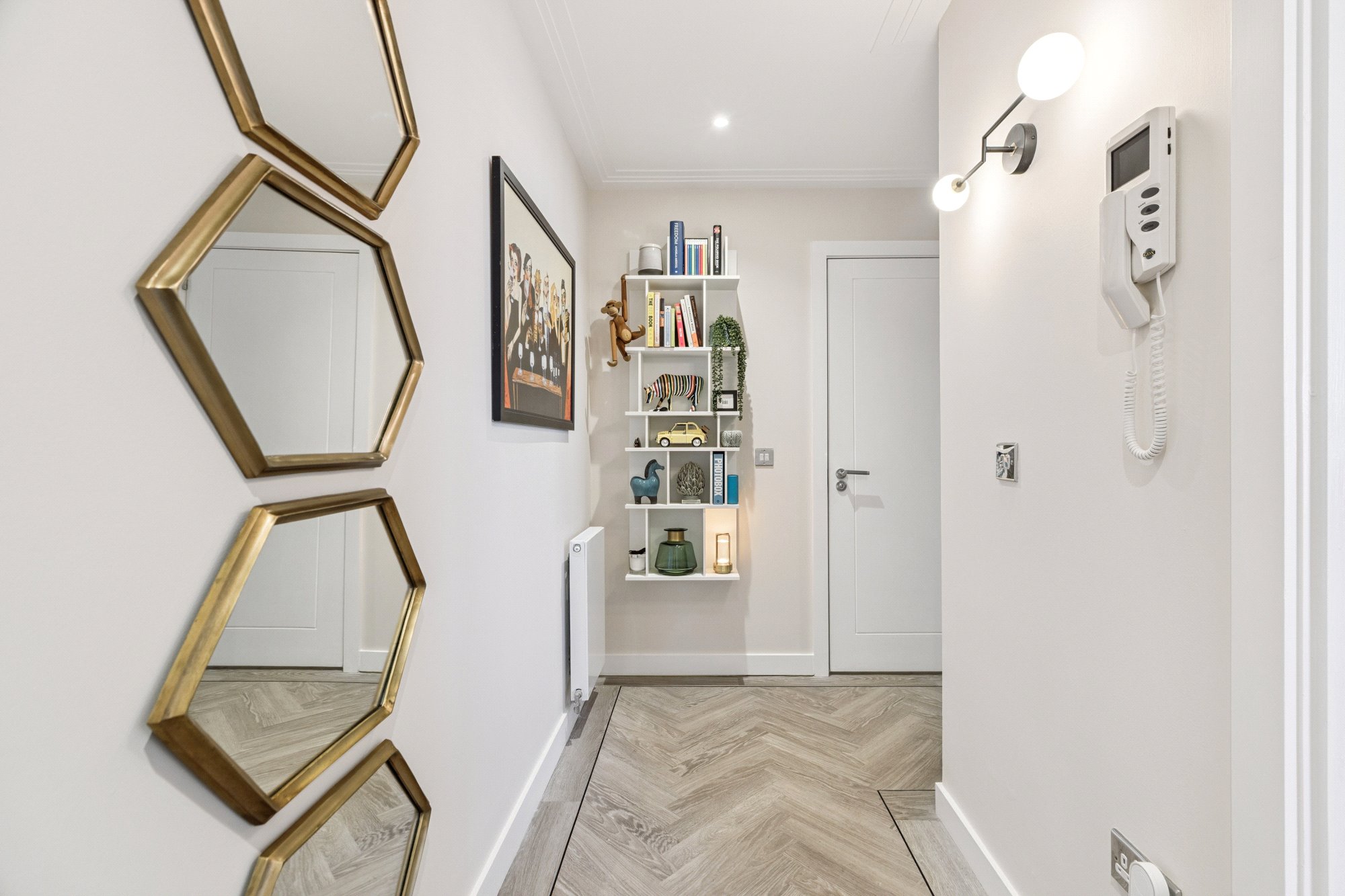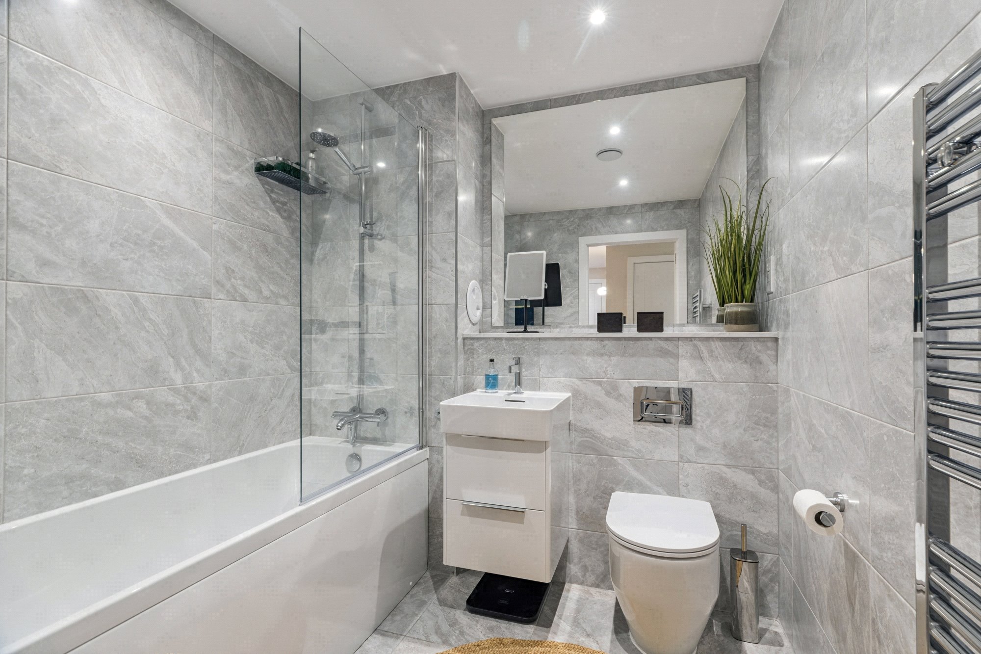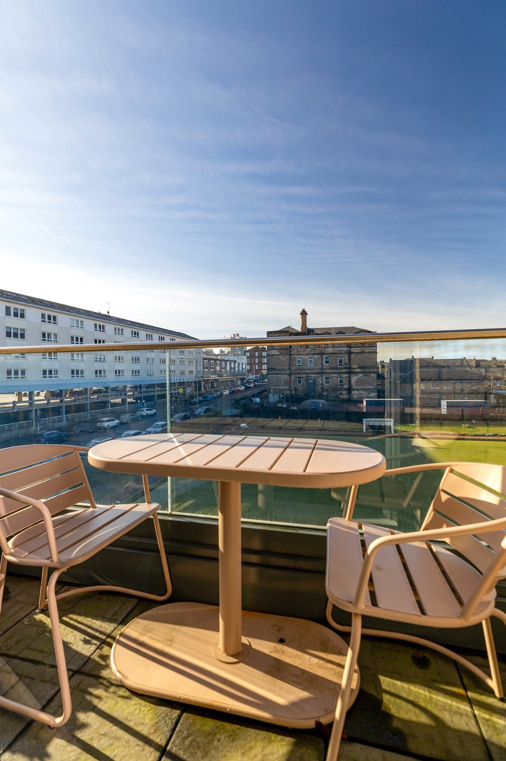 Further features include gas central heating, double glazing, a security alarm system, private residents’ parking with an electric car charging point, bike store, lift access, and a communal roof terrace which captures the evening sun and offers far-reaching views towards Ben Lomond.