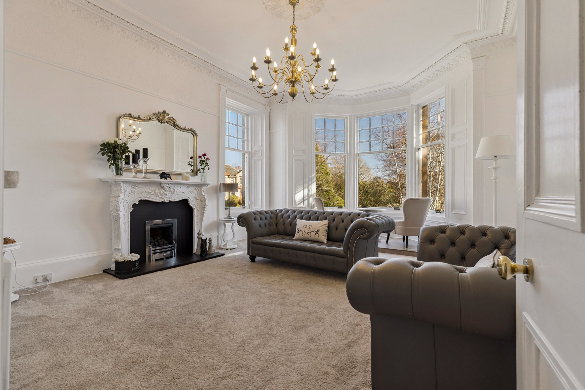 The accommodation includes external stair to side of the building, private vestibule, generous reception hallway leading on to a double aspect bay windowed lounge with gas fire and feature fireplace. Off reception hallway accommodates three double sized bedrooms (one currently used as a second sitting room). A recently refurbished modern kitchen, complete with floor and wall mounted units and benefits from peaceful views over rear garden.