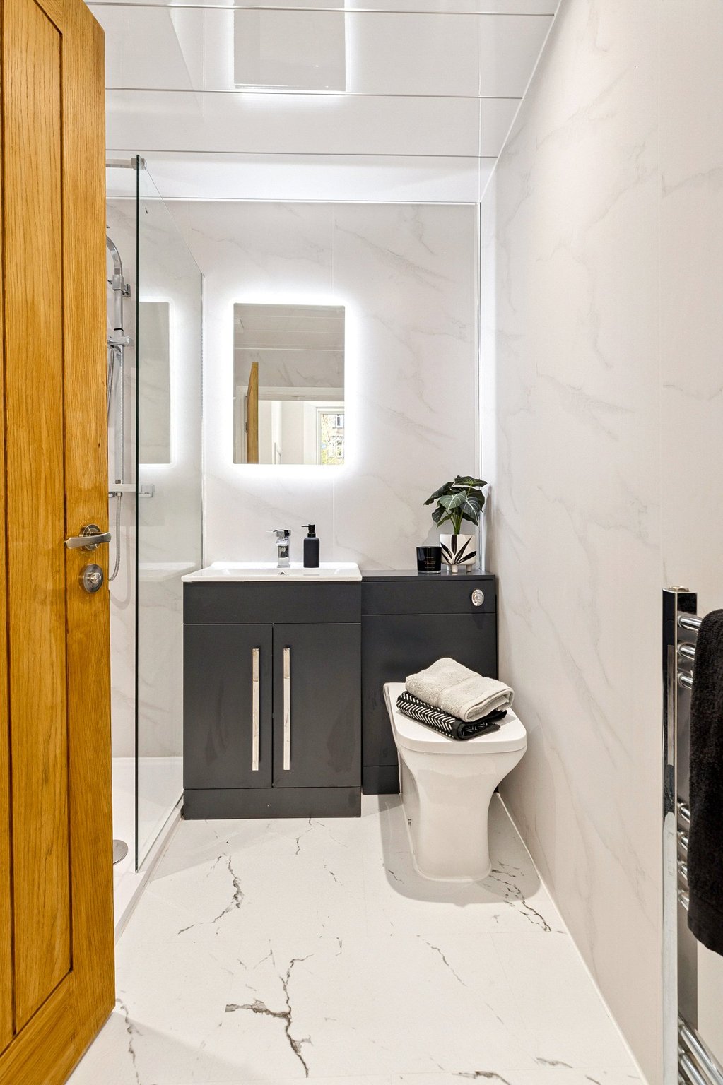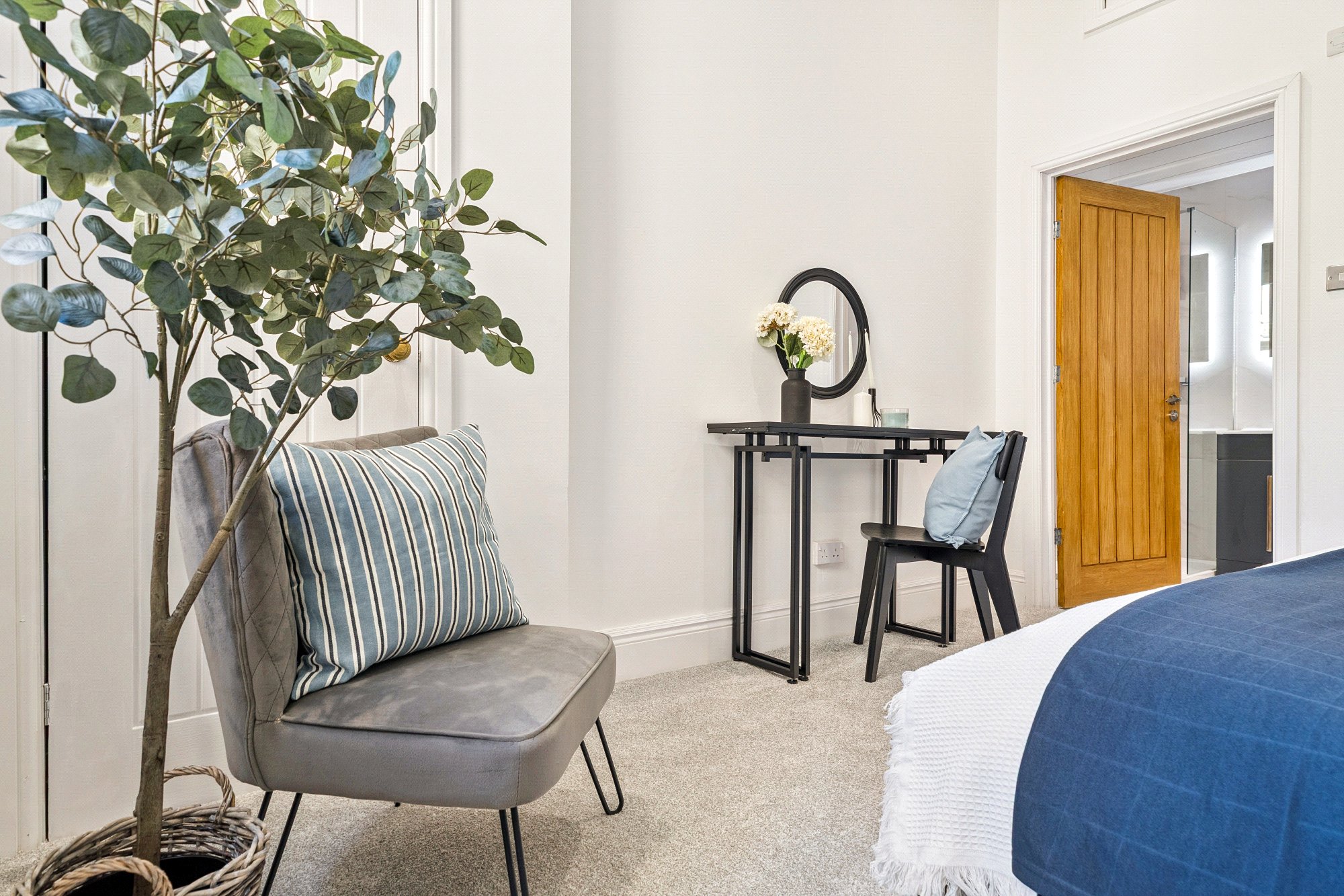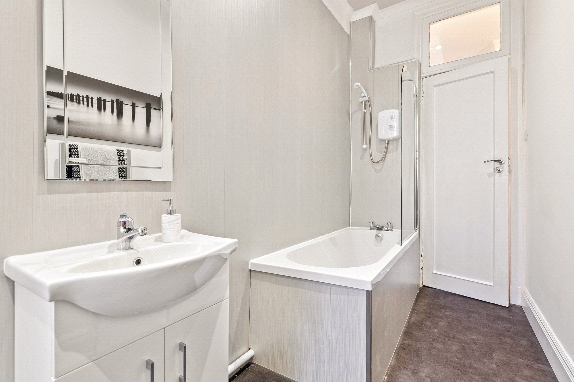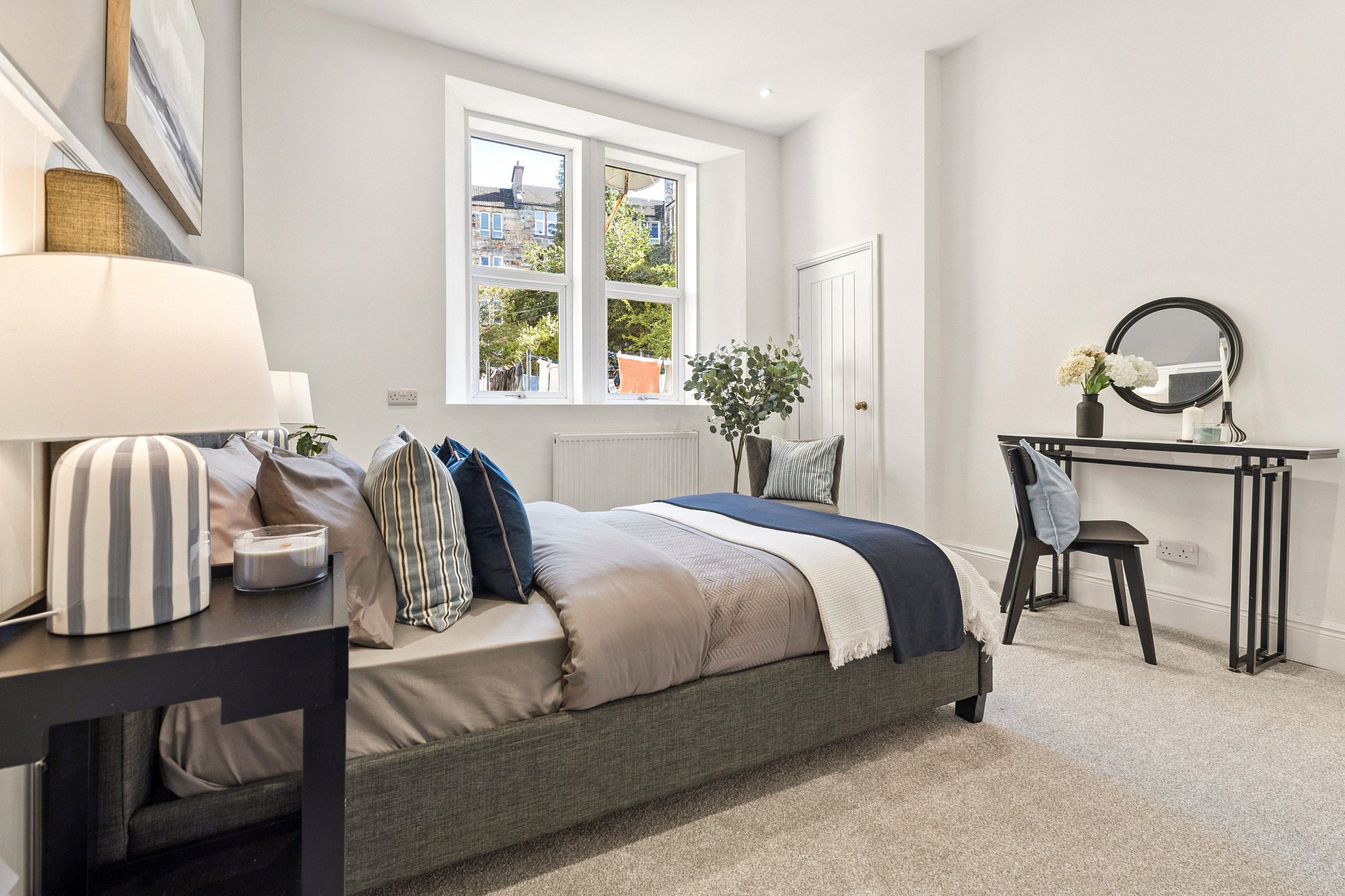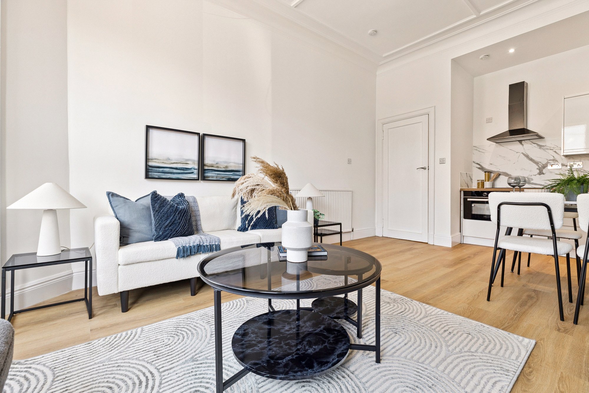 The accommodation of the flat itself comprises welcoming reception hallway with two cupboards off, bay windowed lounge with cornice plaster, open plan onto a newly fitted kitchen with a range of base and wall mounted units with splashback, spacious bedroom one with wet-walled en-suite shower room with two piece suite, vanity unit, heated towel rail and walk-in shower, second double sized bedroom that could easily be utilised as a home office or study and wet walled bathroom with white three piece suite, vanity unit and heated towel rail.