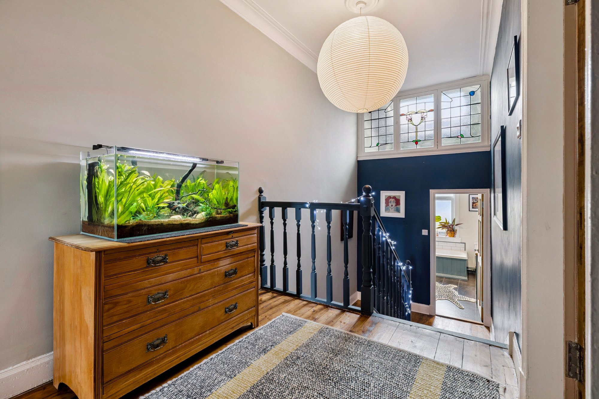 Upstairs there is bay windowed bedroom one, second double sized bedroom with refurbished floorboards, third bedroom that could easily be utilised as a home office or study and a gorgeous tiled bathroom with traditionally styled three piece suite, bespoke vanity unit and separate walk-in shower.