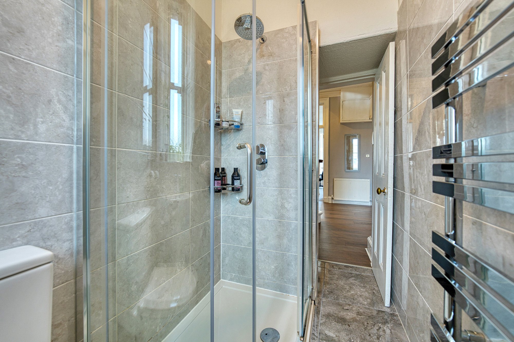The accommodation on the lower level is accessed via a generous reception hallway with excellent storage. The bay windowed lounge sits to the front and enjoys superb natural light, generous proportions and attractive period detailing. To the rear, the large dining kitchen provides an ideal everyday living and entertaining space, complete with ample room for a dining table. This level also includes two well sized bedrooms, one particularly spacious double and a further generous room, along with a modern shower room and additional shelving.