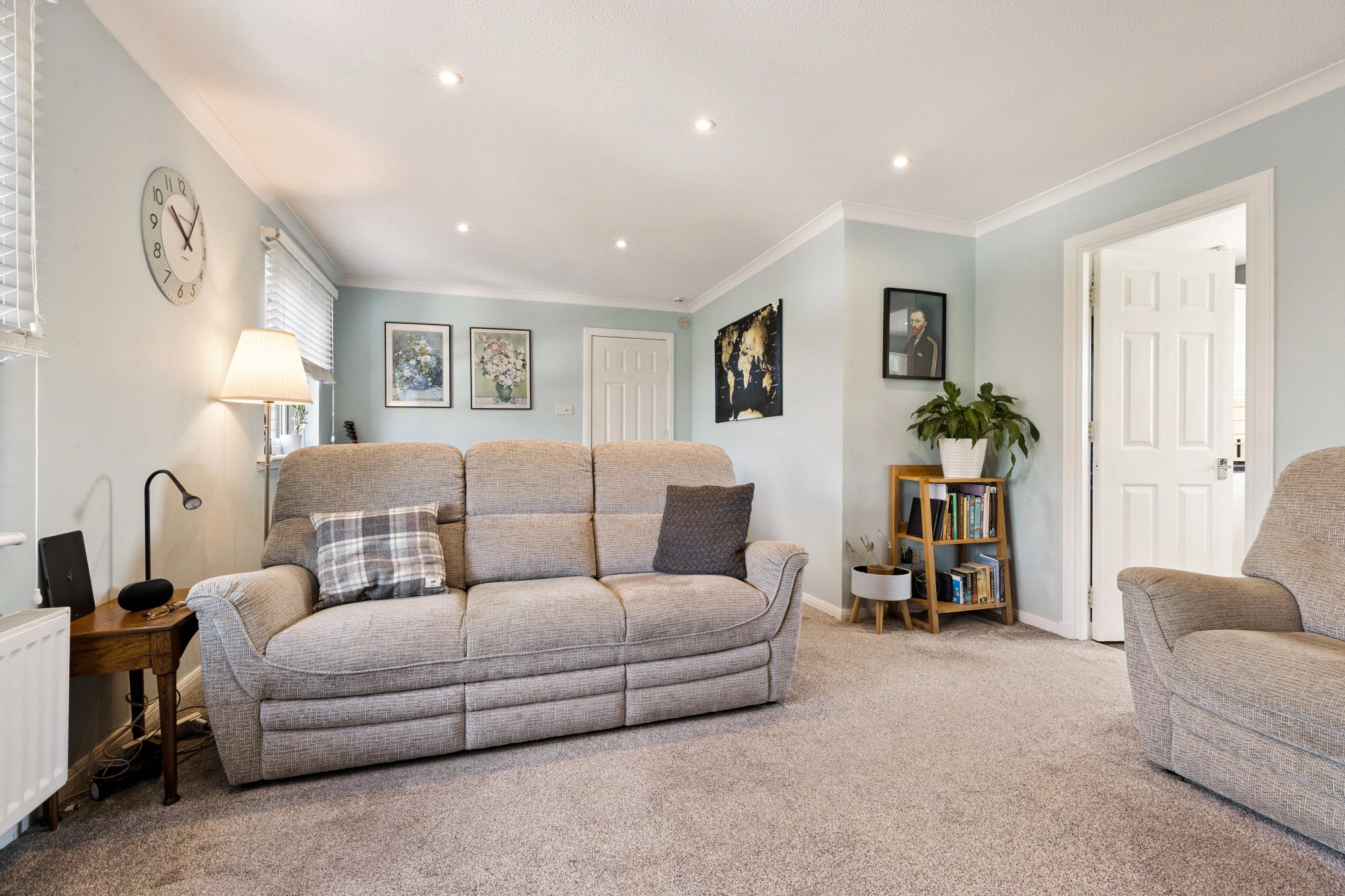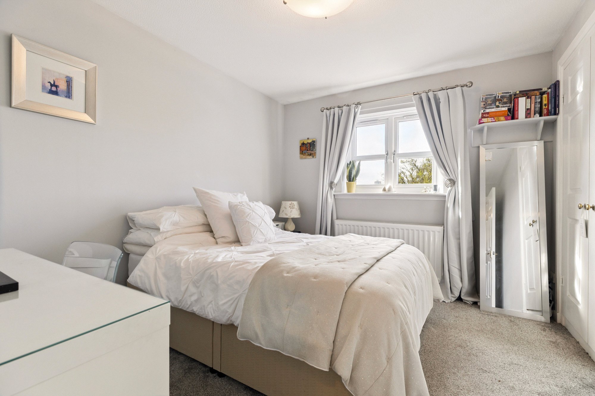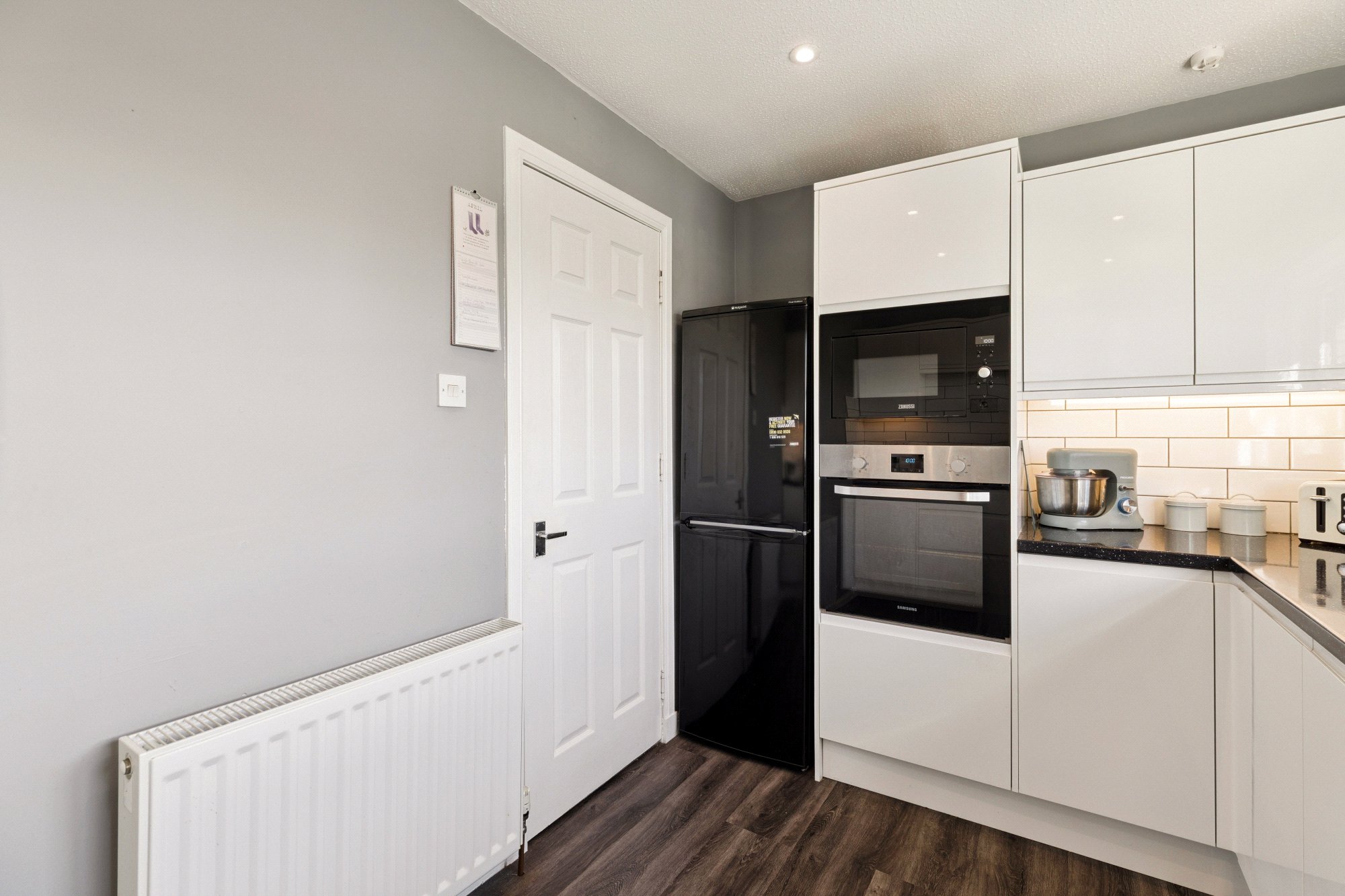 The accommodation of the flat itself comprises welcoming reception hallway with large cupboard off, spacious lounge/dining room with feature wall and open aspect, modern kitchen with a range of base and wall mounted units and tiled splashback, two double sized bedrooms, both with integrated wardrobes and gorgeous tiled bathroom with white three piece suite, vanity unit and separate walk-in shower with glass screen.