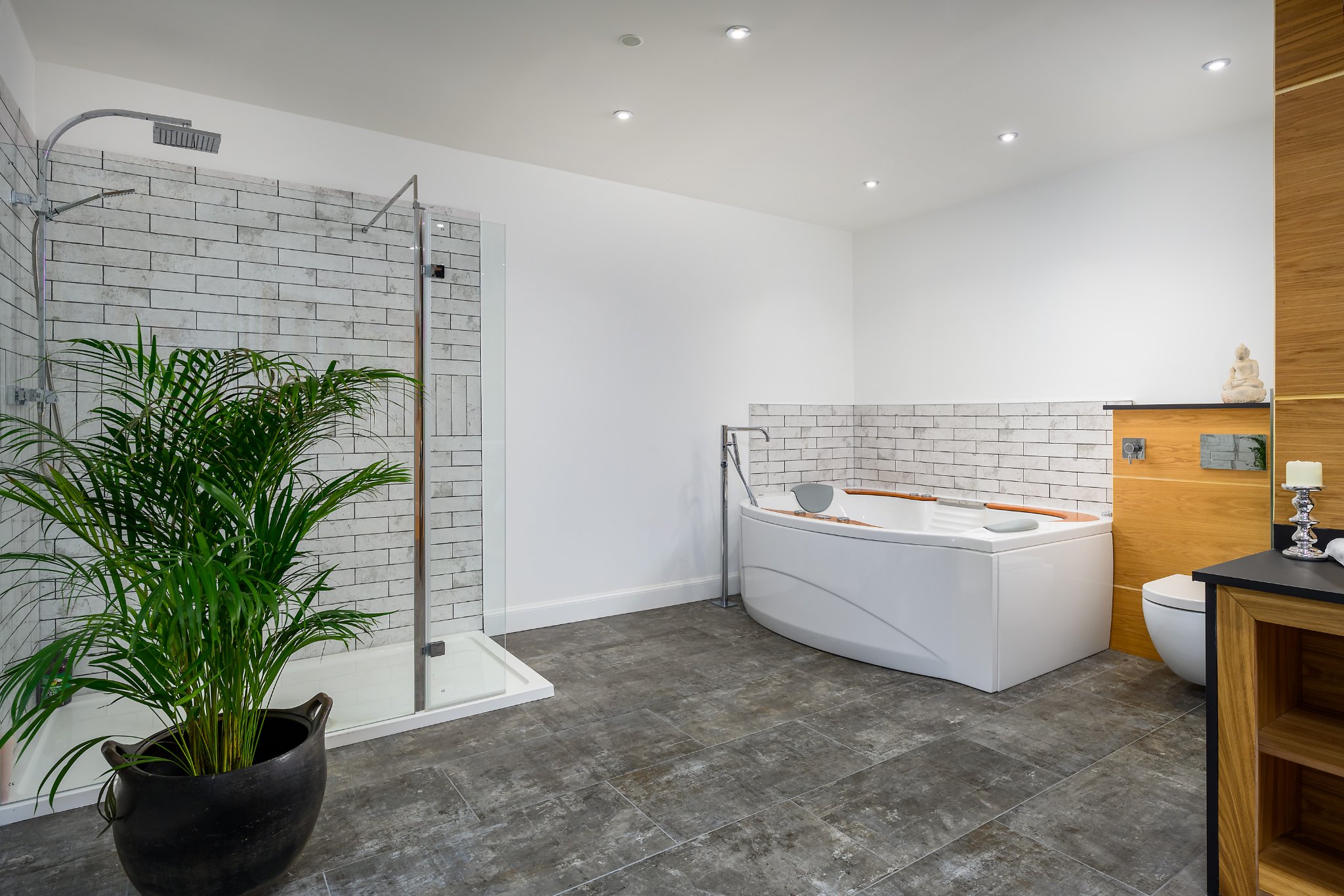 Three additional rooms offer flexibility of use, one of which is fitted with cabinetry and cooking appliances. A modern shower room with sanitary fittings further enhances its functionality. With these amenities it could make a cosy guest retreat.