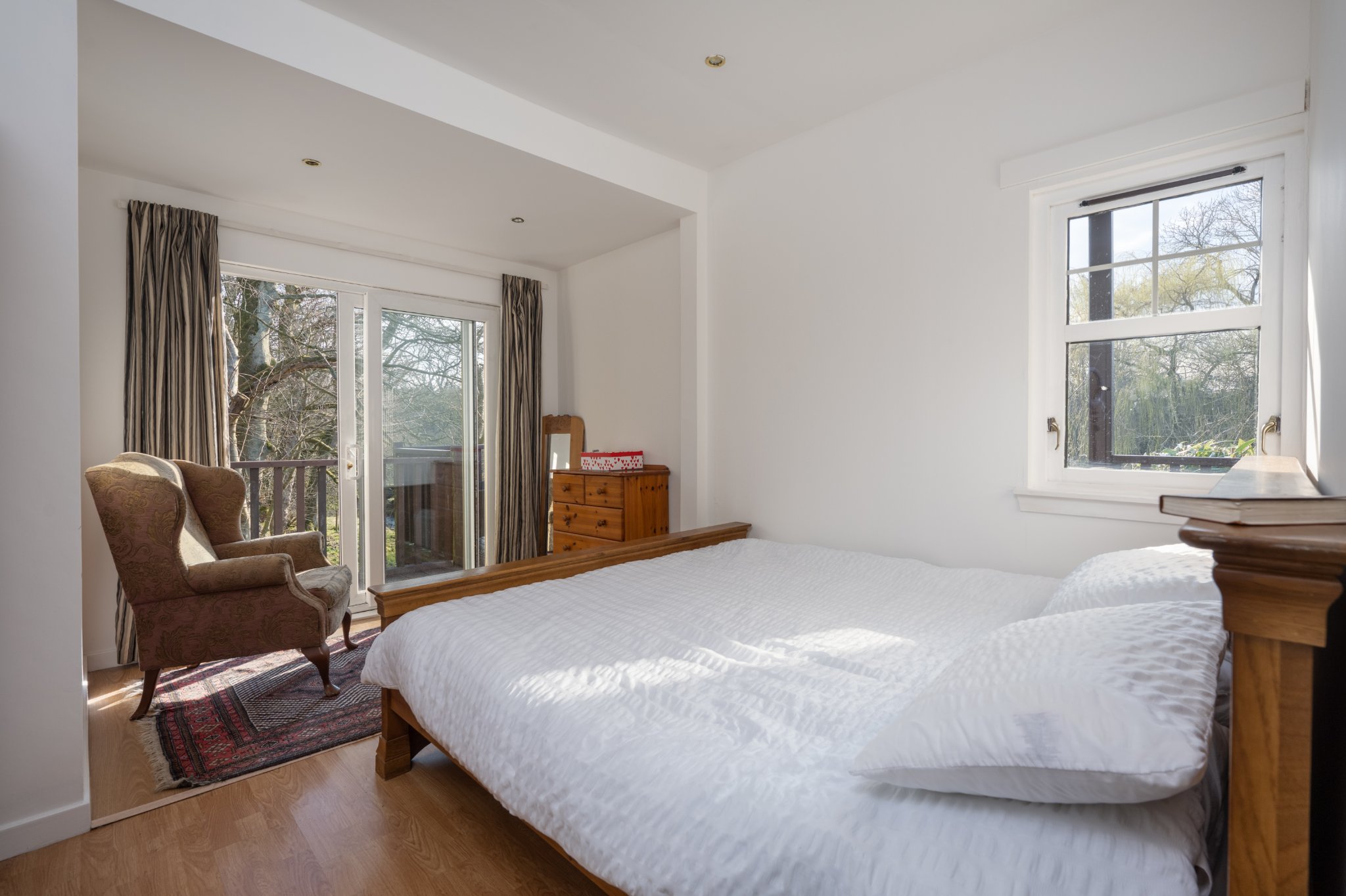 A raised timber walkway winds through a serene stretch of woodland to the south of the property, offering a peaceful retreat. Across the timber bridge lies a secluded clearing surrounded by mature trees, where the current owner has commissioned concept plans for a wellness suite complete with swimming pool and sauna (subject to all necessary consents). These architectural drawings are available on request.