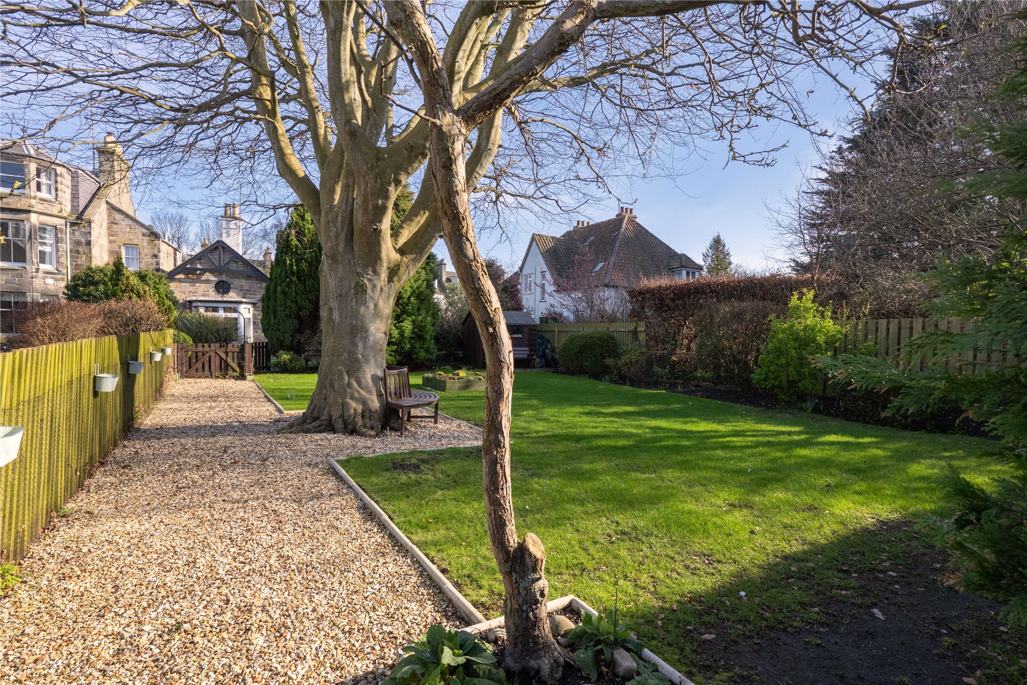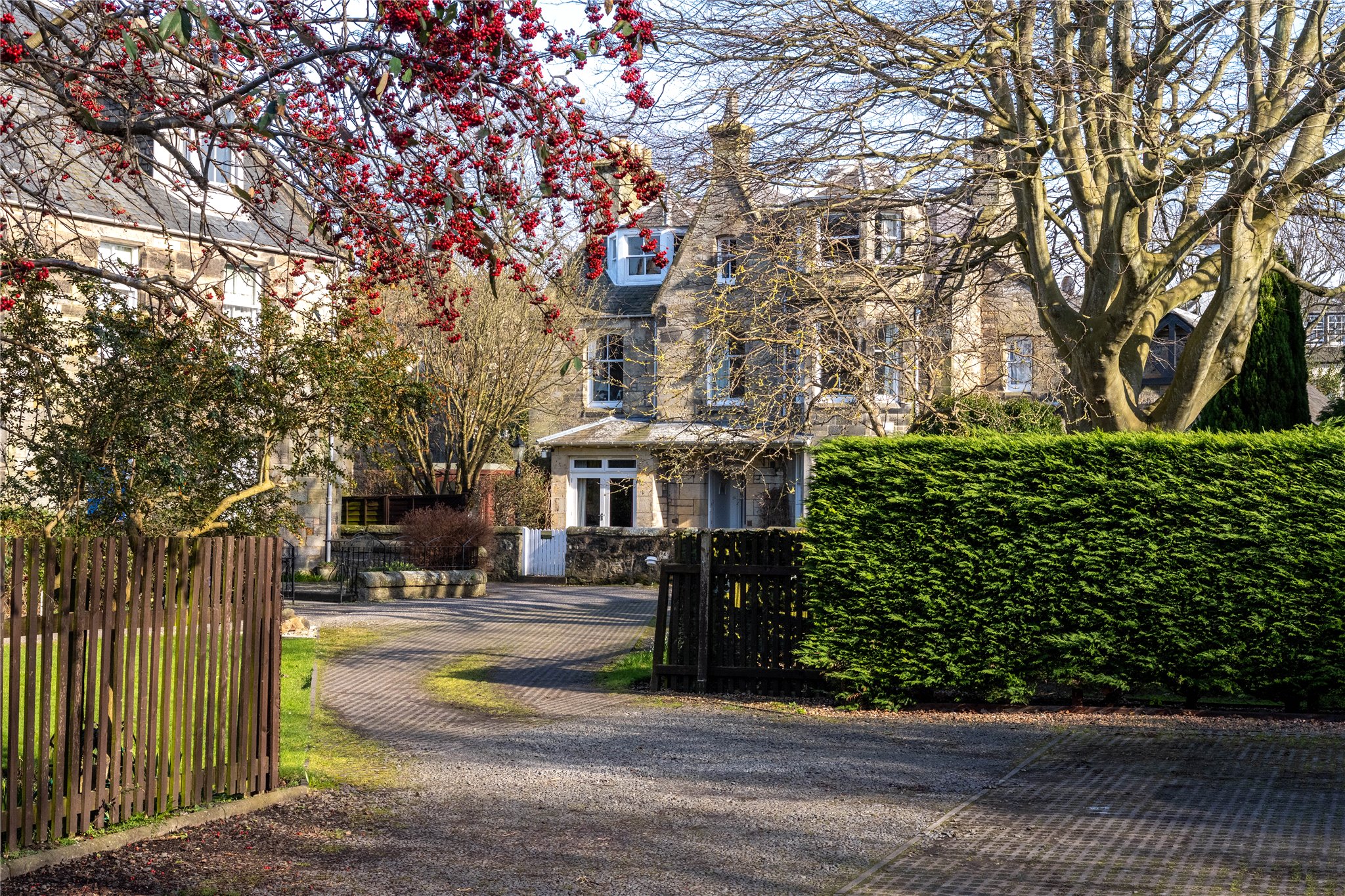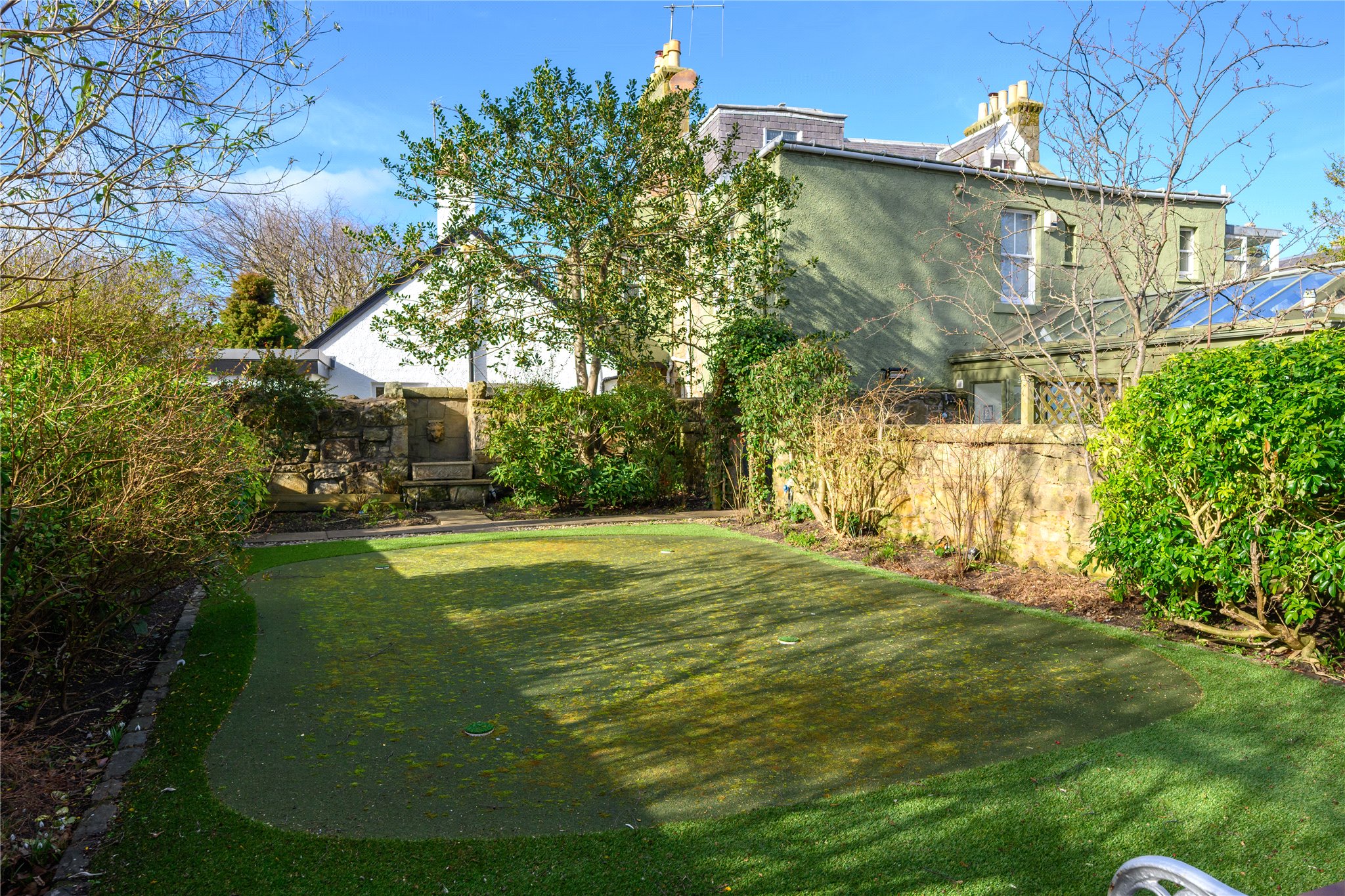 Southern Lodge is surrounded by mature and well-maintained gardens that create a tranquil, private setting rarely found so close to the centre of St Andrews. To the front, the west-facing garden is enclosed by a traditional low stone wall and accessed via a pedestrian gate. It is laid mainly to lawn with well-tended raised beds and features a charming summer house—perfect for enjoying sunny afternoons.