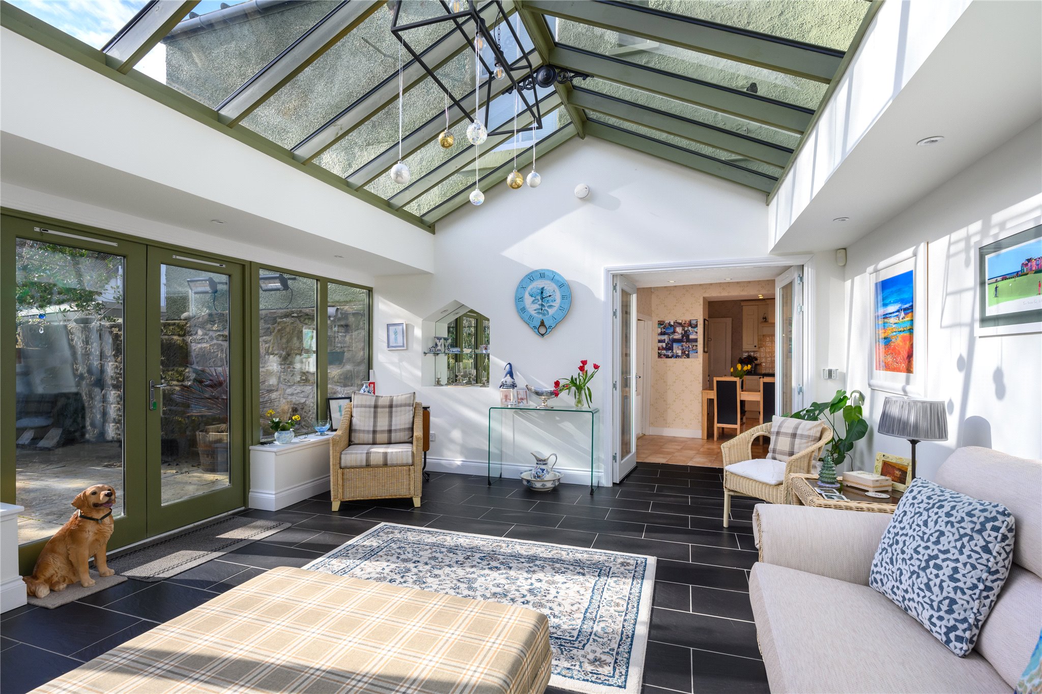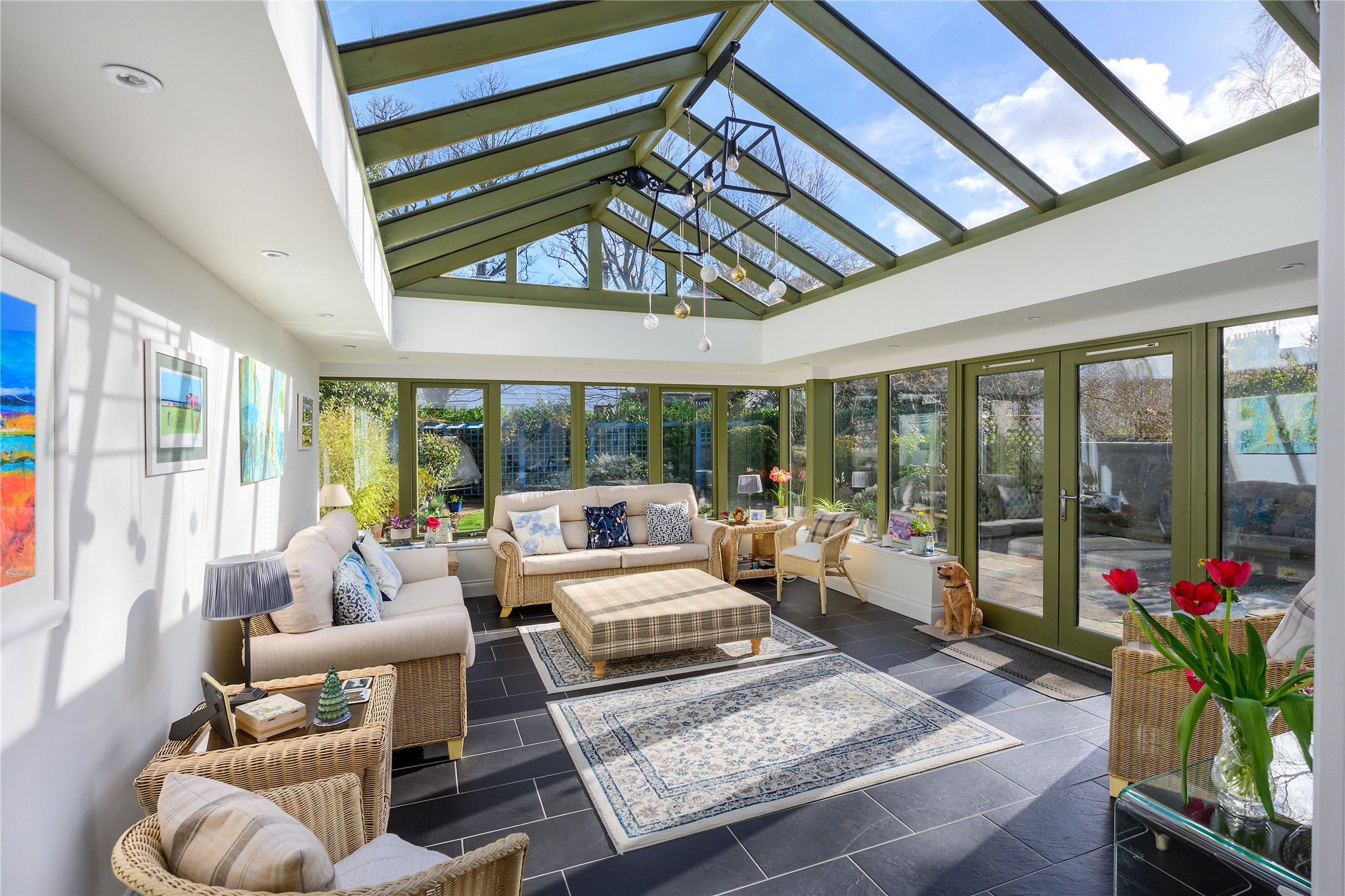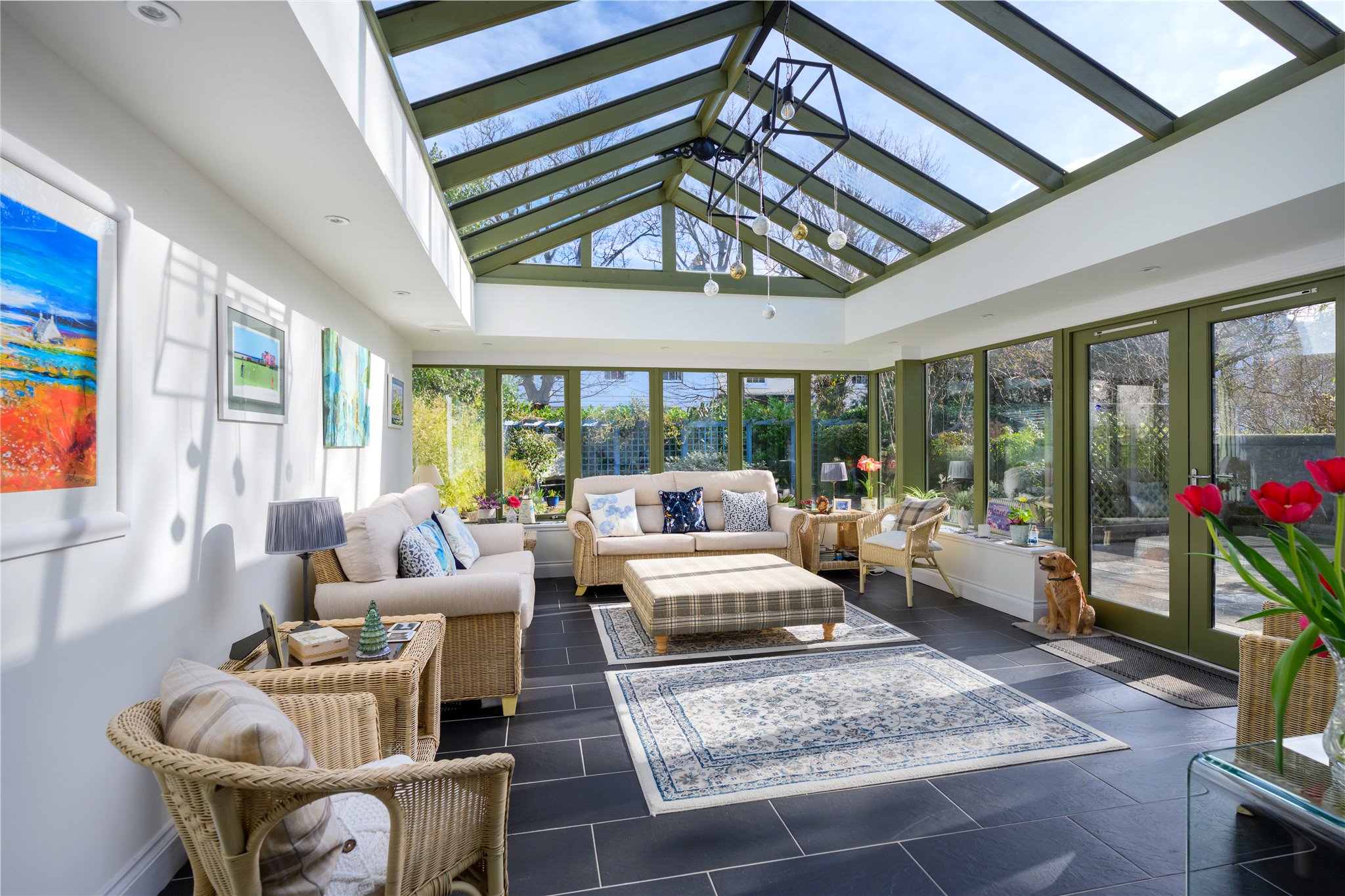 At the heart of the home is a spacious, modern kitchen that opens seamlessly into a superb conservatory, added in 2019. This light-filled space is perfect for everyday family living or entertaining throughout the year. A well-proportioned dining room sits to the front of the house, offering lovely garden views. Also on this level are two double bedrooms, each with its own en suite shower room. One of these rooms is currently styled as a snug/family room, providing a cosy retreat adjacent to the kitchen.