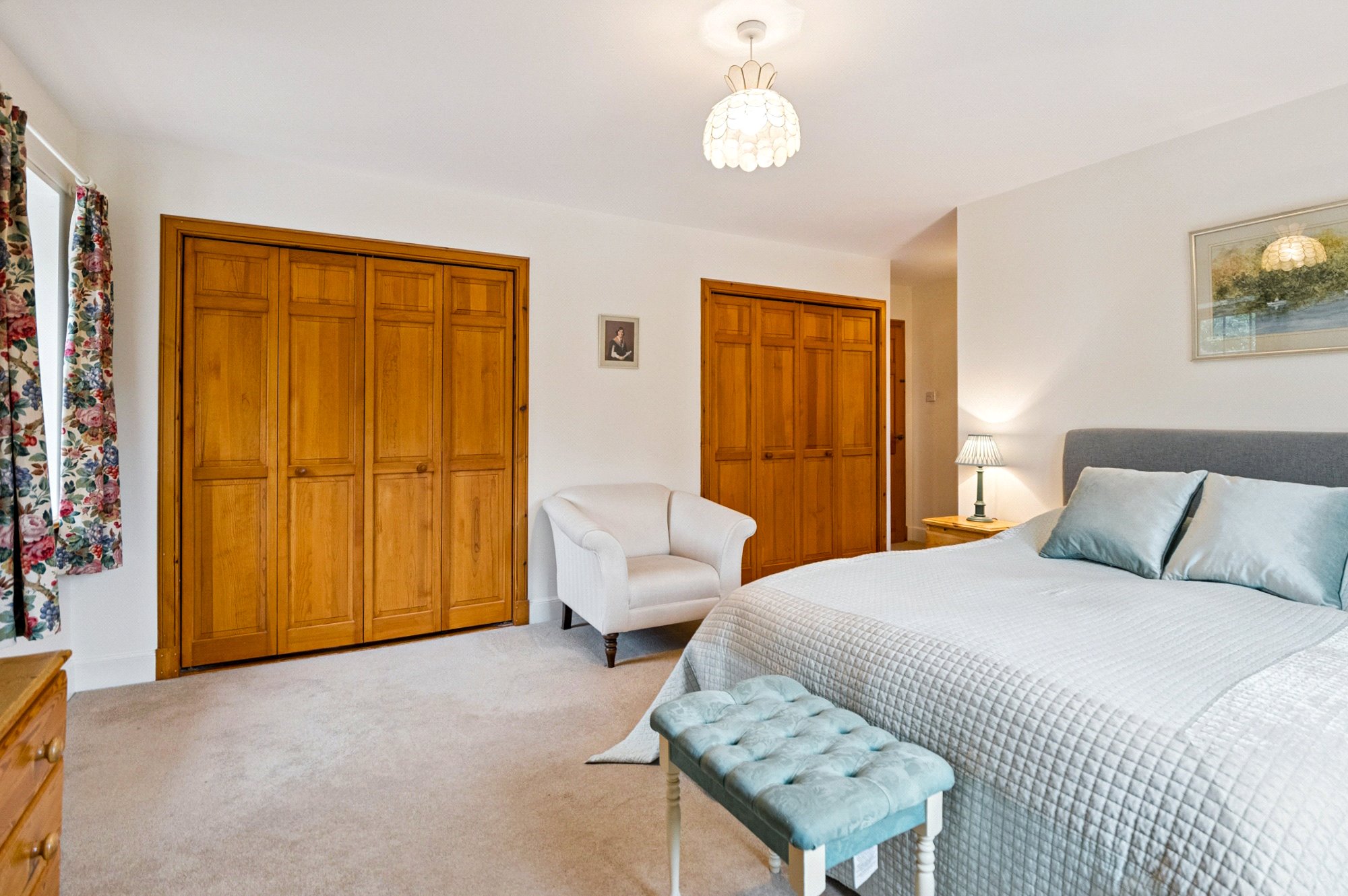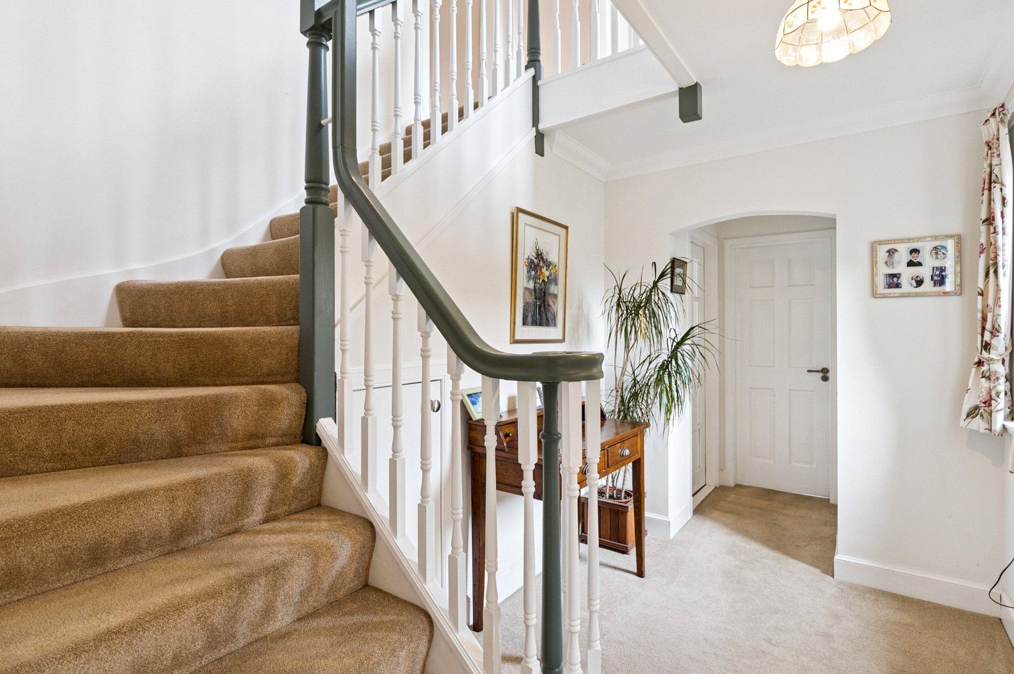 Upstairs, a bright landing leads to four well-proportioned bedrooms, each benefiting from built-in wardrobes. Bedroom one enjoys a private en-suite bathroom, while a separate family bathroom completes the accommodation, featuring a bath with an overhead shower and a glazed screen. Gas central heating and double glazing ensure year-round comfort and efficiency.