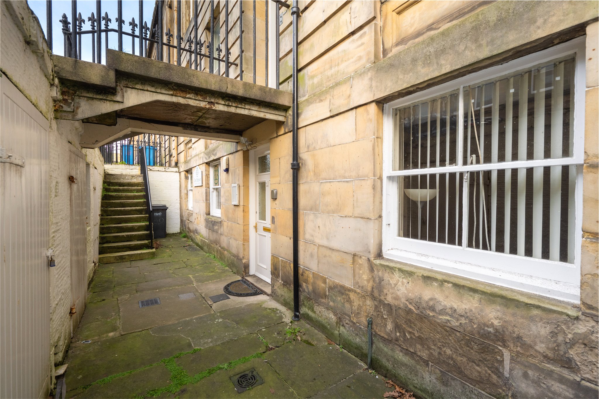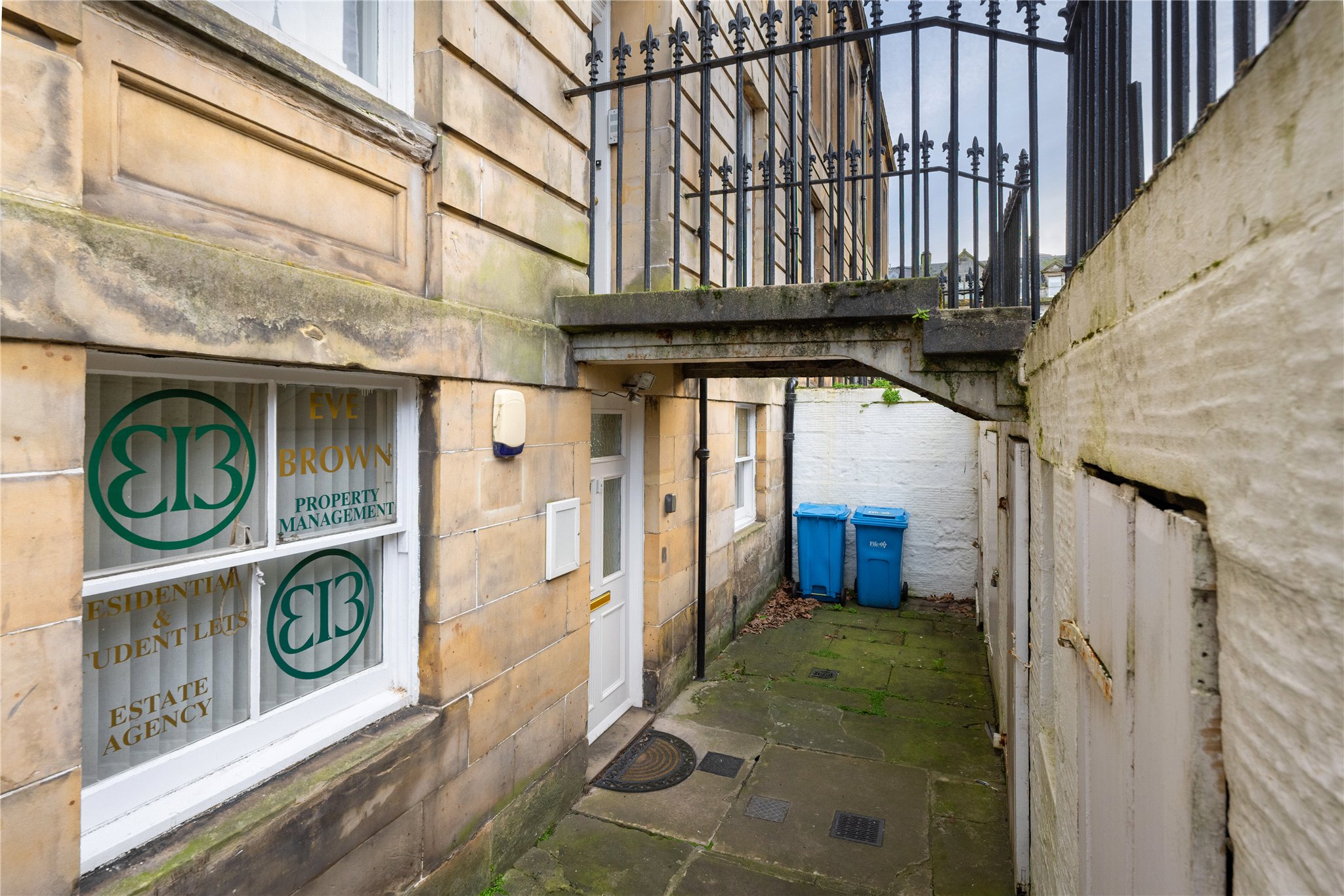 Set within a stunning terrace of mid-19th century B-listed Victorian townhouses overlooking shared central gardens and designed by acclaimed architect John Chesser, this substantial 1,500 sq ft basement property, previously used as offices, presents an exceptional opportunity. Built by Kennedy and Macintosh and lying in the St Andrews Conservation Area, the well-laid-out accommodation which could easily lend itself to residential occupation, is accessed via a west-facing courtyard. From here, the front door opens into an entrance vestibule and a welcoming carpeted hallway running the length of the property. Three generously proportioned rooms, perfect as bright and airy double bedrooms, with one featuring a walk-in wardrobe, lie on either side. You then pass a WC and a sleek shower room, complete with a hidden-cistern WC, chrome towel radiator, and washbasin built into vanity, before arriving at a spacious, carpeted east-facing reception/living room. Accessible from both the hallway and one of the front-facing rooms, this inviting space, with its tasteful neutral décor, allows for versatile furniture arrangements. The modern kitchen, conveniently adjoining the reception/living area and leading to the private rear east-facing courtyard, features light grey wall and floor units, wood-effect worktops, and LAMONA integrated appliances, including a hob and oven. Completing the layout is a fourth versatile room overlooking the rear courtyard and a practical store with built-in shelving.