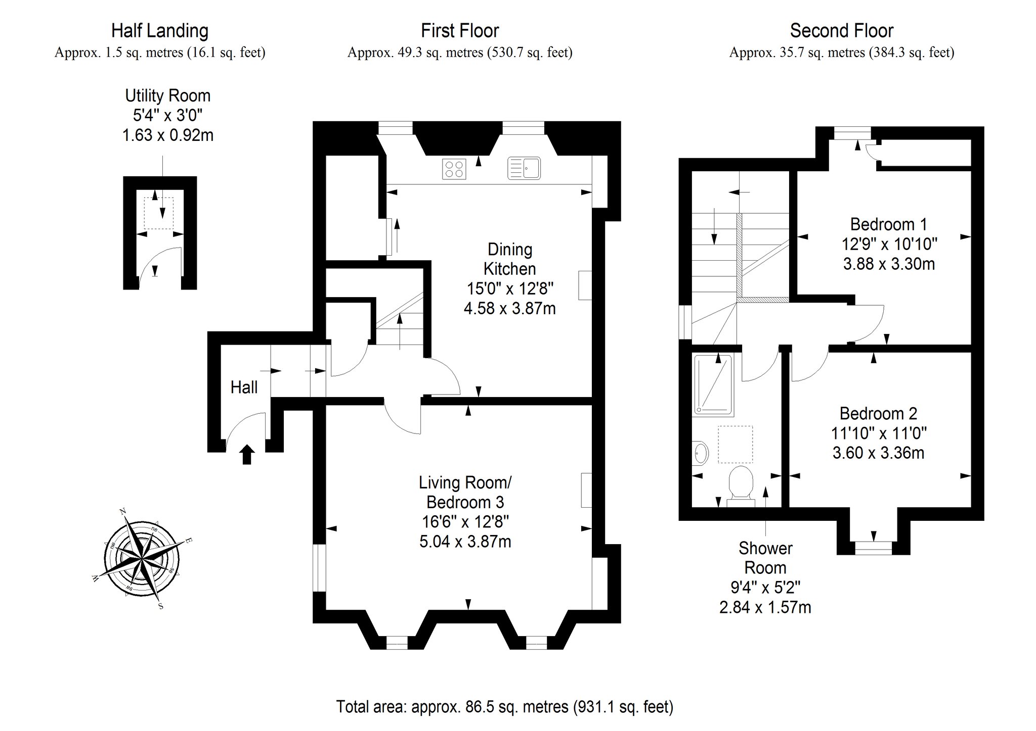 • Three double bedrooms
