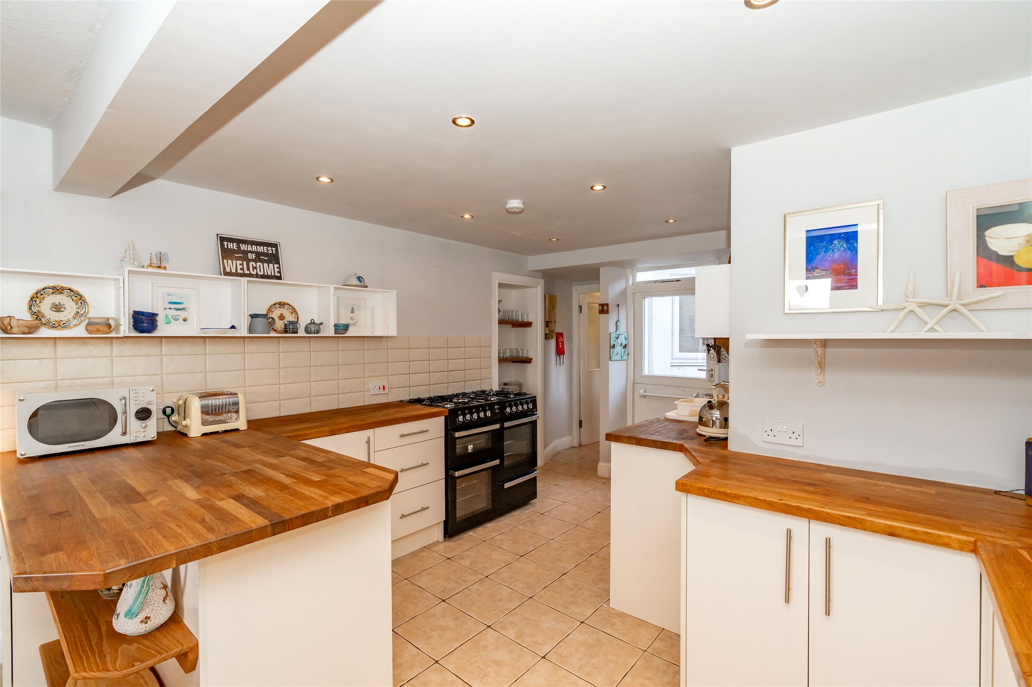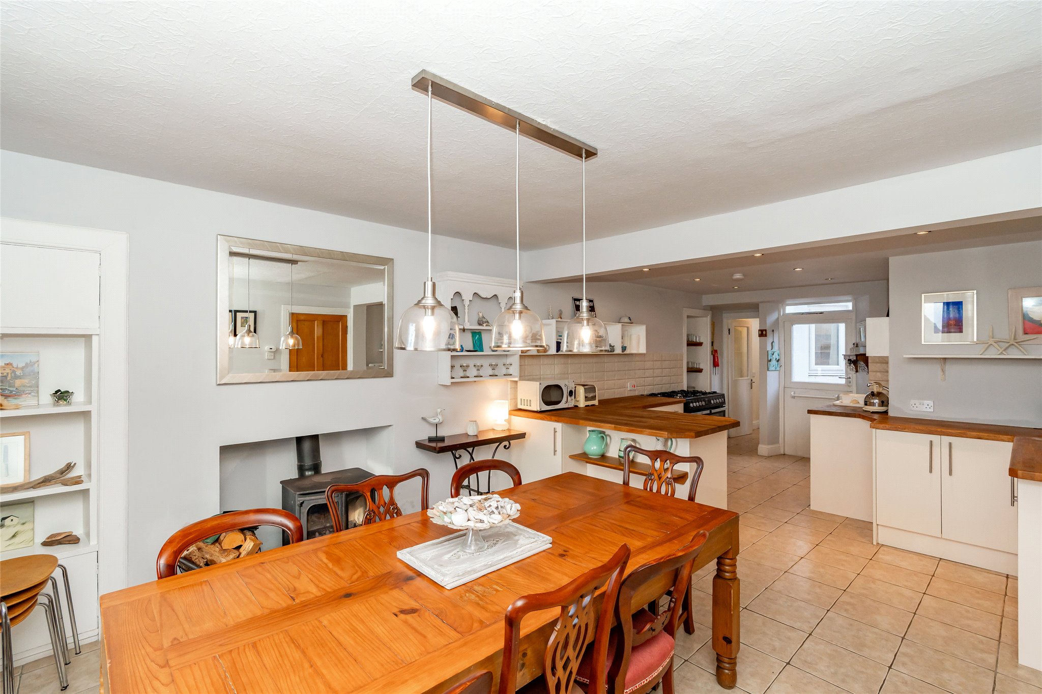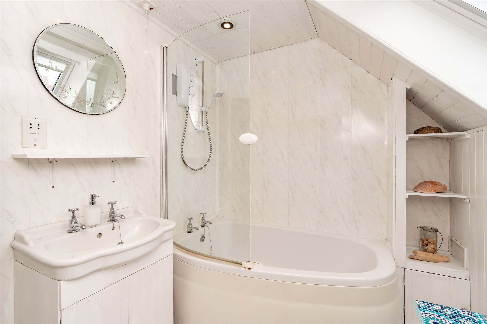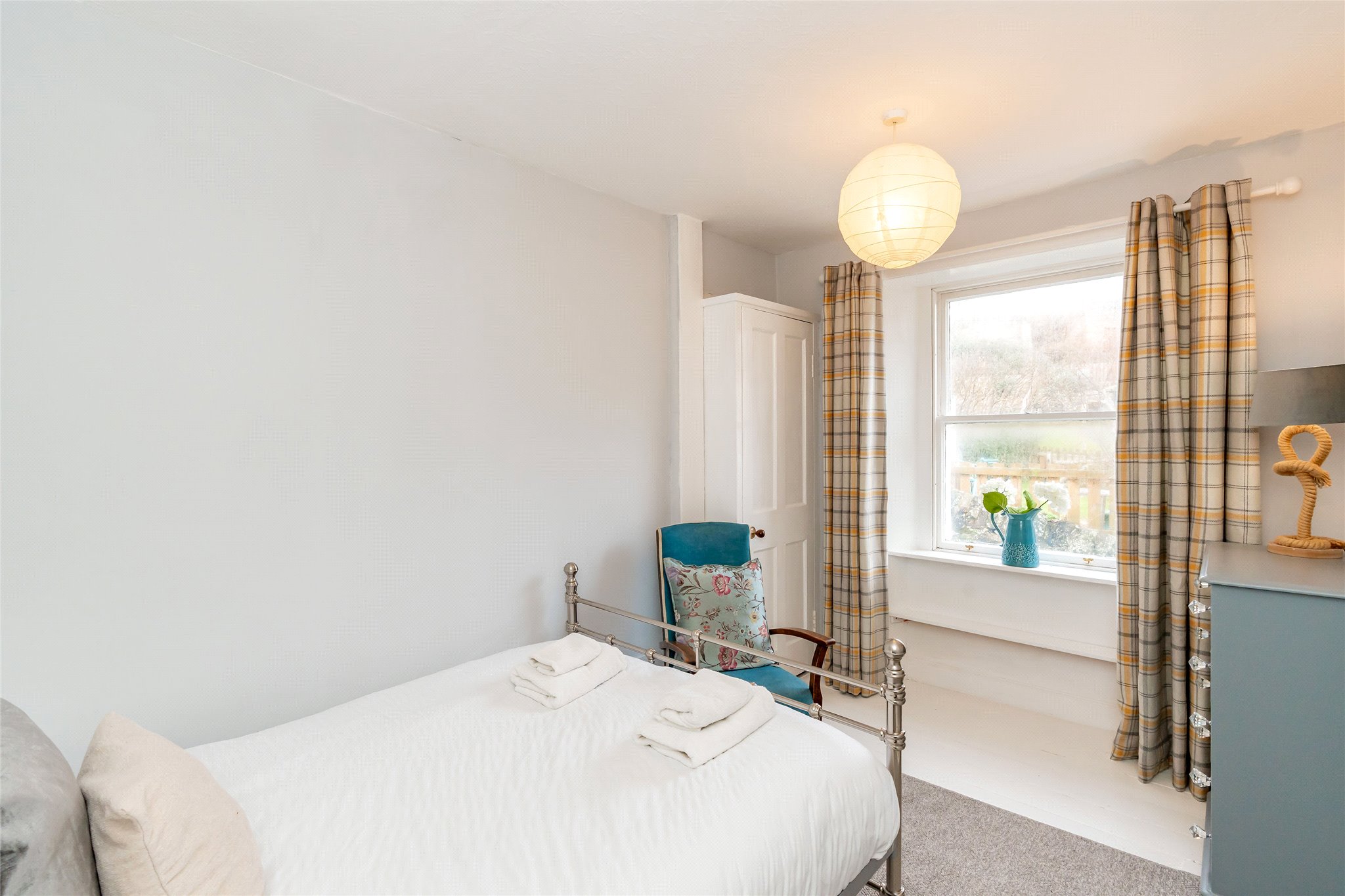 A highly established holiday let, this beautifully presented and rarely available five-bedroom seafront Pittenweem home spanning three floors, blends comfort, style, and timeless charm with breathtaking views. Lying behind a low stone seawall the property immediately captivates with its outstanding position and outlook. Stepping inside, you are welcomed by a light and airy entrance vestibule and hallway featuring a crisp décor and leading out to the rear garden. To the right, a south-east-facing living room overlooking the sea exudes a wonderful feeling of warmth and cosiness thanks to its décor of wooden flooring, soft neutral wall finishes, and a living flame fireplace nestled in an oak mantle. Opposite the dining kitchen impresses with its generous proportions and high-quality finishes. Opening to the garden from the kitchen and with an outlook across the coastline from the dining area, it is very much at the heart of the home and its thoughtful design and log-burning stove help to differentiate the two spaces. Predominantly boasting white base units, a metro-tiled splashback, and bespoke solid oak worktops, the kitchen remains streamlined with a charming rustic quality, enhanced by the presence of an integrated range cooker. An adjoining utility provides further storage. Completing the ground floor layout is a luxurious, classically-styled bathroom with marble-effect floor tiles providing the backdrop to an indulgent freestanding roll-top bath, rainfall shower enclosure, WC, washbasin, and chrome towel radiator. A traditional whitewashed box staircase ushers you to the first floor and a stunning south-east-facing living room. Twin windows frame spectacular sea views and flood the space with light. Adorned with an elegant ceiling rose and a cast iron fireplace set in a white mantle it is the perfect place to relax as you take in the natural landscape. On this floor lie three light and airy bedrooms, two double and a single, each enjoying a sophisticated minimalist aesthetic. Sea facing, the double bedroom to the front, features a focal white mantlepiece and a ceiling rose which add to its charm, whilst a second bedroom overlooking the garden, boasts a focal oak mantlepiece with ornate decoration above. Ascending to the second floor, a magnificent principal double bedroom enjoys a refined interior design along with an inviting seating area and a striking white feature sandstone mantlepiece. Along with the second double bedroom on this floor, it benefits from Velux windows offering a captivating aspect and ensuring an abundance of natural light. They share access to a well-appointed bathroom with a bath with a wall-mounted shower, WC, and washbasin built into vanity.