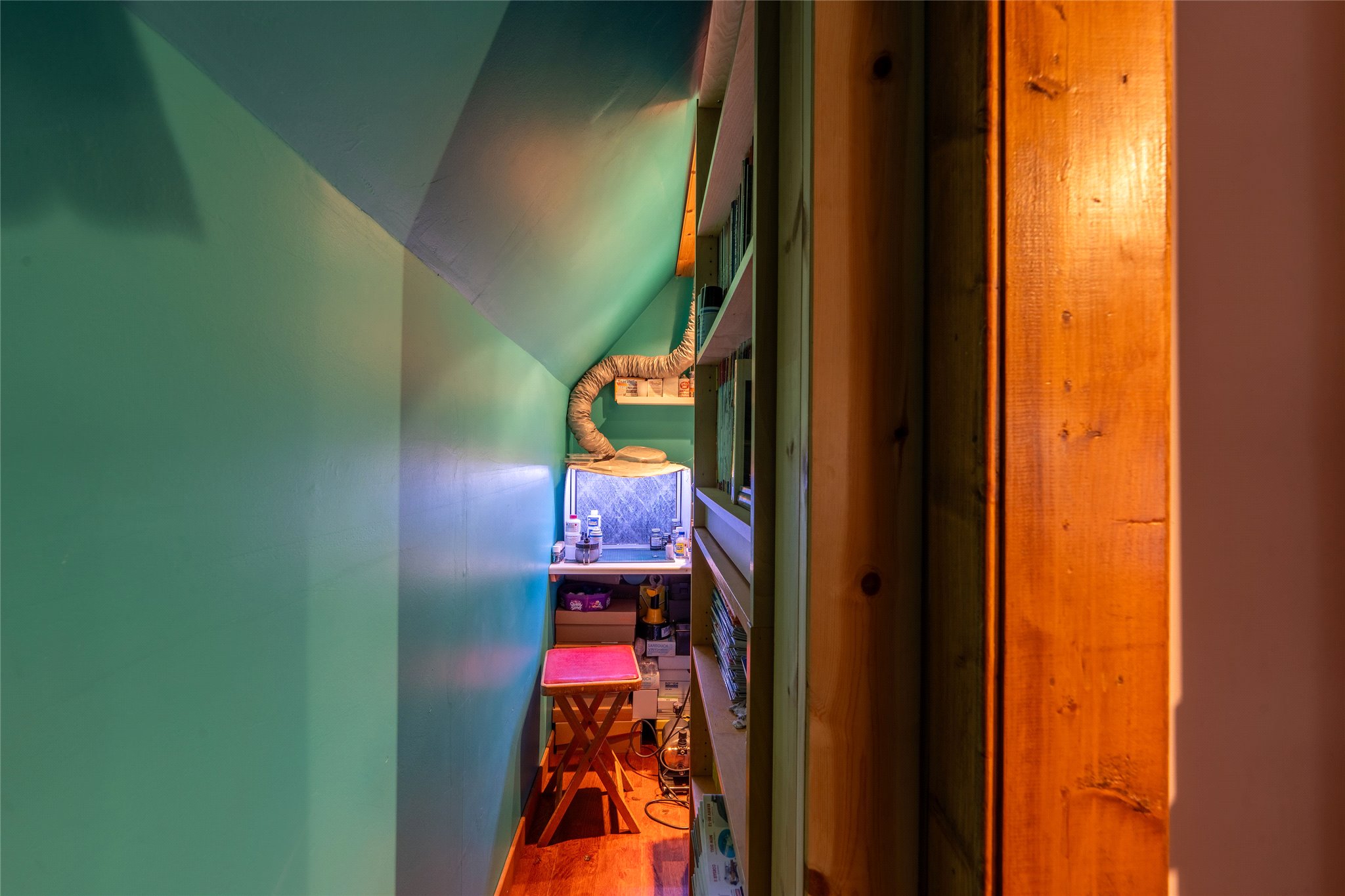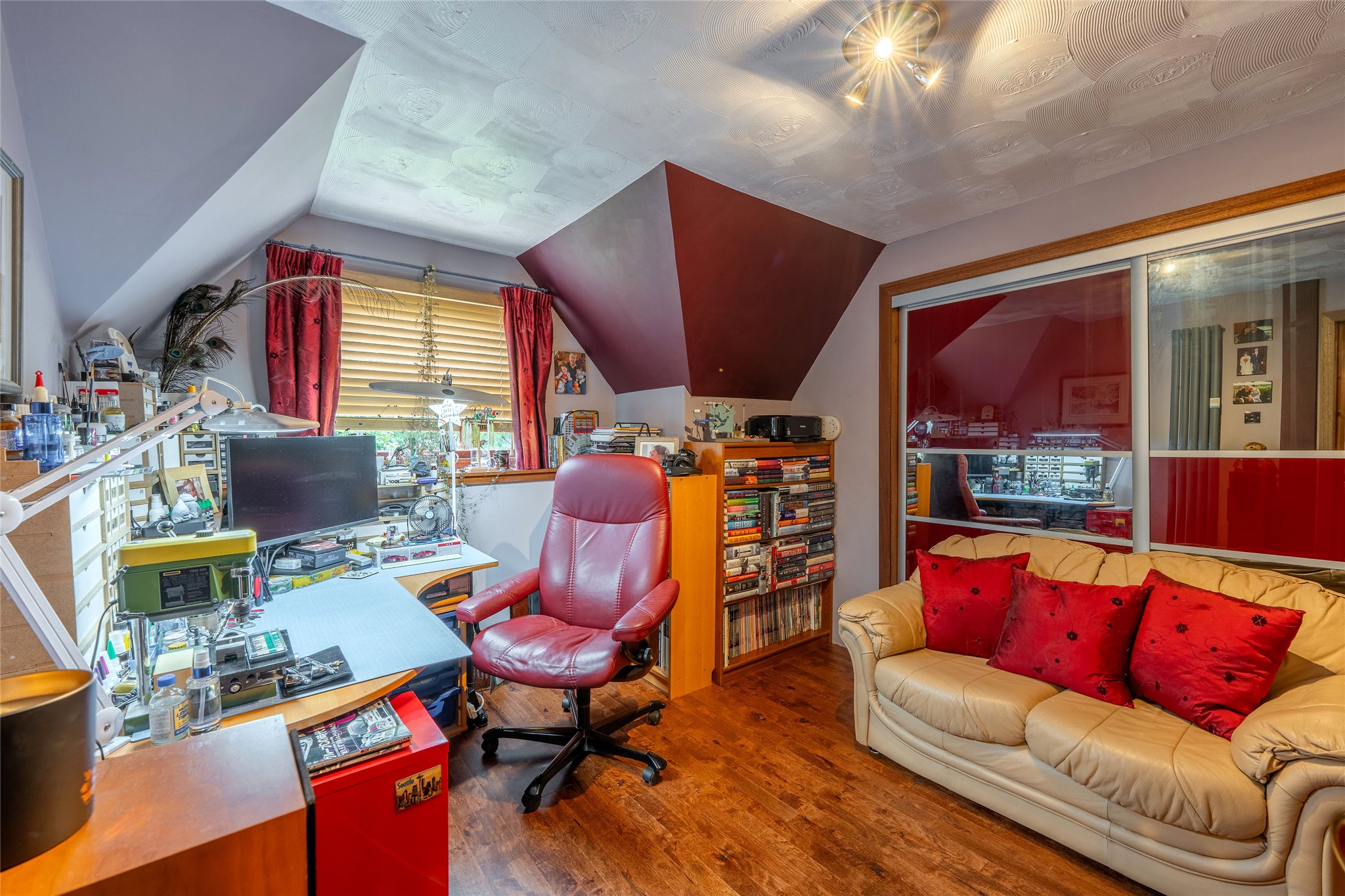 Additionally, a large, floored attic with a Velux window and power supply is accessed via a fixed timber ladder, providing excellent storage space.