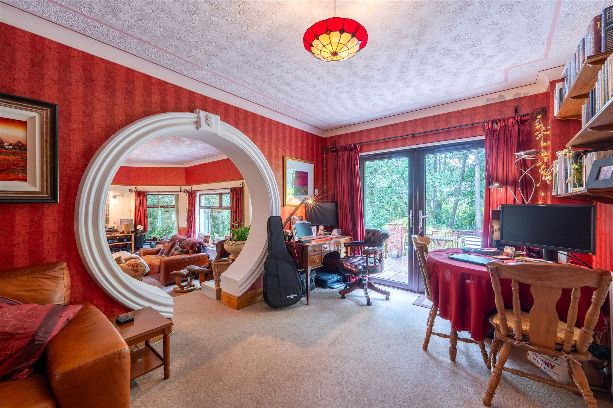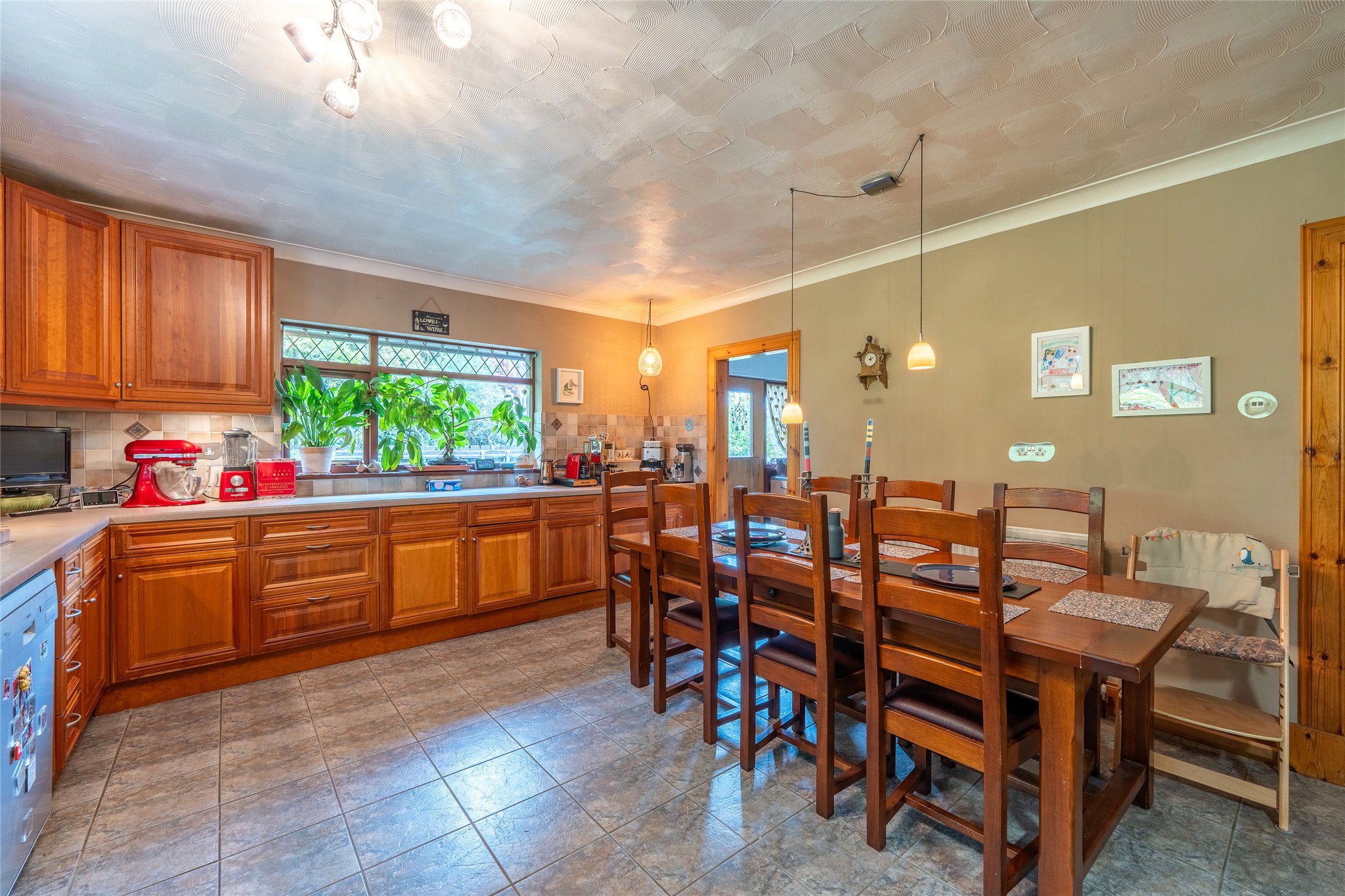 Situated in a quiet cul-de-sac in the desirable Finglassie area of South Glenrothes, this four-bedroom detached home offers bright, versatile, and spacious accommodation perfect for a growing or established family. A welcoming entrance vestibule, complete with a convenient WC, and a warm carpeted hallway sets the tone for this charming home. From here you enter a versatile dining room with French doors to the garden, a unique open circular doorway then draws you into a striking east and west-facing living room. Almost hexagonal in shape, this impressive space is bathed in natural light and enjoys picturesque views to the front and rear. Rich, warm tones, soft carpeting, and an electric fire-effect fireplace combine to create a wonderfully cosy and inviting atmosphere. Returning to the dining room, you enter a generously proportioned kitchen, thoughtfully designed in a U-shape to maximise upon the space and allow for informal day-to-day dining. Featuring classic shaker-style wall and floor cabinetry, sage green marble effect worktops, and a tiled splashback, a particular feature is the Rangemaster cooker set beneath an extractor hood. Adjacent to the kitchen, a separate utility room provides garden access and leads directly into the integral double garage, offering excellent additional storage. Upstairs, the spacious principal double bedroom is a peaceful retreat, enhanced by a large and stylish en-suite shower room complete with a WC and washbasin. Three further generously sized double bedrooms—one featuring a dressing room with a sink—offer flexibility to suit a range of needs, whether as guest rooms, a home office, or children's bedrooms. They share a contemporary family bathroom, complete with a Jacuzzi bath, countertop washbasin, and WC.