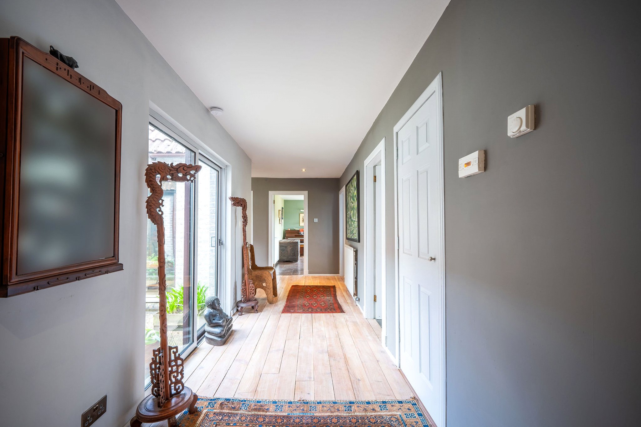 Entrance hallway, vestibule, sitting room, dining room, living room, kitchen, utility, six bedrooms, shower room, bathroom