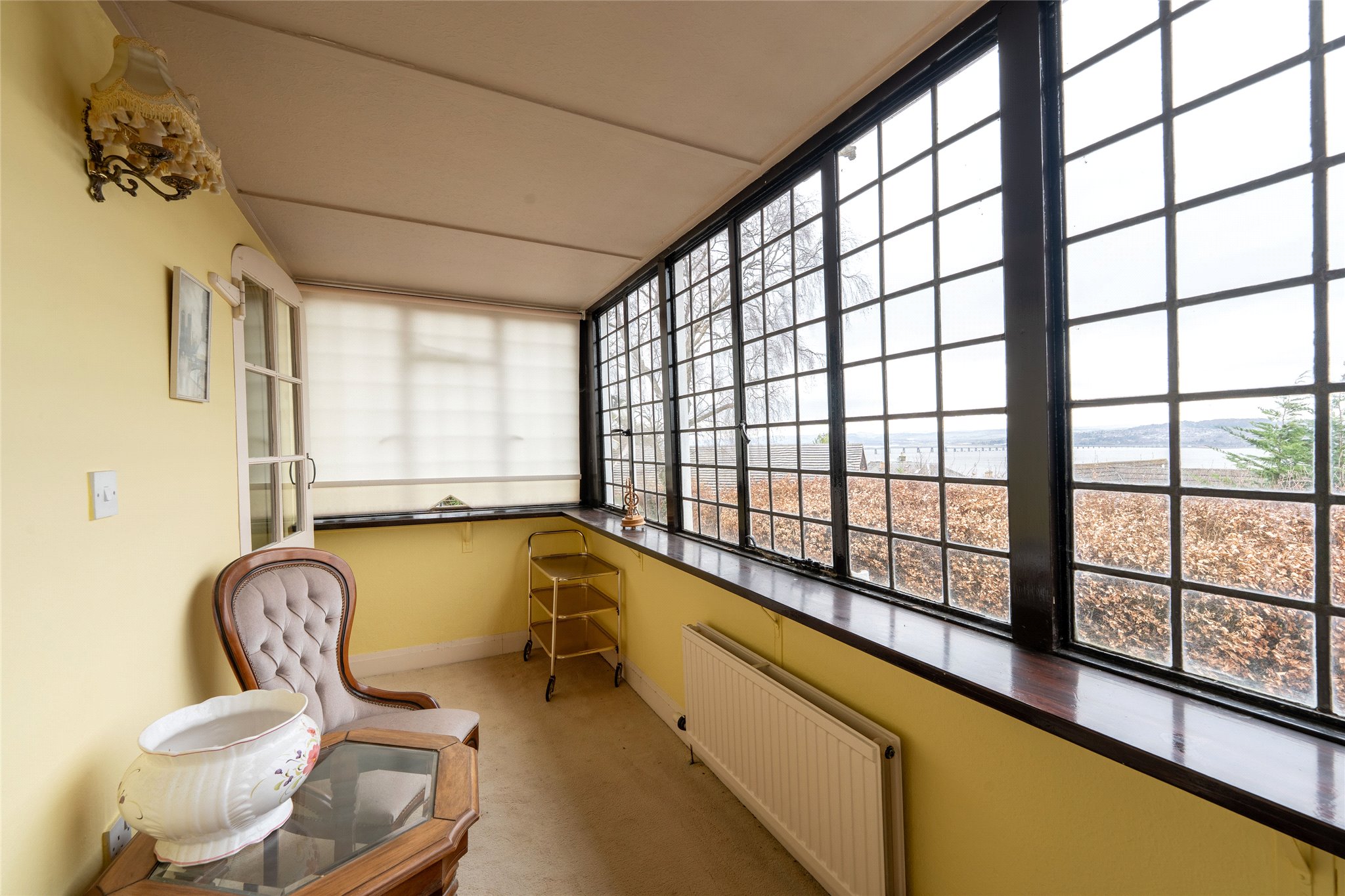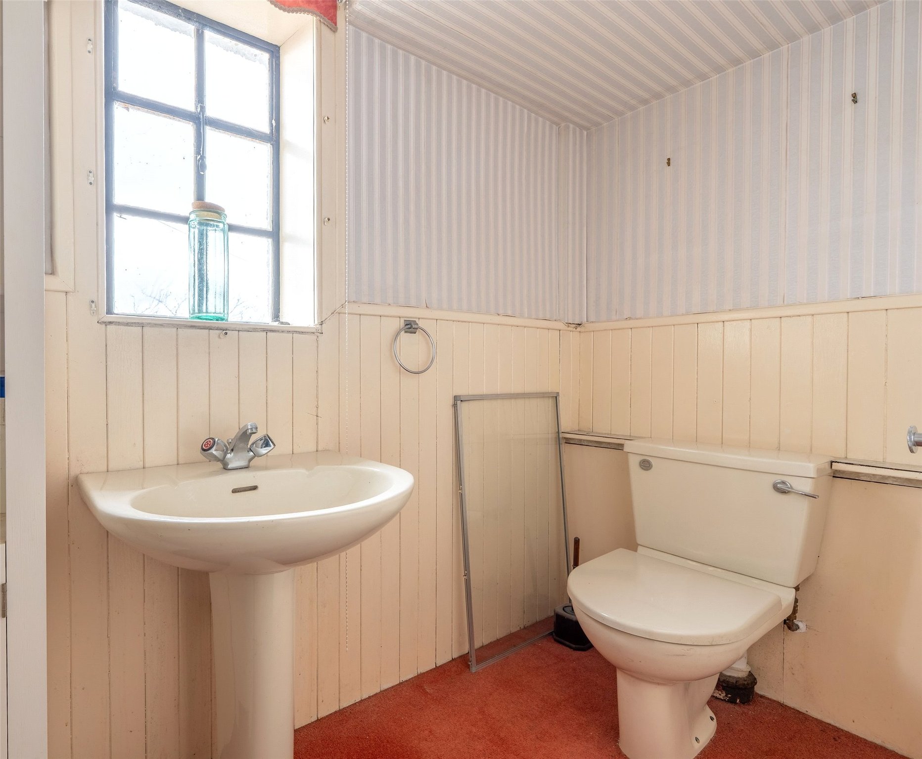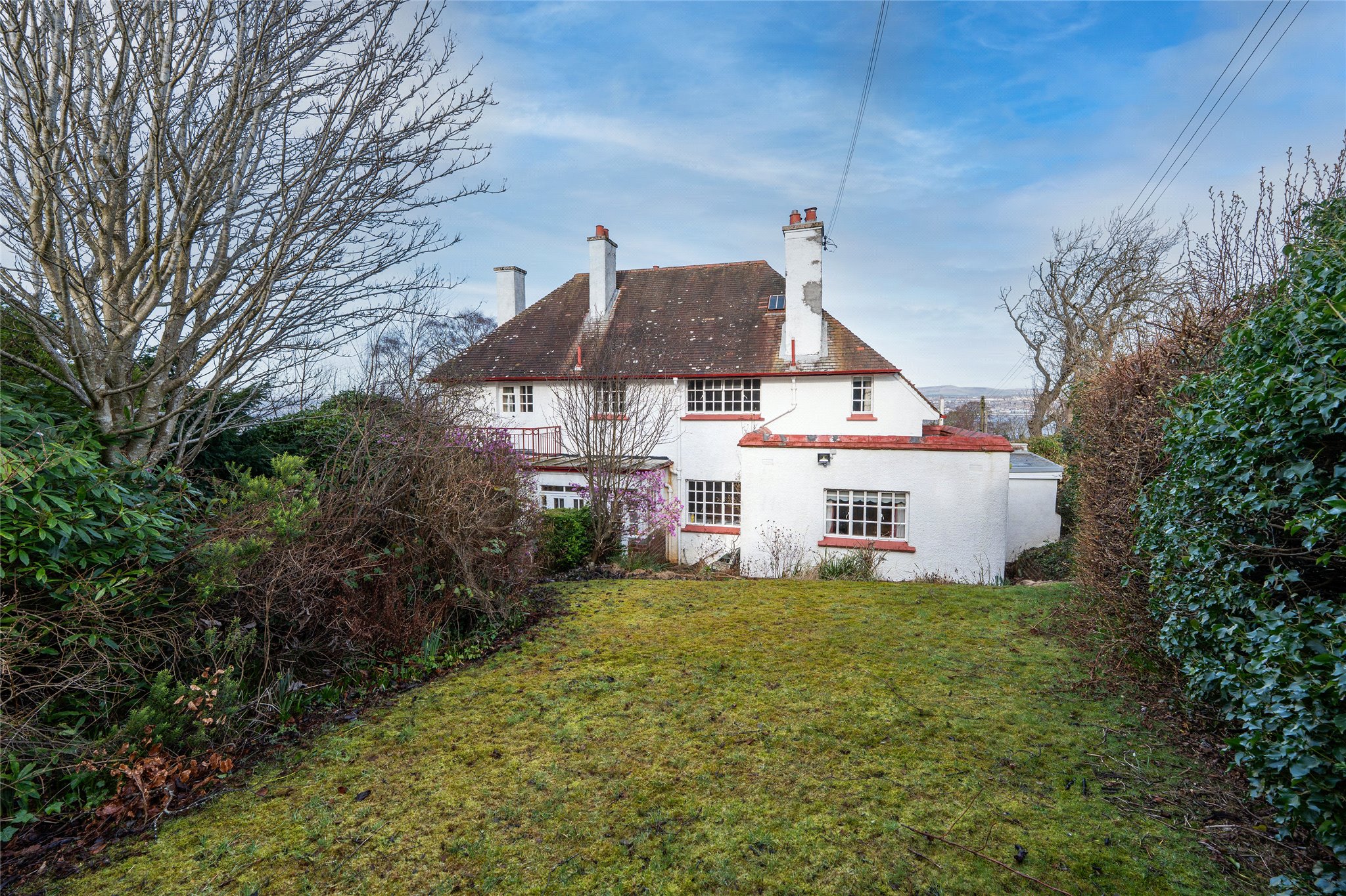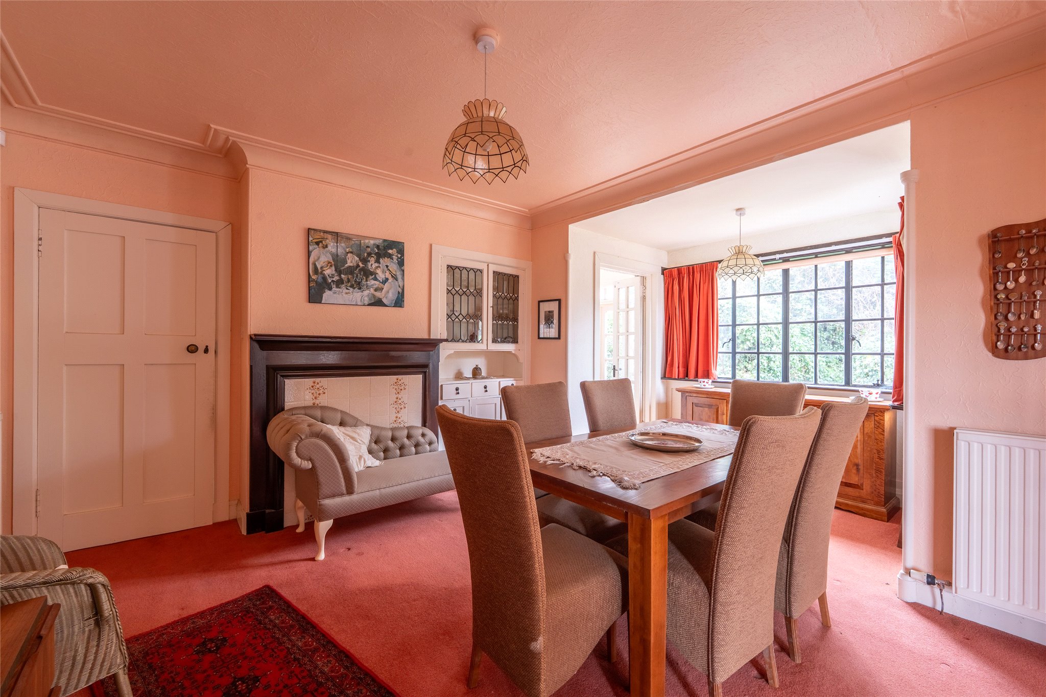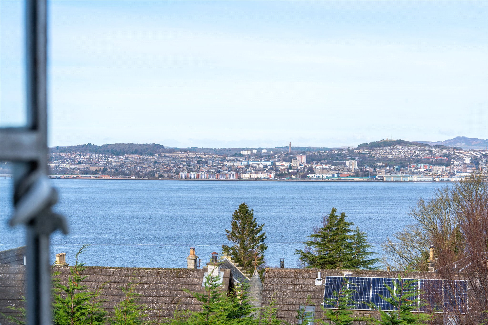 Built in 1925 for James Sturrock of Forebank Dye Works in Dundee and now requiring modernisation, this rarely available five-bedroom Arts and Crafts home in Newport-on-Tay offers a unique opportunity to create a stunning family residence. Characterised by generous proportions, versatile interiors, and timeless architectural charm as well as breathtaking River Tay views, the property is nestled within mature gardens, promising an idyllic setting. A gravel driveway guides you to the front door, where you step into an inviting entrance foyer and hallway. To the right, a west-facing living room, bathed in natural light, from a curved bay window features a rich mahogany open fireplace as its focal point whilst carpeting and a soft colour palette enhance its appeal. Warm and welcoming it then flows seamlessly into an adjoining carpeted sunroom, where cottage-style multi-pane windows frame captivating views of the River Tay, making it an ideal spot to unwind. The home’s impressive layout continues with a dual-aspect sitting room again resplendent with cottage-style multi-pane windows offering tranquil water views. Featuring a magnificent ornate fireplace, it is perfect for cosy evenings or entertaining and leads via steps into a bright, formal dining room which in turn guides you to a south-east-facing conservatory opening to the garden. Moving into the kitchen, oak-effect wall and floor units, a white tiled splashback, and smooth white worktops sit alongside an oven and extractor hood. South-east-facing and boasting a sizeable layout it allows for dining and relaxed family gatherings. Completing the ground floor are two convenient WCs, an office, and a bedroom/spacious study, perfect for home working. A vestibule with built-in storage also offers garden access. Ascending the carpeted staircase, a light and airy landing featuring built-in storage leads to four/five well-presented bedrooms: three generously proportioned doubles and two comfortable singles. Offering excellent versatility depending on specific needs, one of the singles could be utilised as a study and one of the doubles is currently styled as a light-filled south-east-facing family room. All bedrooms share access to a well-appointed modern bathroom, featuring a WC, washbasin, bath with wall-mounted shower, and a sleek chrome towel radiator.
