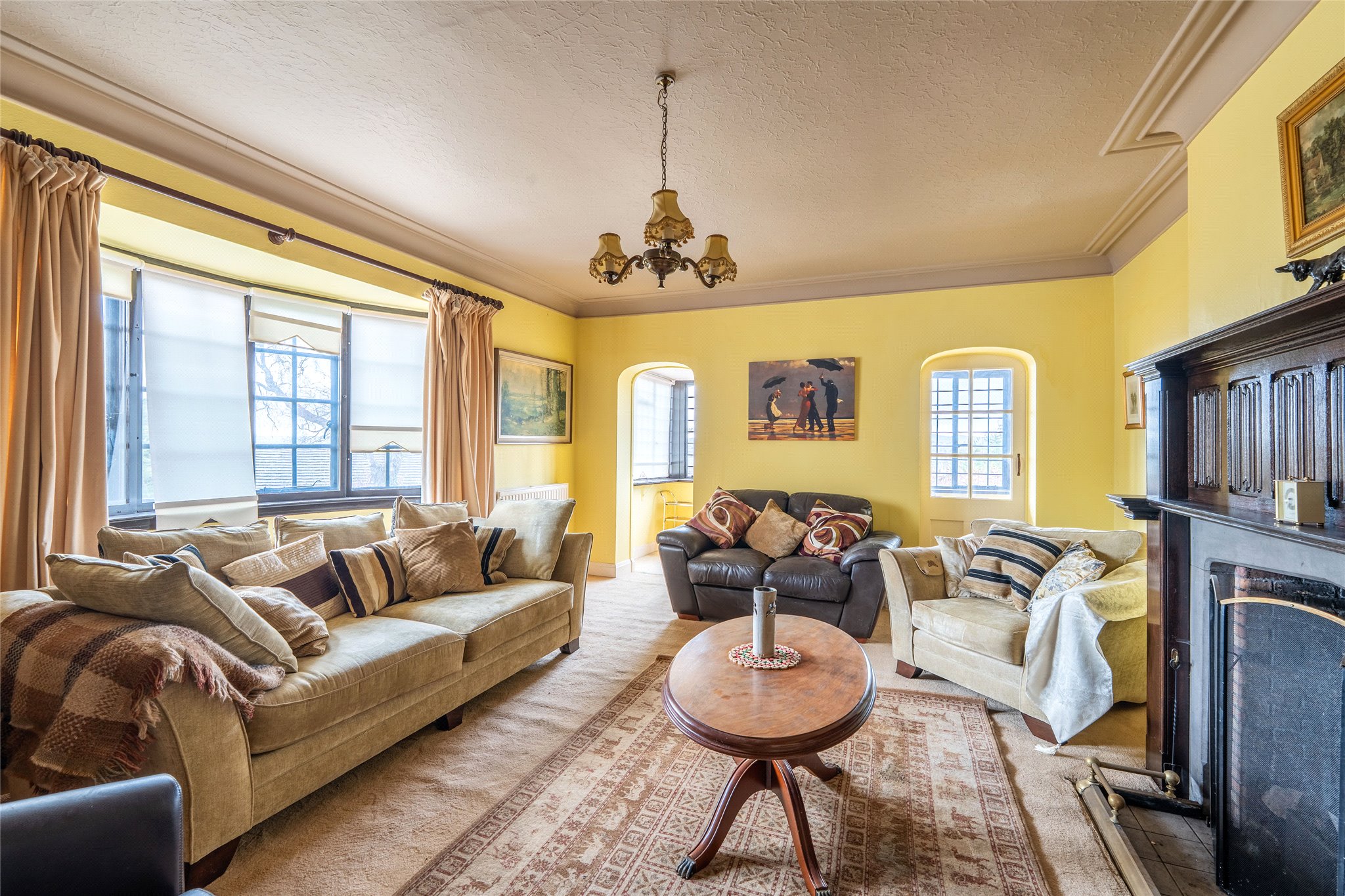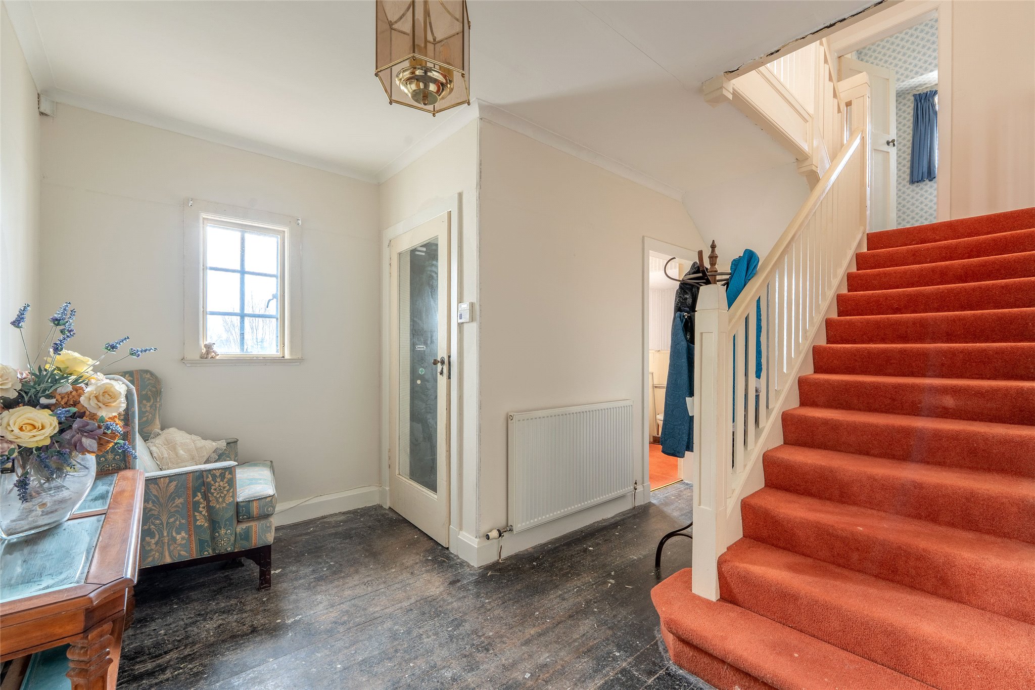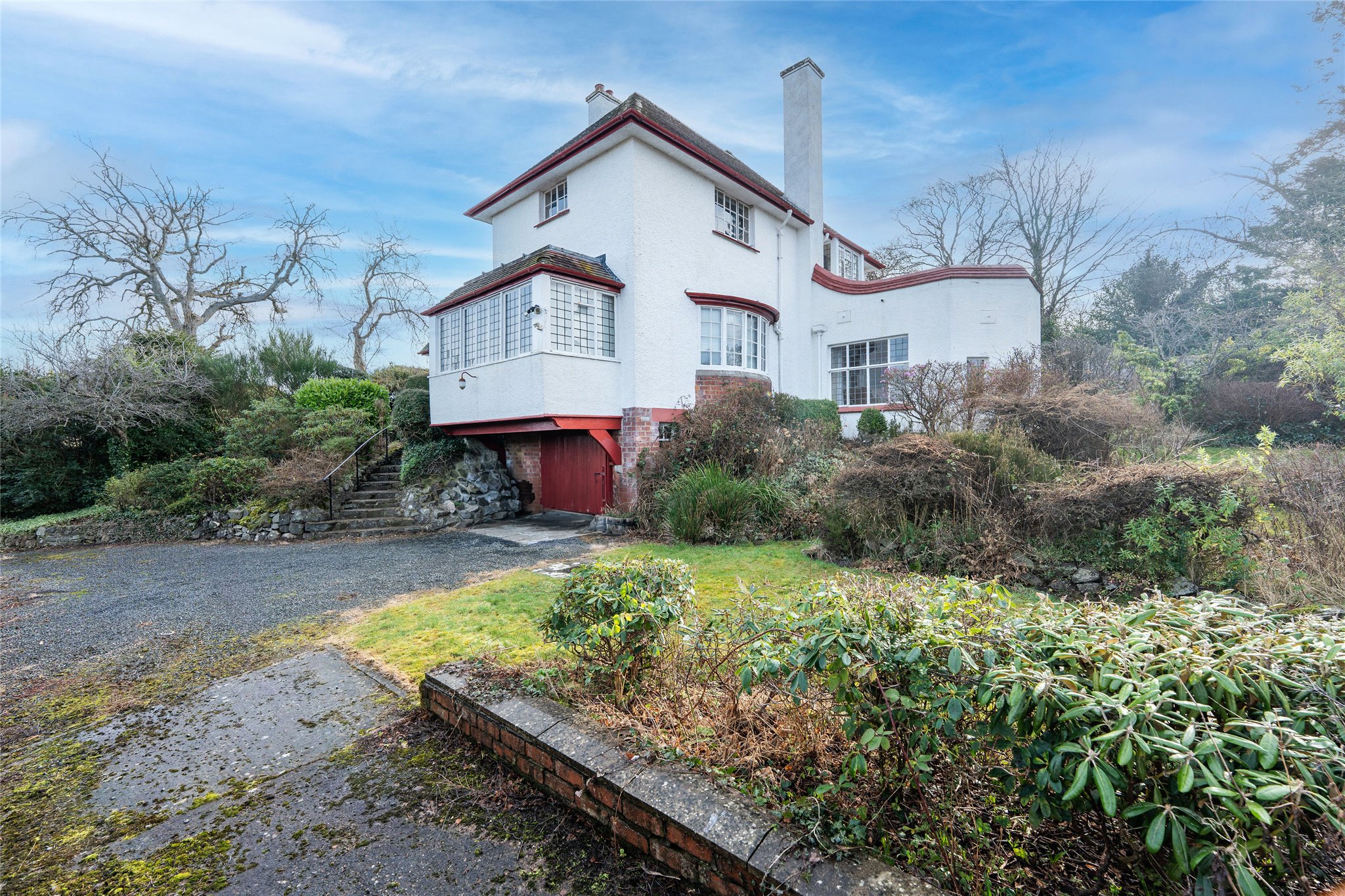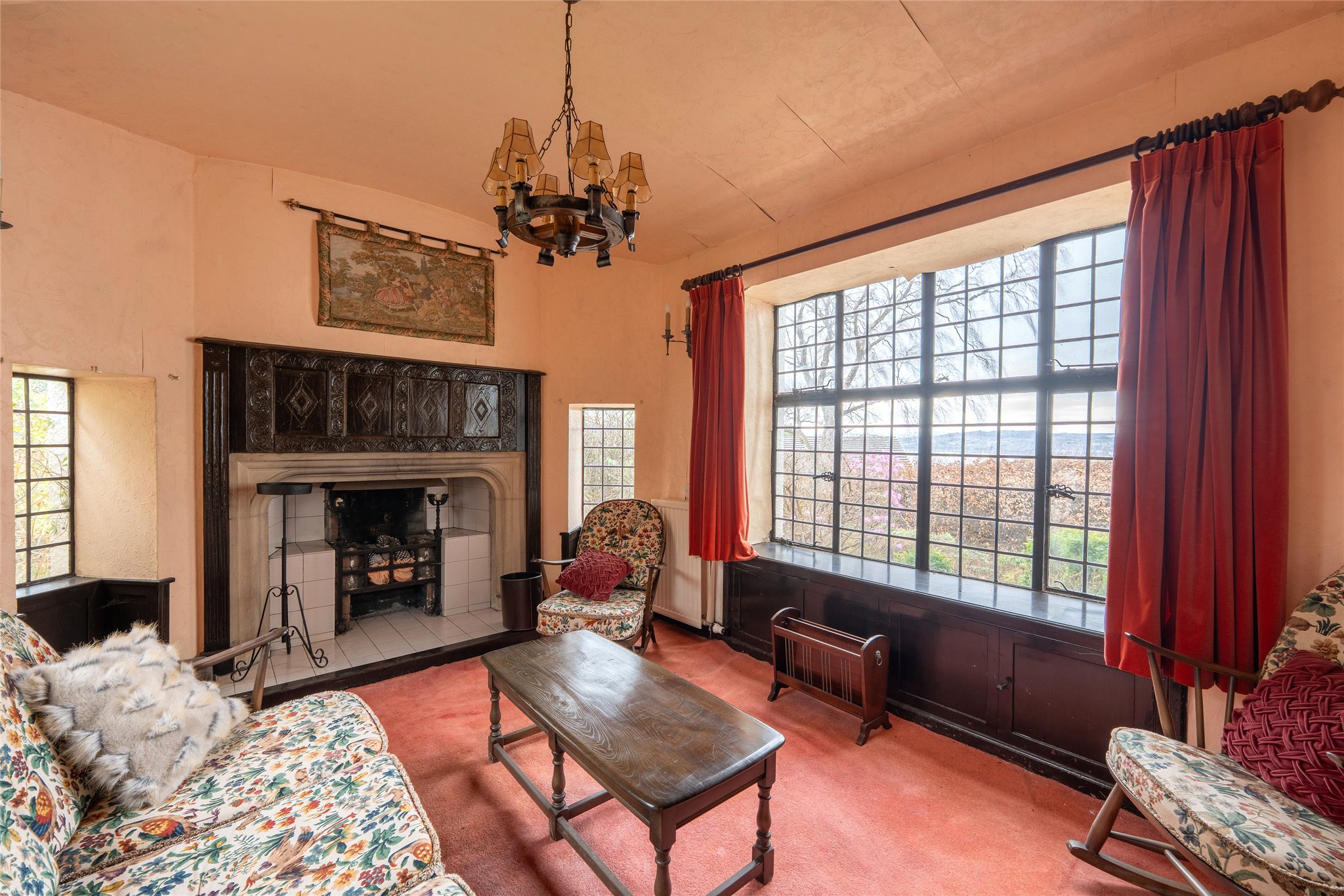 Built in 1925 for James Sturrock of Forebank Dye Works in Dundee and now requiring modernisation, this rarely available five-bedroom Arts and Crafts home in Newport-on-Tay offers a unique opportunity to create a stunning family residence. Characterised by generous proportions, versatile interiors, and timeless architectural charm as well as breathtaking River Tay views, the property is nestled within mature gardens, promising an idyllic setting. A gravel driveway guides you to the front door, where you step into an inviting entrance foyer and hallway. To the right, a west-facing living room, bathed in natural light, from a curved bay window features a rich mahogany open fireplace as its focal point whilst carpeting and a soft colour palette enhance its appeal. Warm and welcoming it then flows seamlessly into an adjoining carpeted sunroom, where cottage-style multi-pane windows frame captivating views of the River Tay, making it an ideal spot to unwind. The home’s impressive layout continues with a dual-aspect sitting room again resplendent with cottage-style multi-pane windows offering tranquil water views. Featuring a magnificent ornate fireplace, it is perfect for cosy evenings or entertaining and leads via steps into a bright, formal dining room which in turn guides you to a south-east-facing conservatory opening to the garden. Moving into the kitchen, oak-effect wall and floor units, a white tiled splashback, and smooth white worktops sit alongside an oven and extractor hood. South-east-facing and boasting a sizeable layout it allows for dining and relaxed family gatherings. Completing the ground floor are two convenient WCs, an office, and a bedroom/spacious study, perfect for home working. A vestibule with built-in storage also offers garden access. Ascending the carpeted staircase, a light and airy landing featuring built-in storage leads to four/five well-presented bedrooms: three generously proportioned doubles and two comfortable singles. Offering excellent versatility depending on specific needs, one of the singles could be utilised as a study and one of the doubles is currently styled as a light-filled south-east-facing family room. All bedrooms share access to a well-appointed modern bathroom, featuring a WC, washbasin, bath with wall-mounted shower, and a sleek chrome towel radiator.
